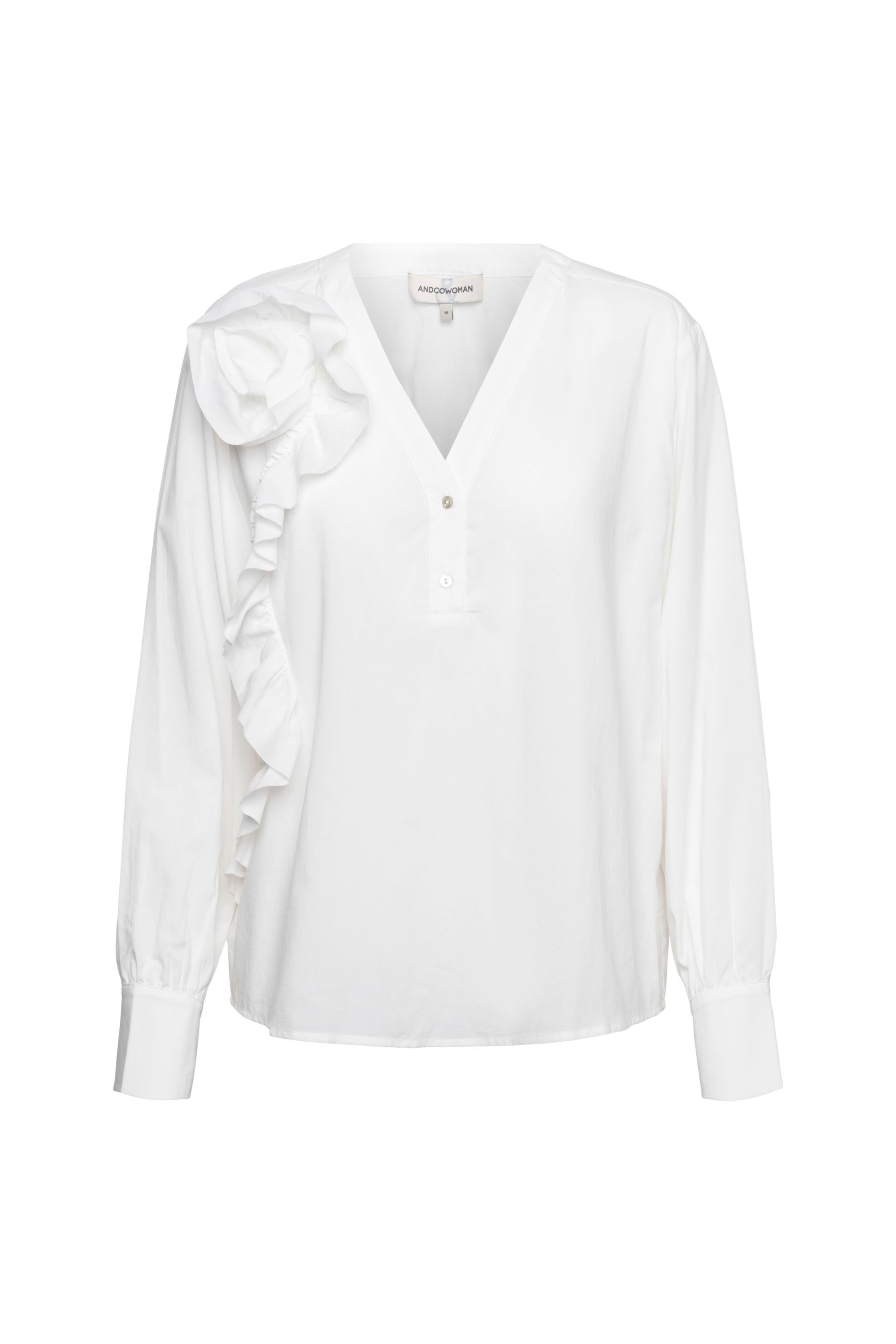 De Blouse Warda White van &Co Woman is een elegante blouse met een verfijnde, vrouwelijke uitstraling. De speelse ruches langs de halslijn geven dit tijdloze item een stijlvol accent dat perfect past bij chique en moderne najaarslooks.