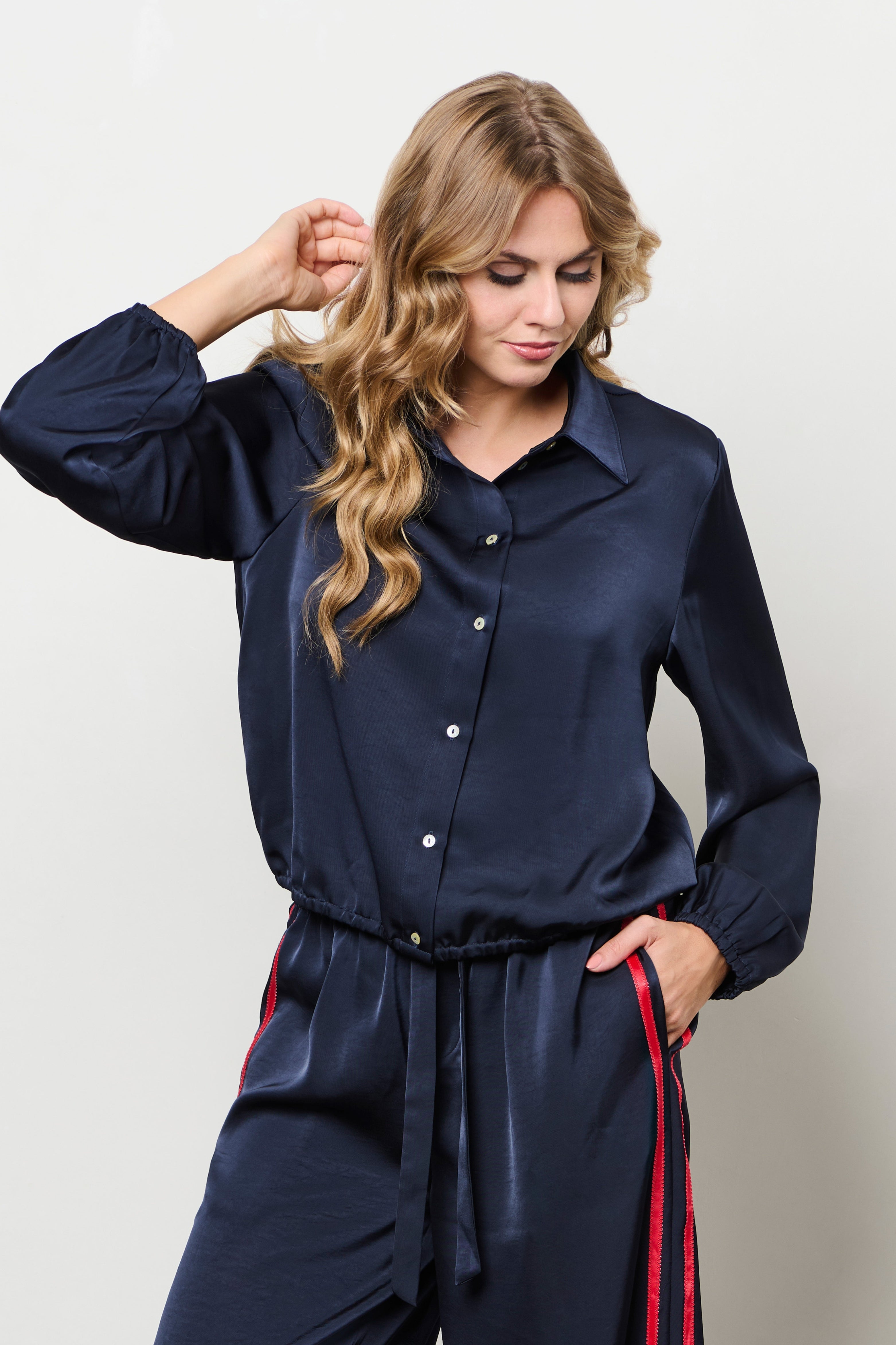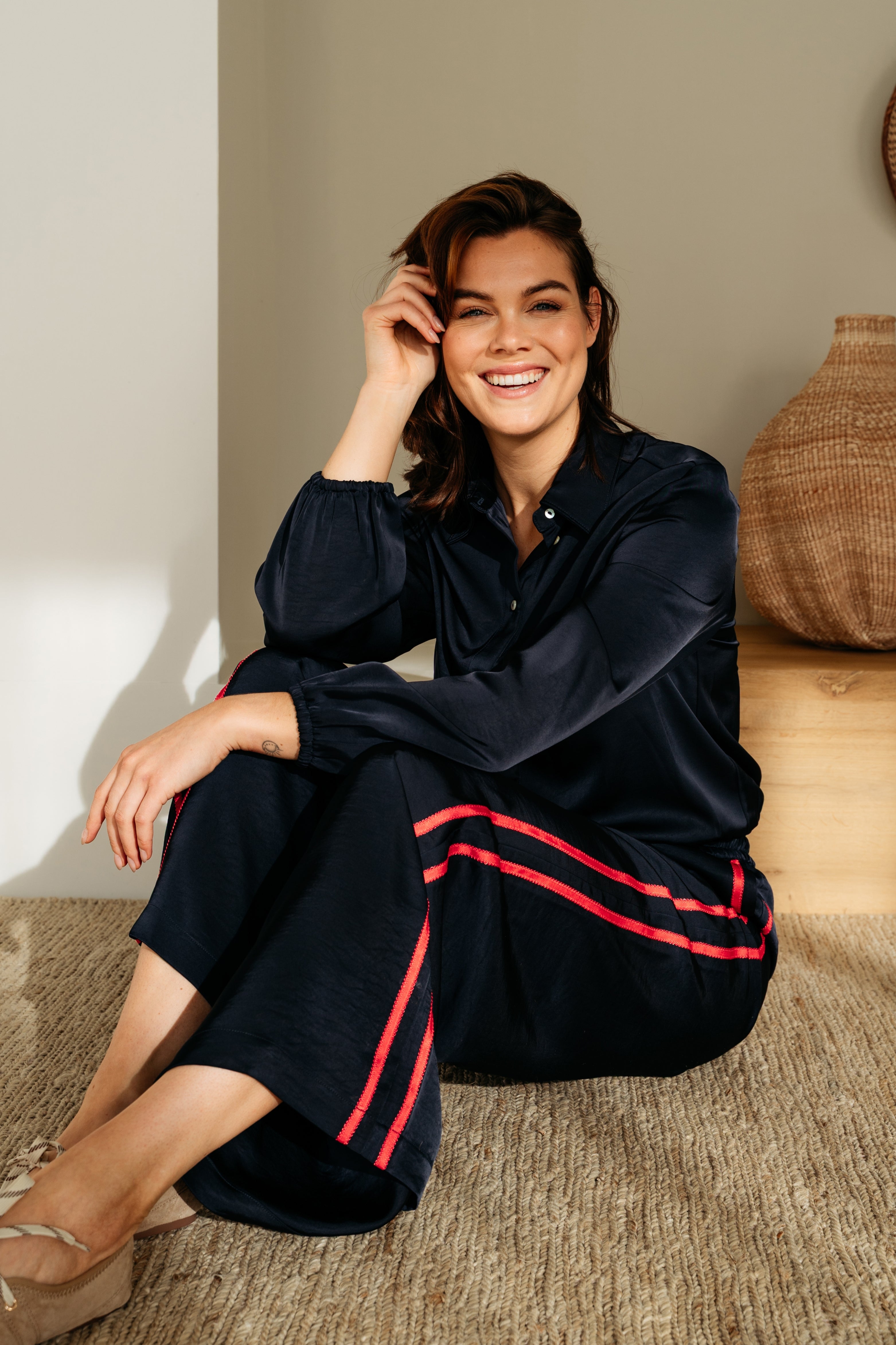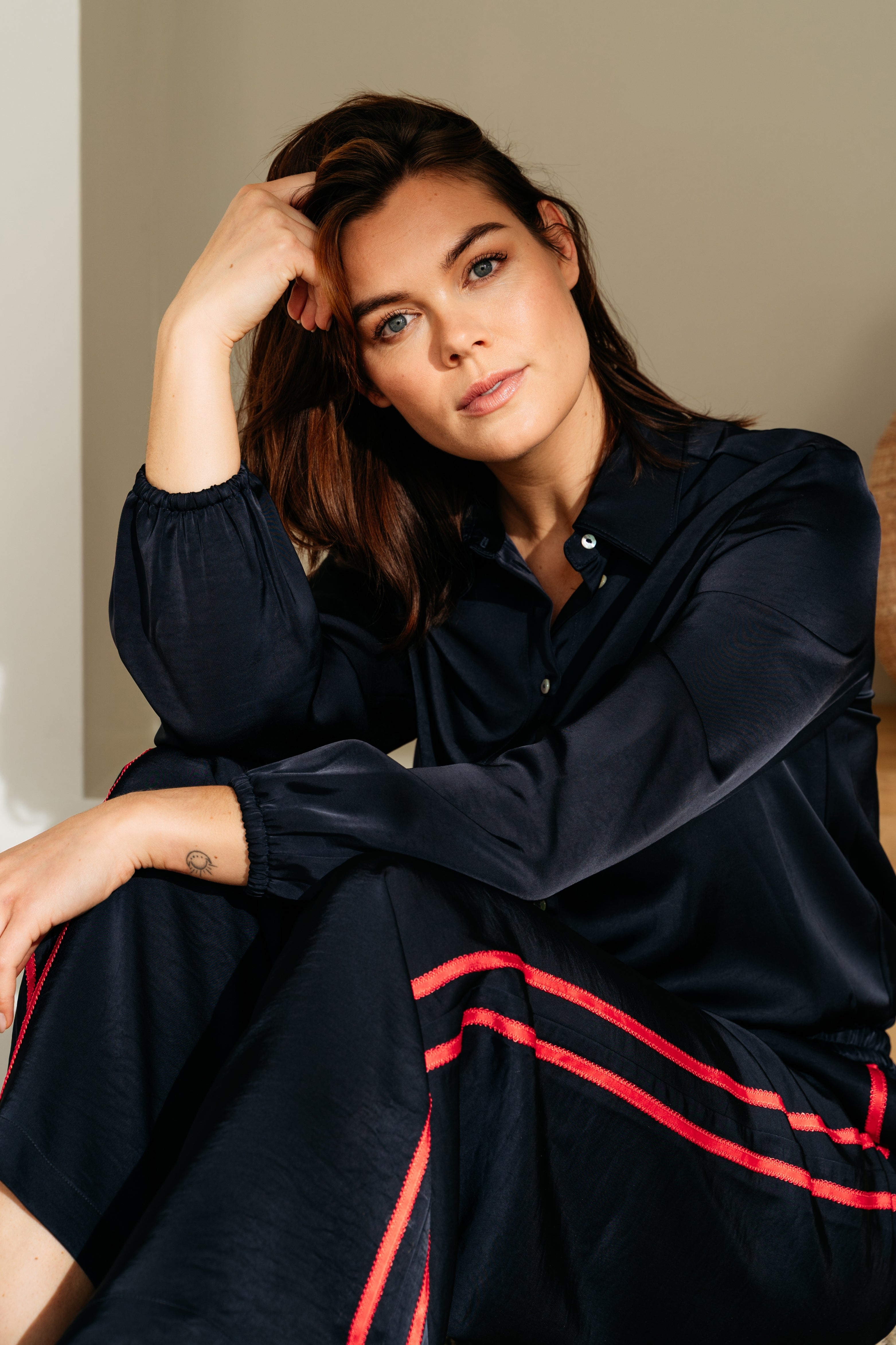 De Blouse Wendelien Navy van &Co Woman is een elegante blouse met een subtiele glans en een tijdloze uitstraling. De elastische zoom en soepele stof zorgen voor een vrouwelijke fit die perfect past bij stijlvolle najaarsoutfits.