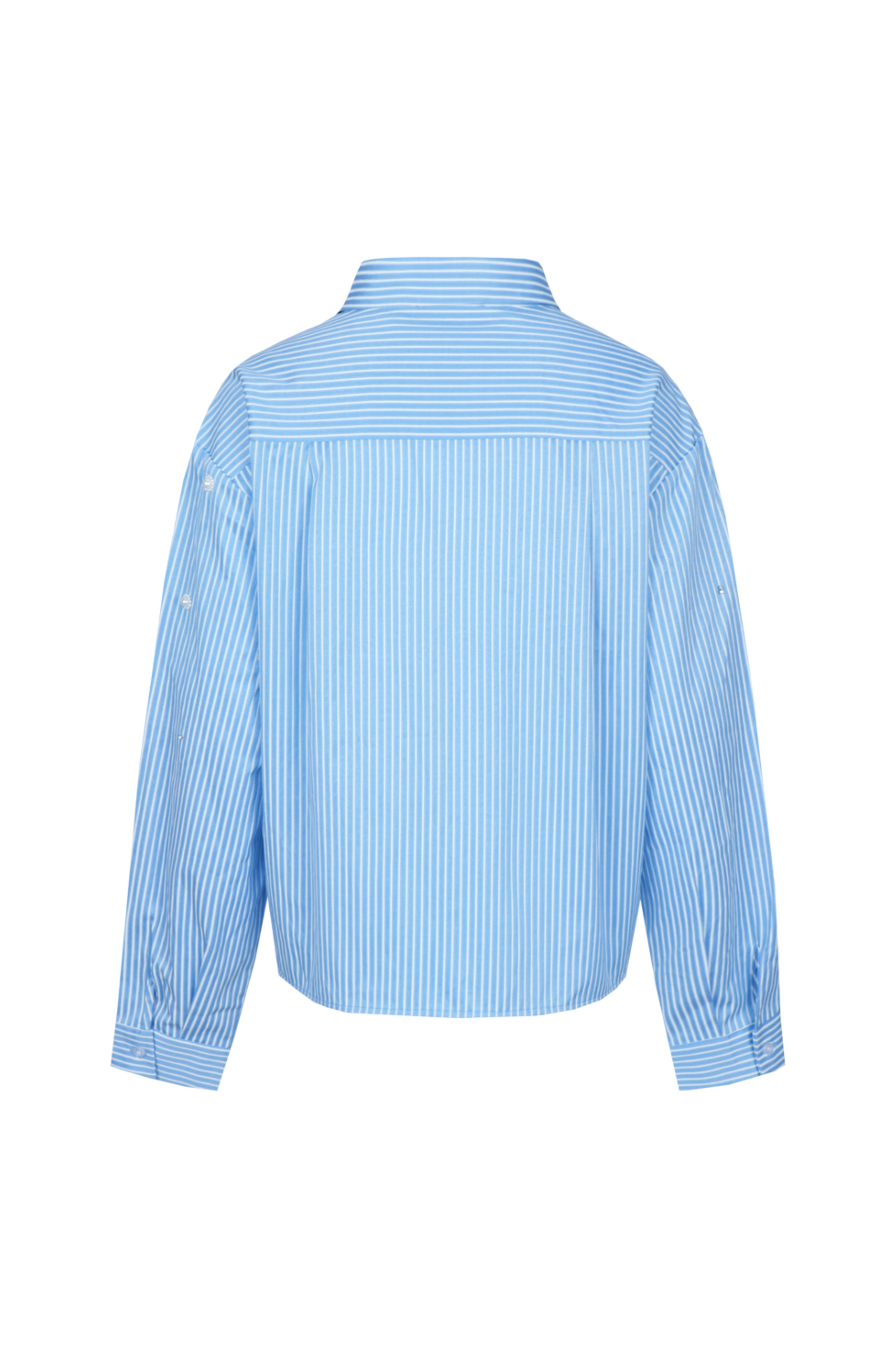 De Blouse Wenya Celestial Blue Offwhite van G-maxx is een vrouwelijke blouse met klassieke kraag. Opengewerkte bloemembroidery en subtiele strepen geven een speelse look. Perfect voor een zomerse dag of casual chic outfit.