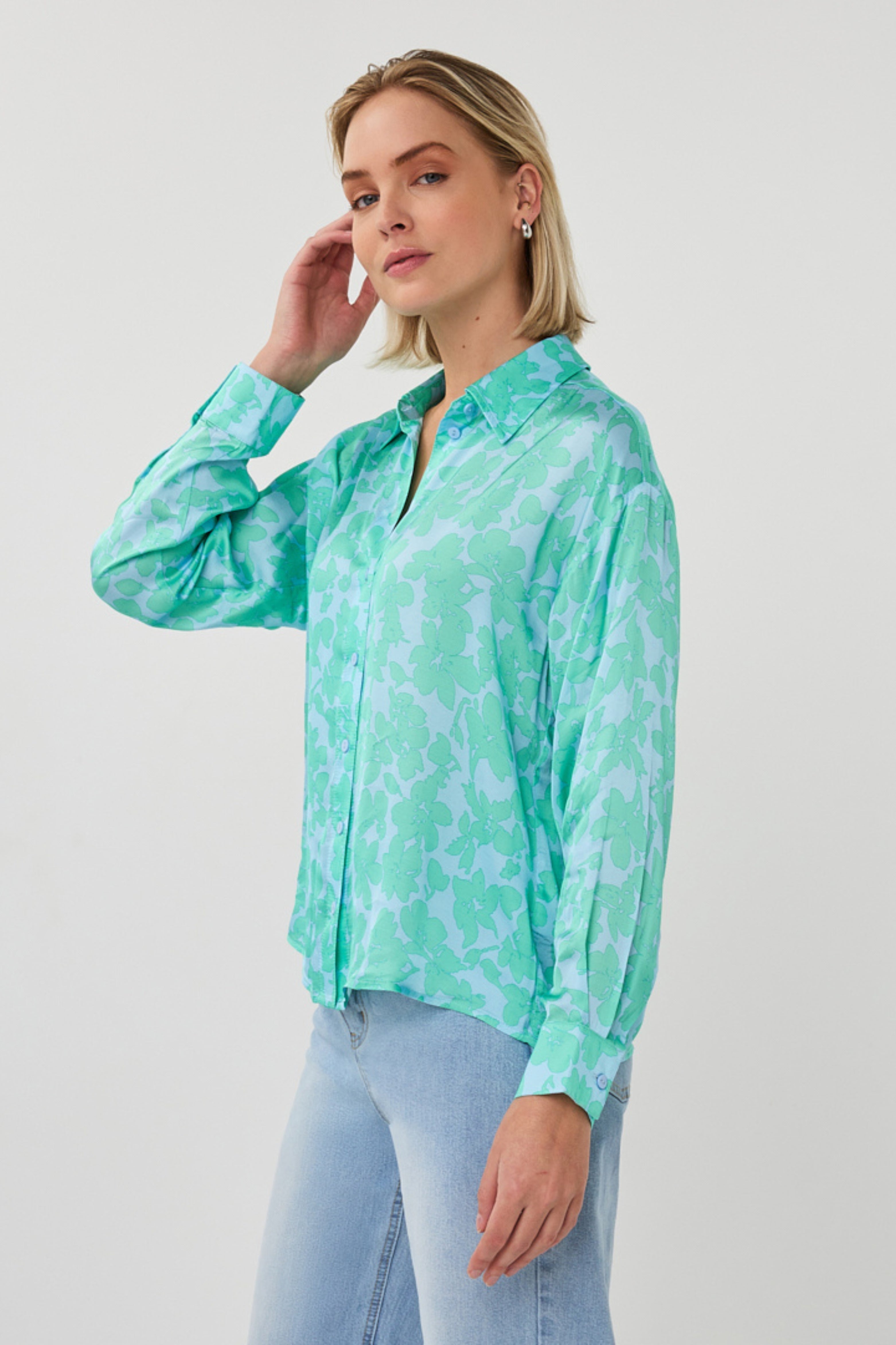 De Blouse Wide Daylight Print van EsQualo is een elegante blouse met een klassieke kraag en knoopsluiting. De zachte print en satijnachtige stof geven het item een verzorgde en luxe uitstraling.