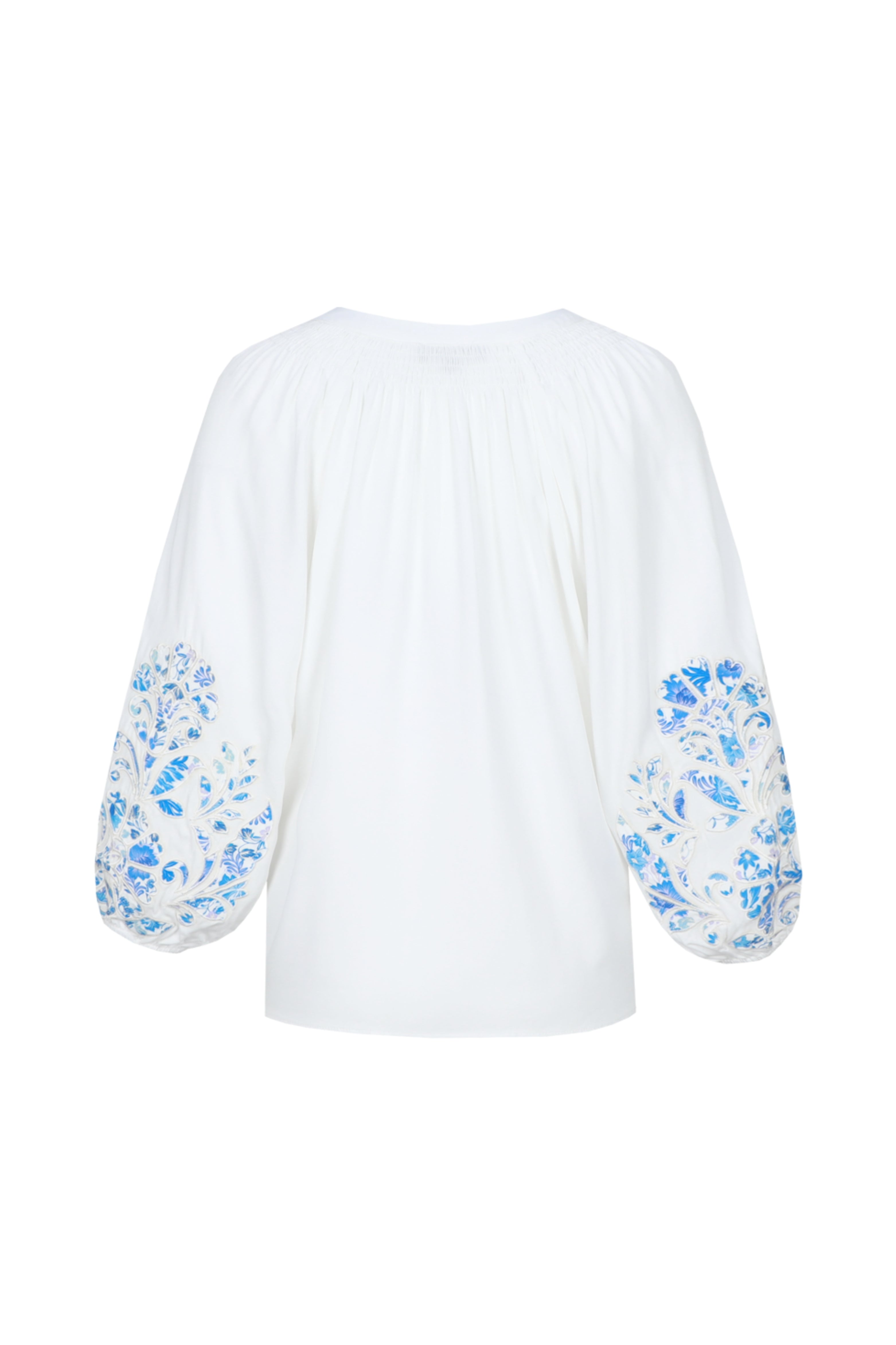 De Blouse Ysolde Offwhite van G-maxx is een romantische blouse met V-hals. De geborduurde ballonmouwen en luchtige stof geven een vrouwelijke, zomerse uitstraling. Perfect voor vakantie, citytrips en zonnige werkdagen.