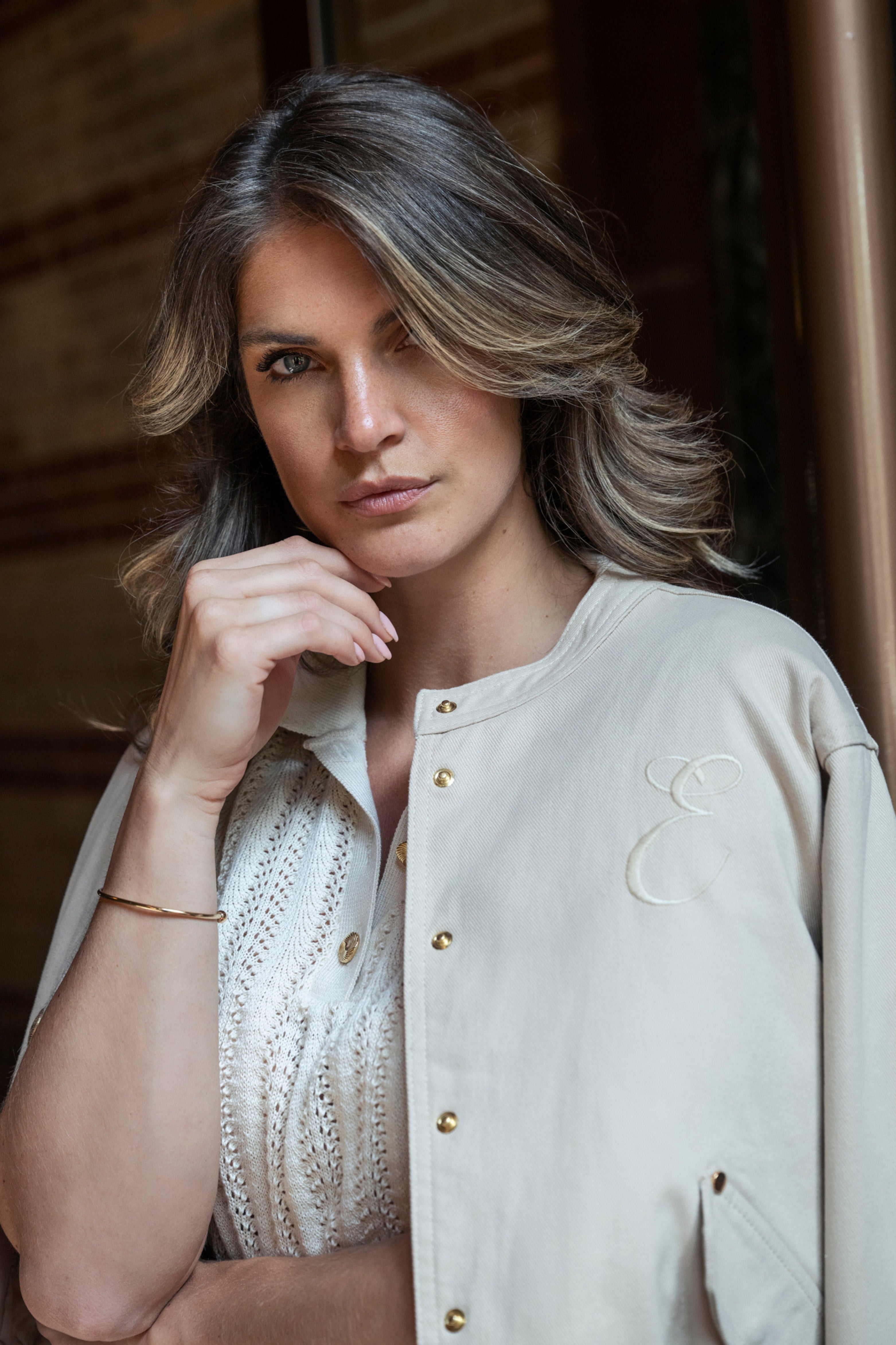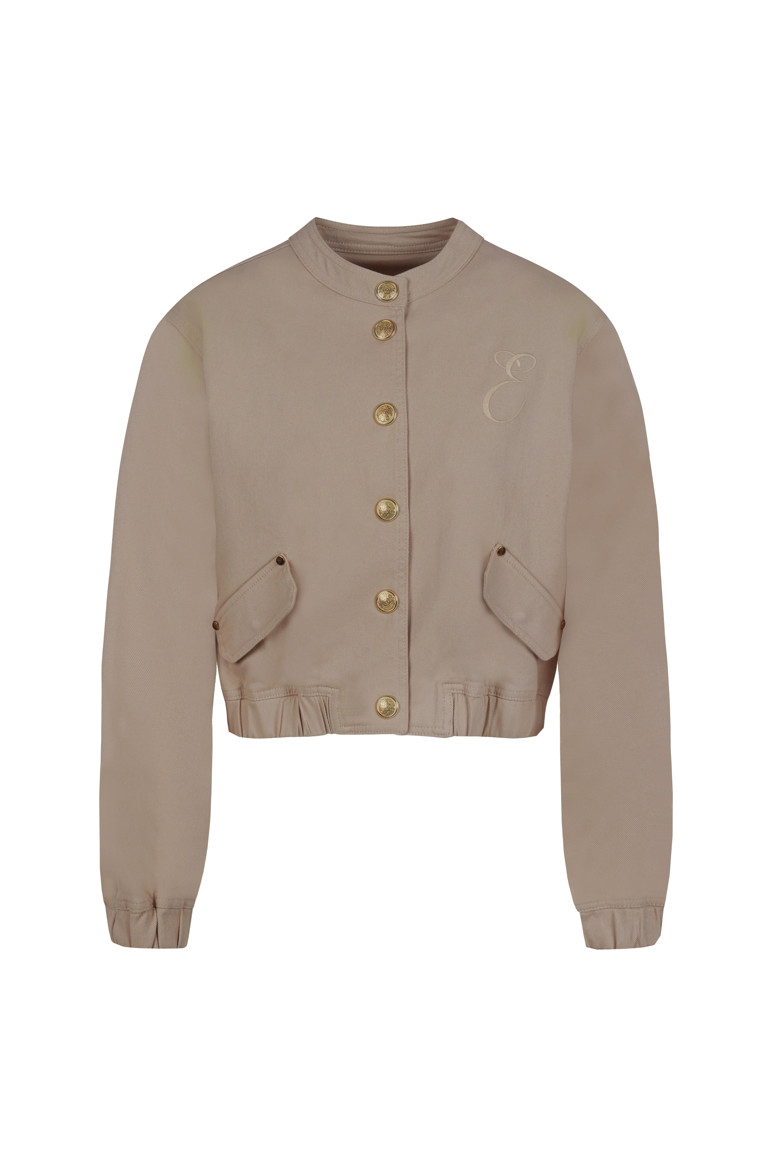 De Bomber Jenny Sand is een stijlvolle en moderne interpretatie van de klassieke bomberjack. Met zijn zandkleurige tint straalt deze jas tijdloze elegantie uit, terwijl de gouden knopen een luxe detail toevoegen. Het kortere model met elastische tailleband zorgt voor een flatterende pasvorm en geeft de jas een speels, vrouwelijk karakter.