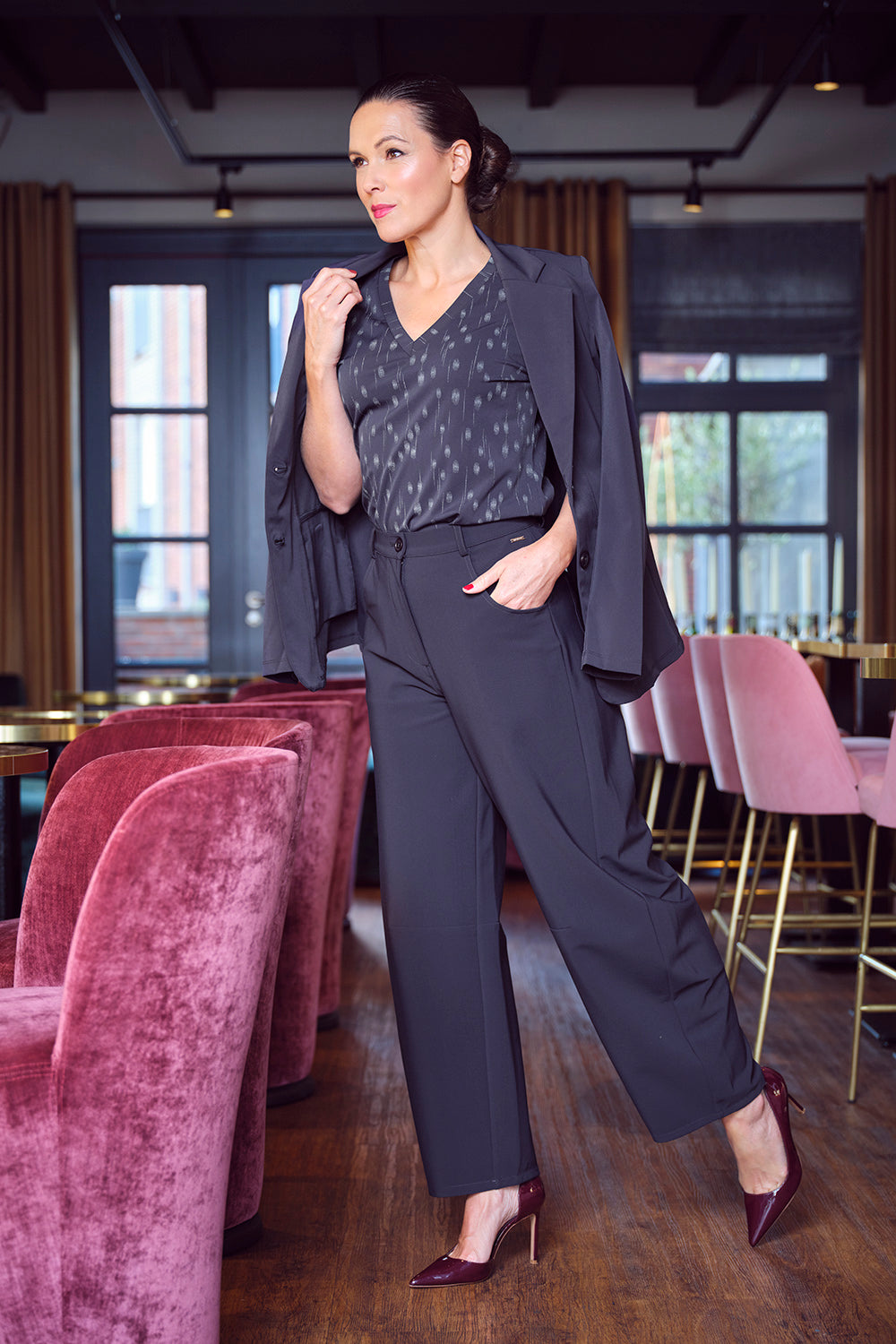 • Het model is 170 cm en draagt maat S