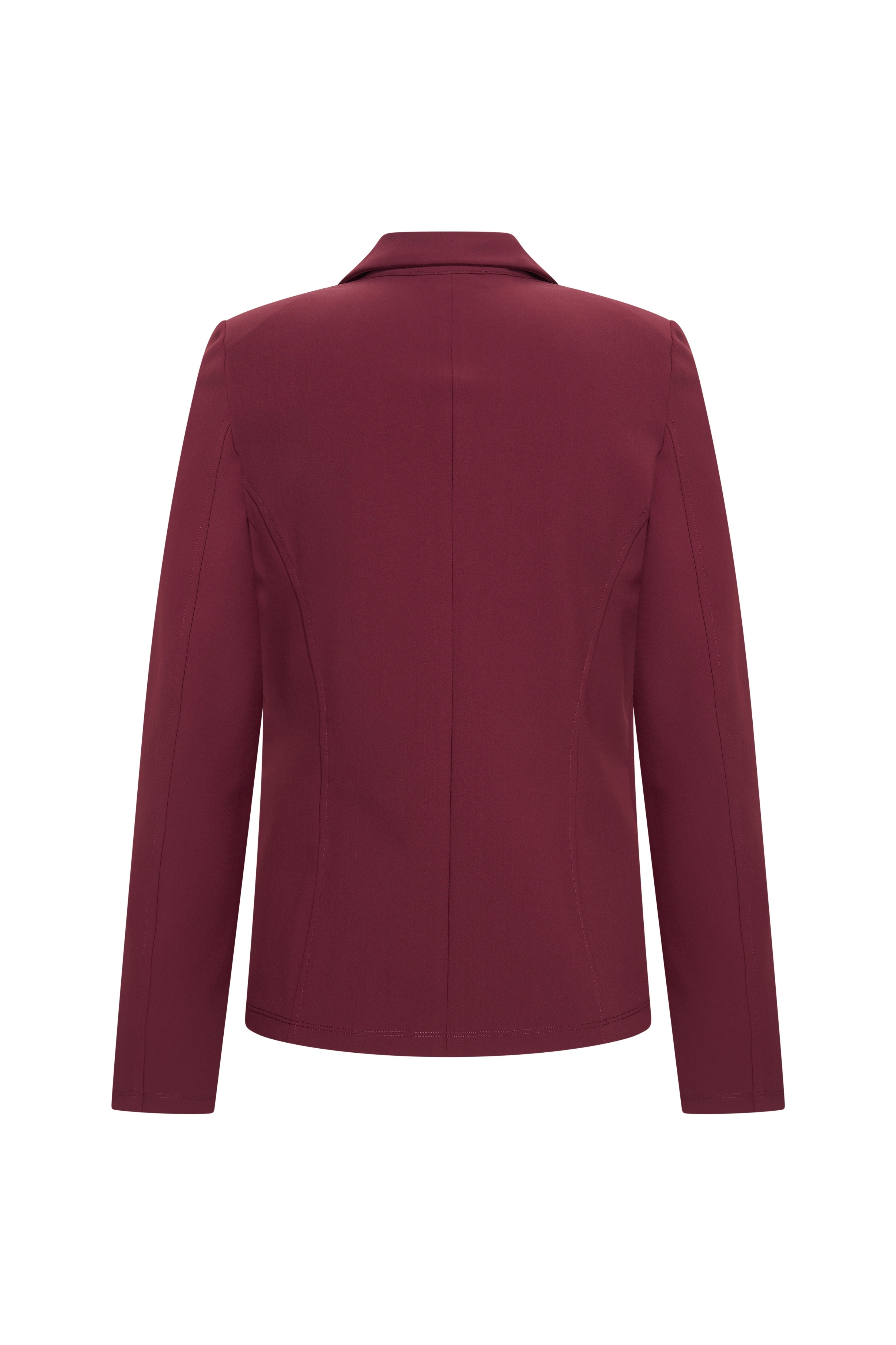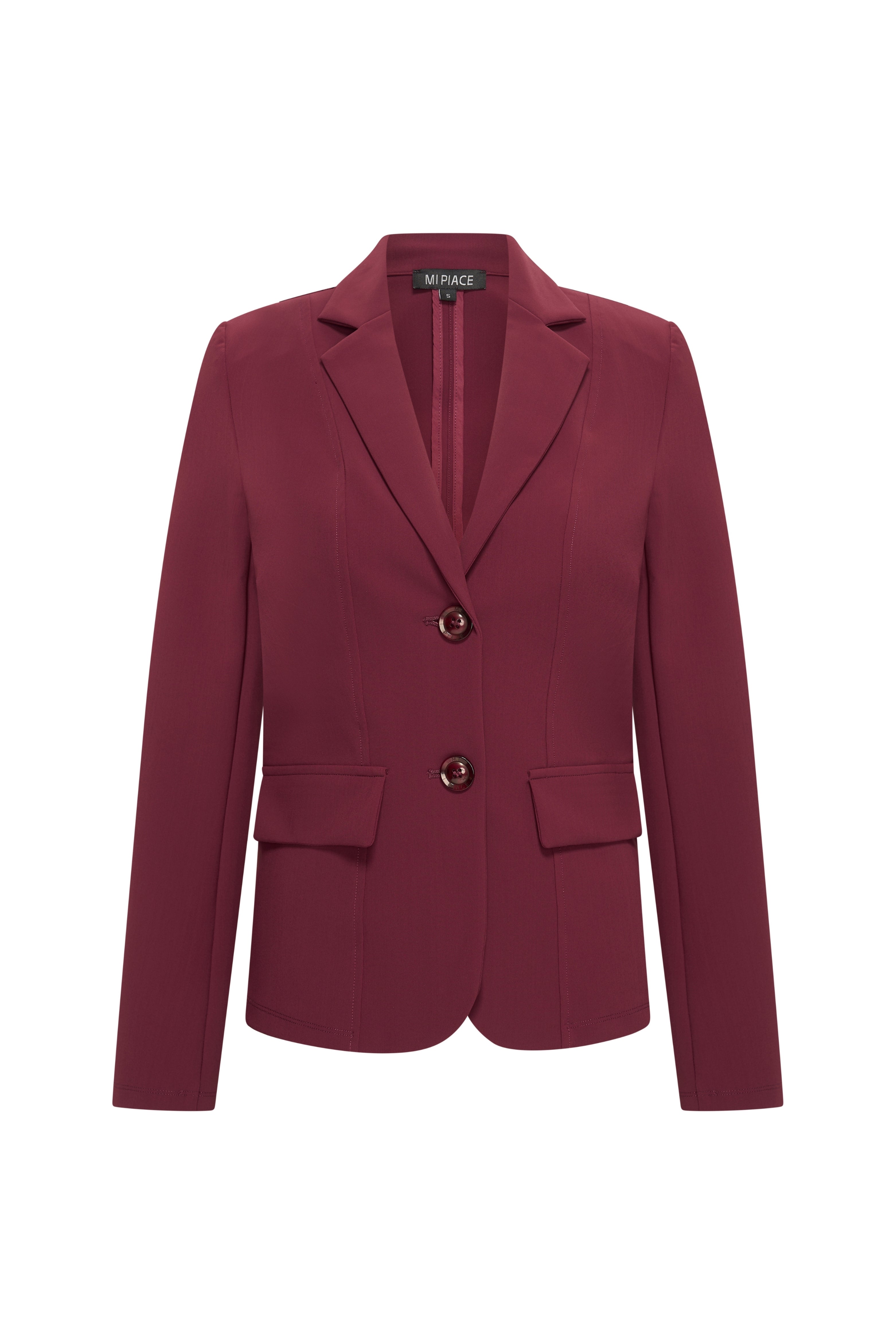 Deze Bonded Travel Blazer van Mi Piace in de kleur Burgundy heeft een korte pasvorm. Dankzij de rekbare travelstof zit de blazer comfortabel, stijlvol en biedt hij alle bewegingsvrijheid zonder in te leveren op elegantie.