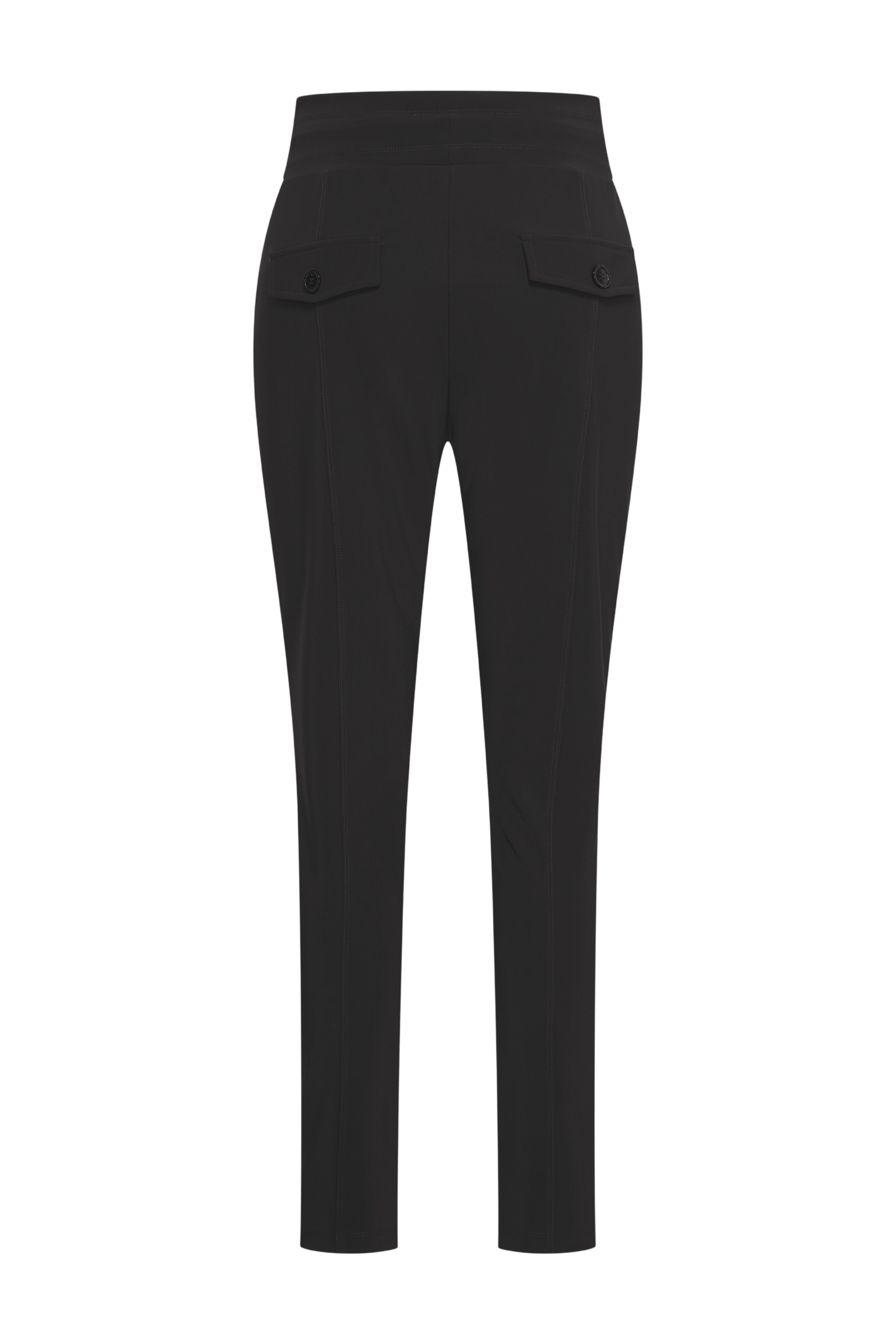 De bonded travelbroek in zwart van Mi Piace is een echte garderobe-essential. Gemaakt van comfortabele stretch-travelstof biedt deze broek een perfecte balans tussen stijl en gemak.