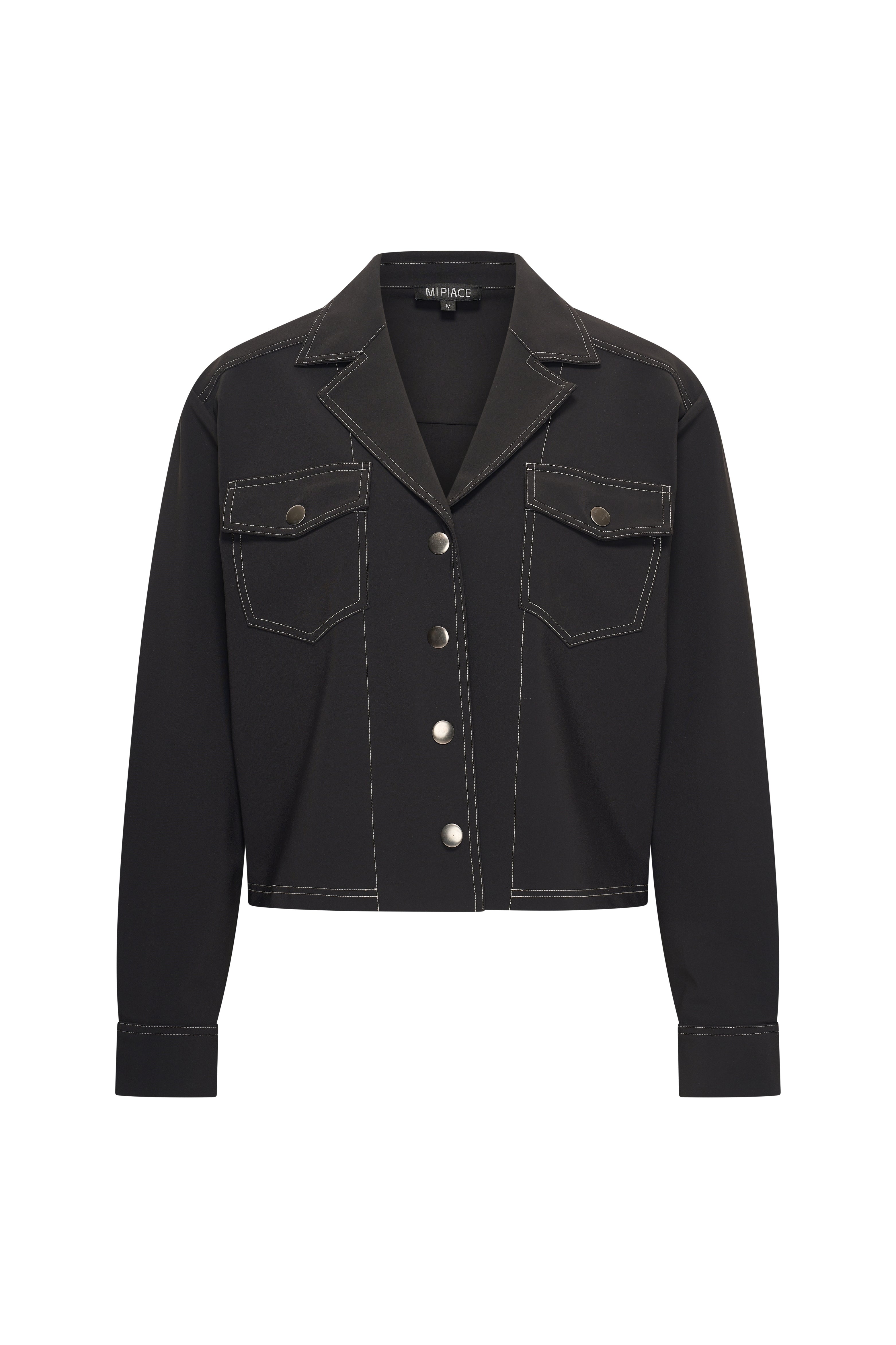 Het bonded travel jacket in zwart van Mi Piace combineert een sportieve touch met een verzorgde uitstraling. De soepele stretch-travelstof zorgt voor optimaal draagcomfort en beweegt moeiteloos met je mee.