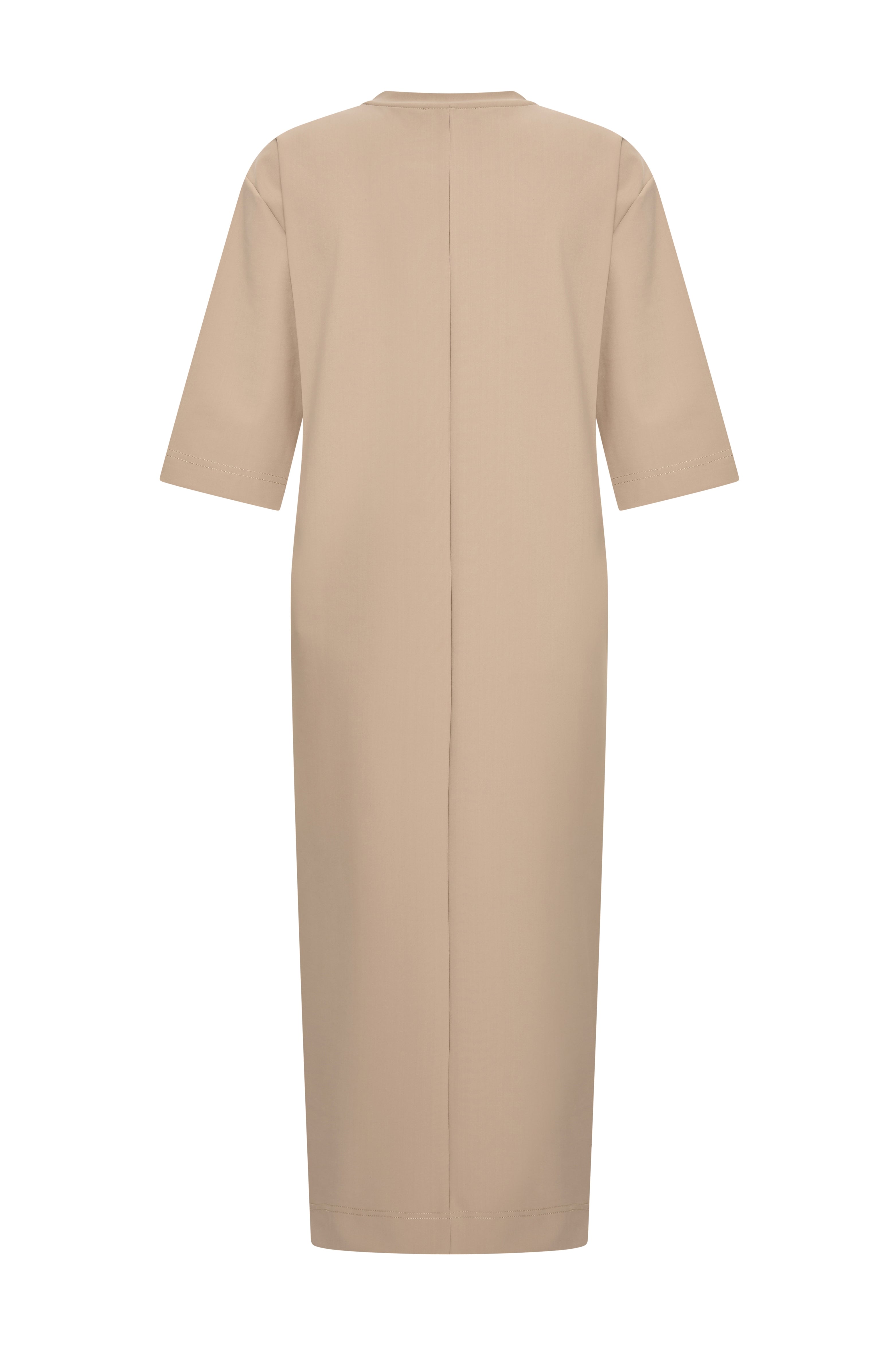 De Bonded Travel Jurk Latte van Mi Piace is een vrouwelijke maxi jurk met een rustige, elegante uitstraling. De rechte fit en halflange mouwen maken dit een perfect item voor het najaar.