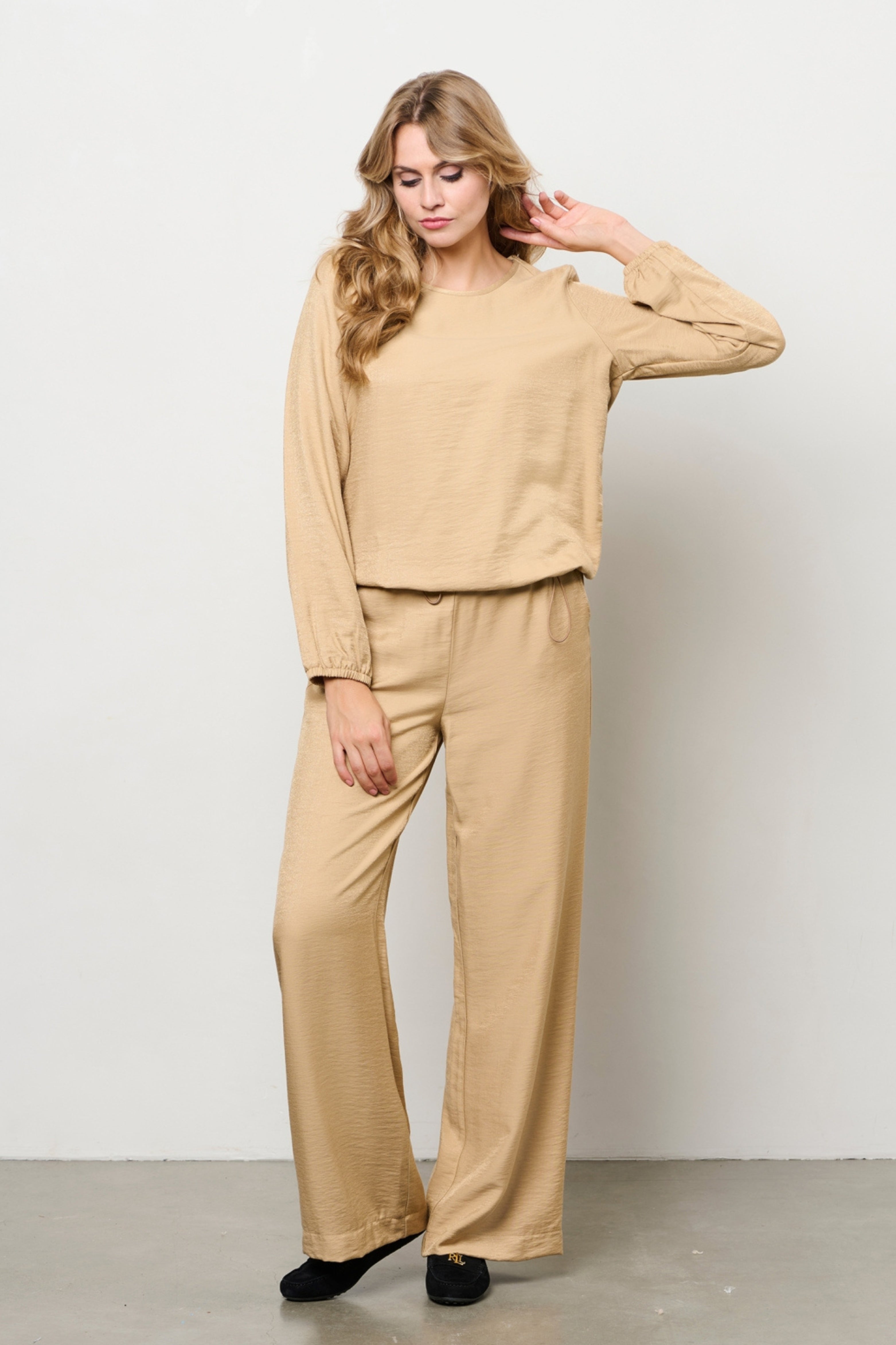 De broek Abelie Sunset van &Co Woman is een elegante wide leg broek met een ontspannen fit. De sunwashed kleur en de verfijnde stof geven elke look een zachte uitstraling.