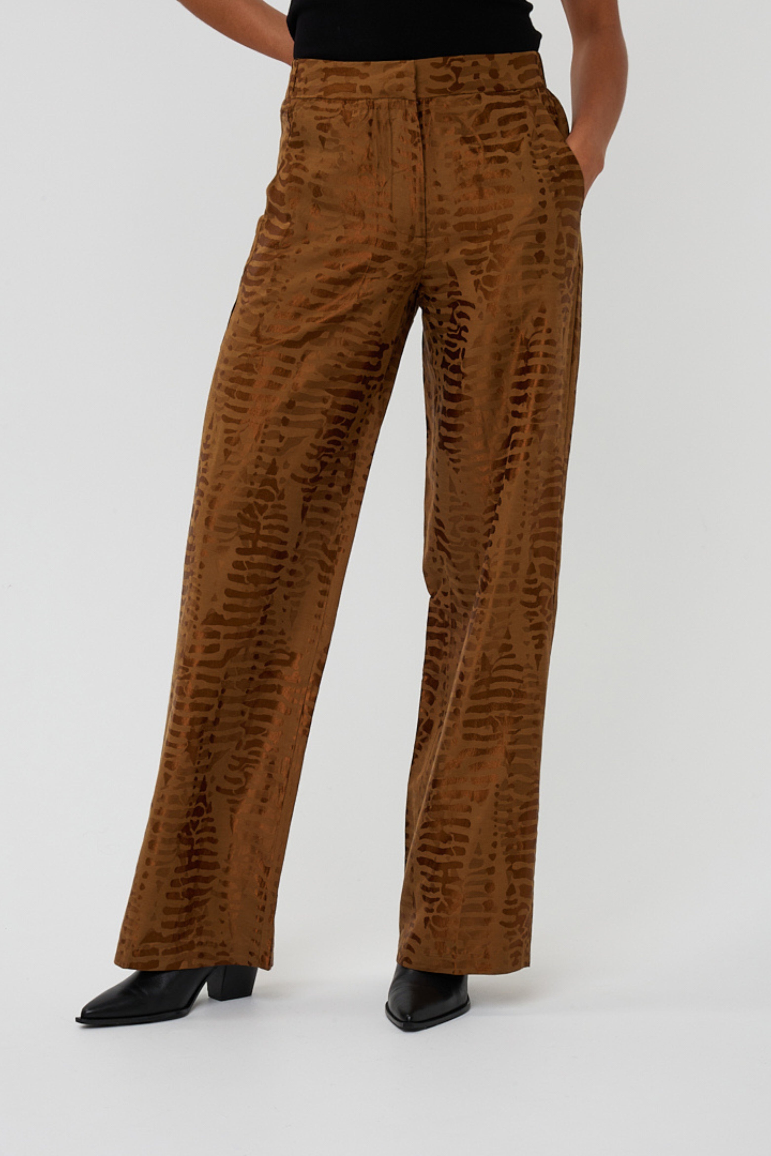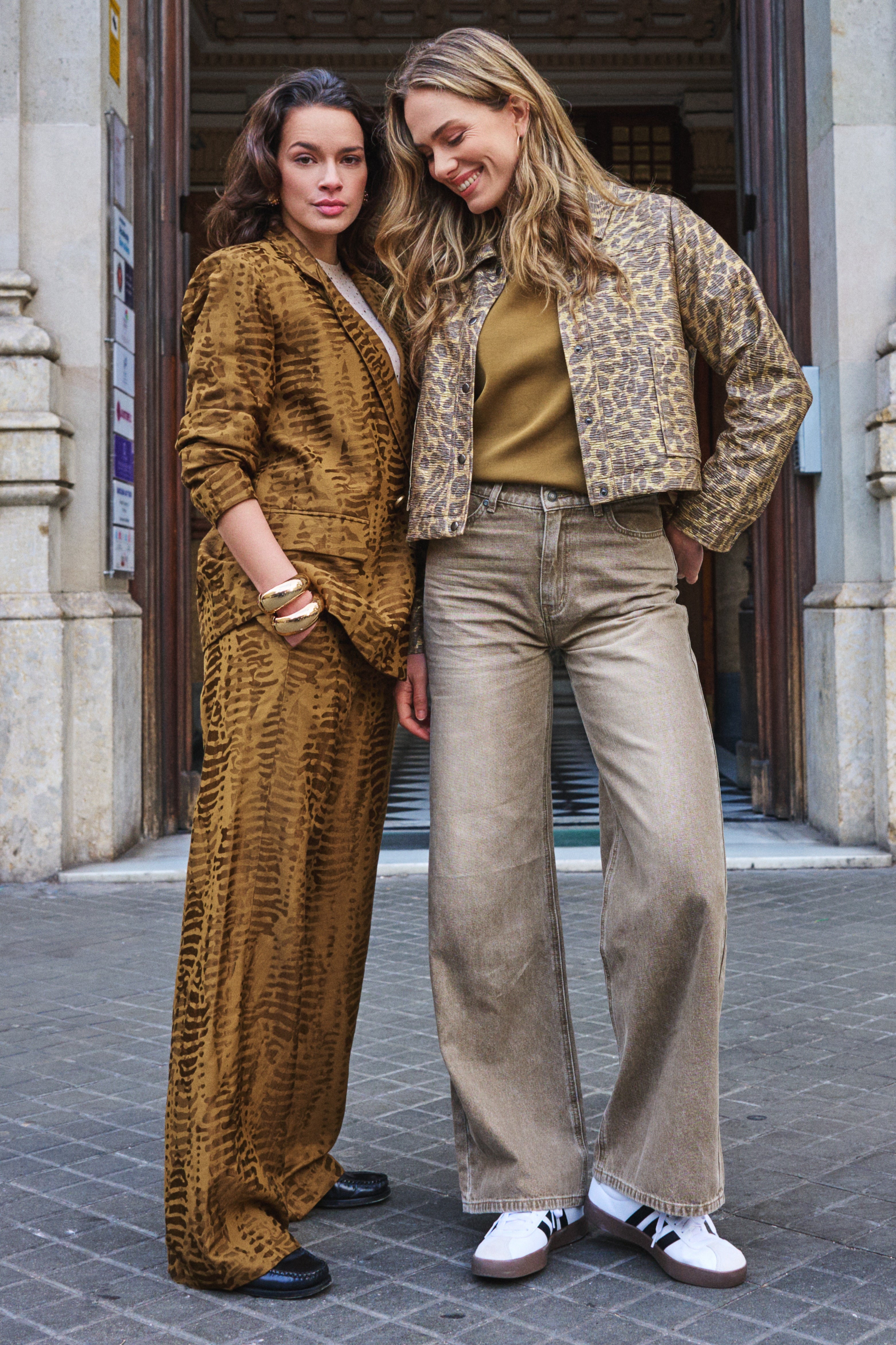 De Broek Animal Jacquard Olive van Esqualo combineert comfort met een stoere uitstraling. De subtiele dierenprint in jacquardweving en de losvallende pasvorm maken dit een veelzijdig item voor stijlvolle najaarslooks.