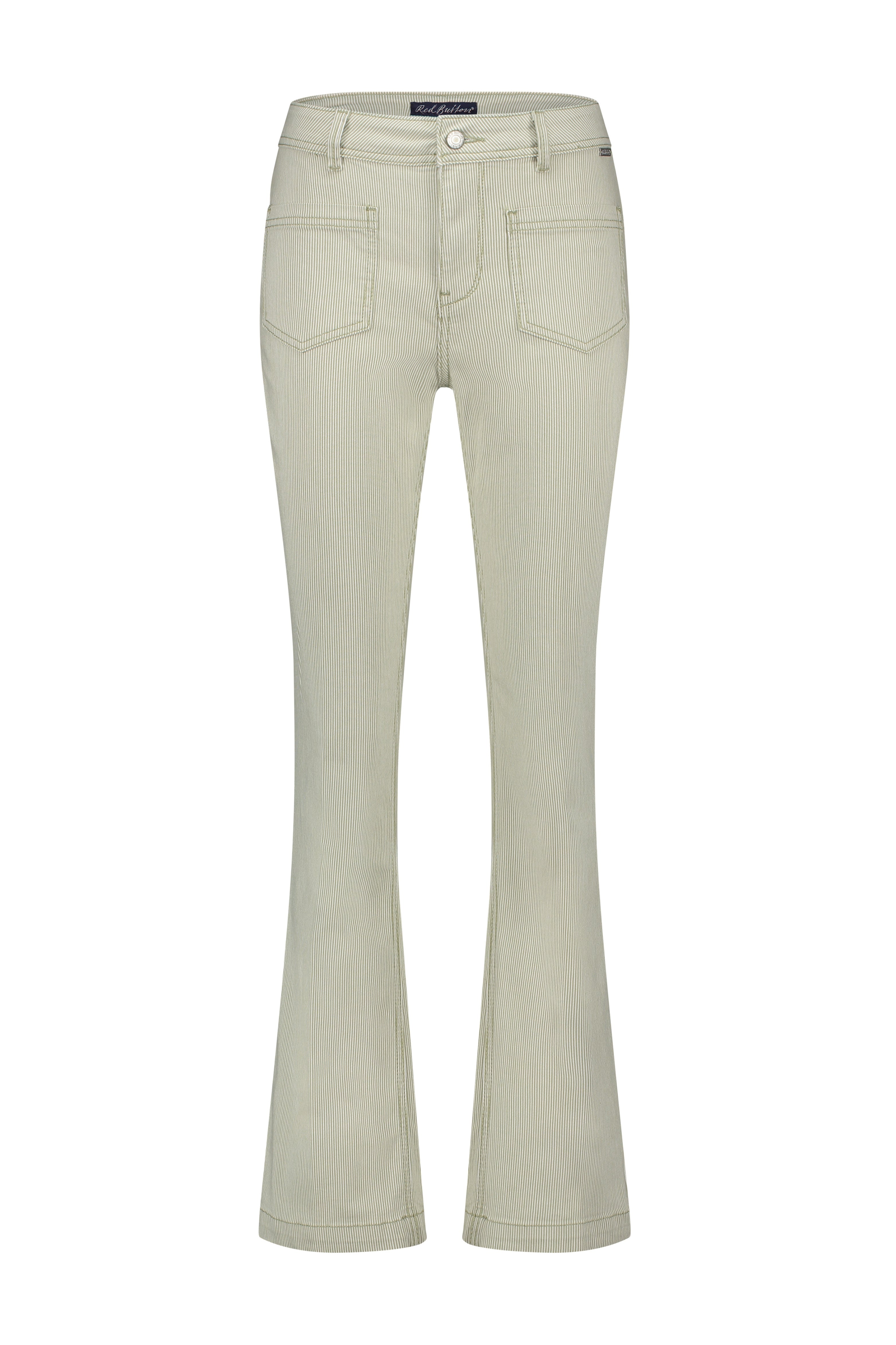 De broek Babette Patchpockets Denim Stripe Summersage L33 is een stijlvolle toevoeging aan elke garderobe. De subtiele gestreepte denim in de frisse kleur summersage geeft een speelse en zomerse uitstraling. De broek heeft een flatterende slim fit met uitlopende pijpen, waardoor het een vrouwelijke en moderne look biedt.