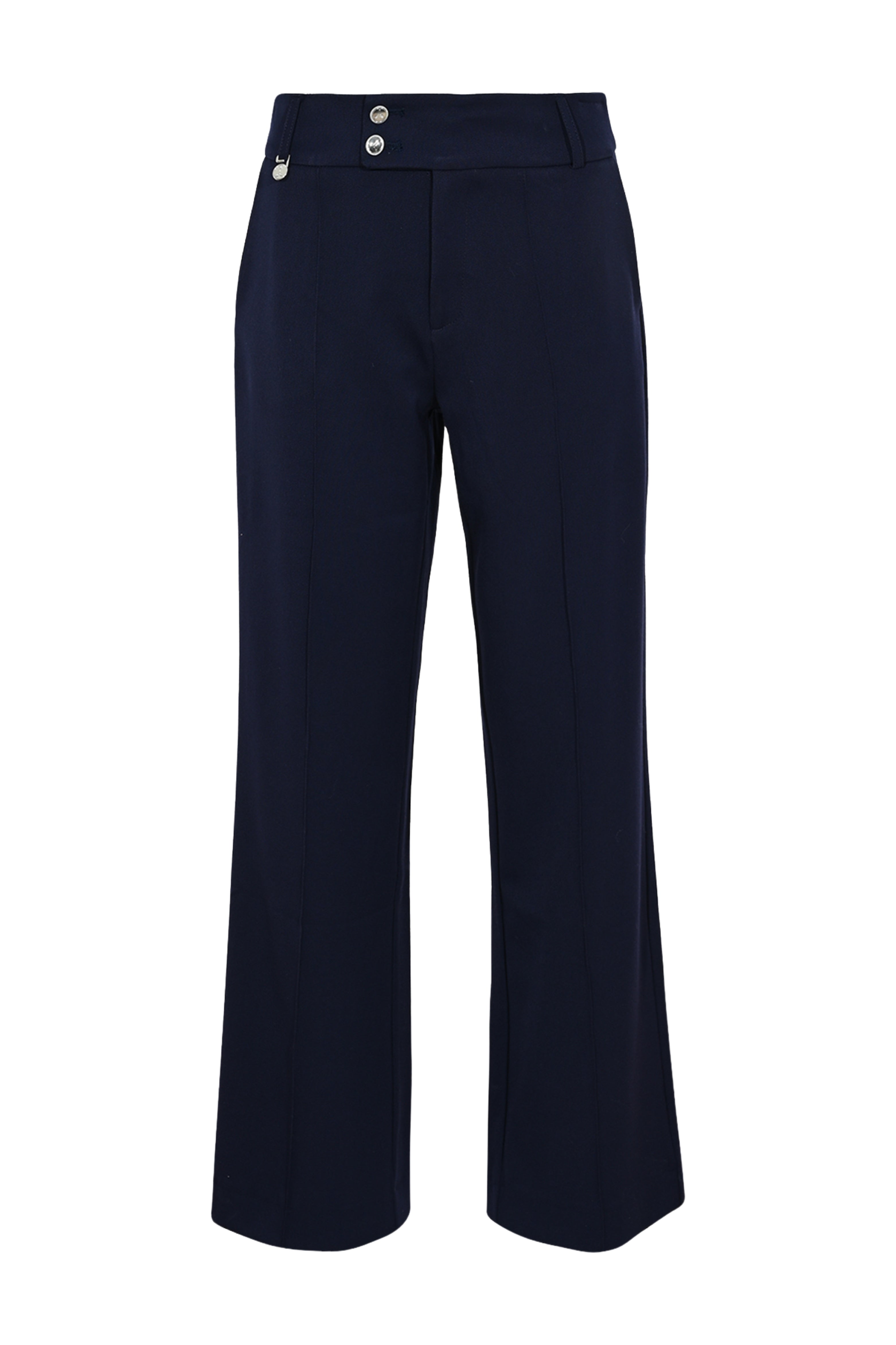De Broek Calla Future Dusk van Maicazz is een elegante pantalon met een flatterende hoge taille en een rechte, licht uitlopende pijp. De donkerblauwe kleur en de luxe stof zorgen voor een tijdloze, verzorgde uitstraling. Ideaal voor zowel werk als casual chic.