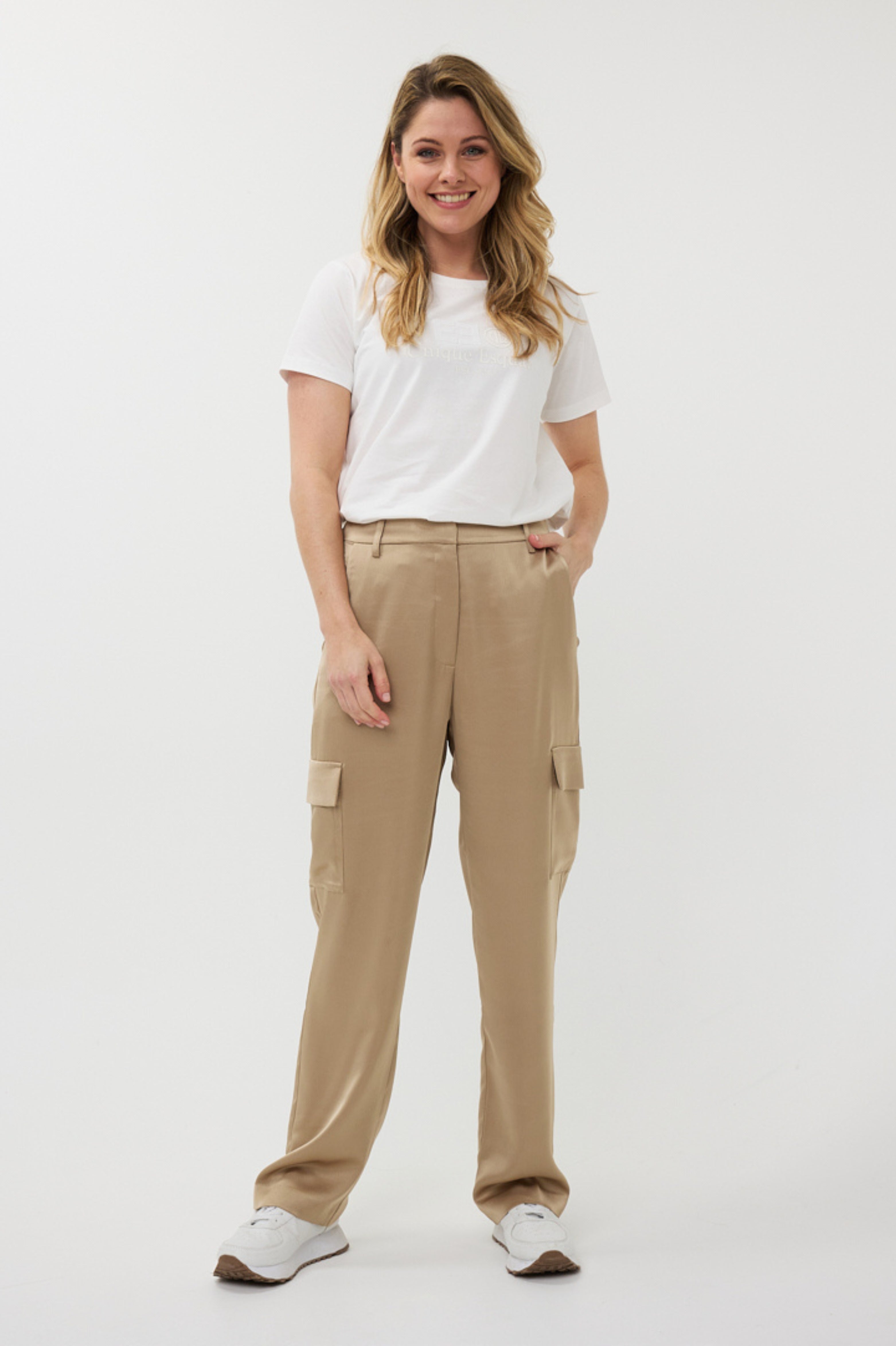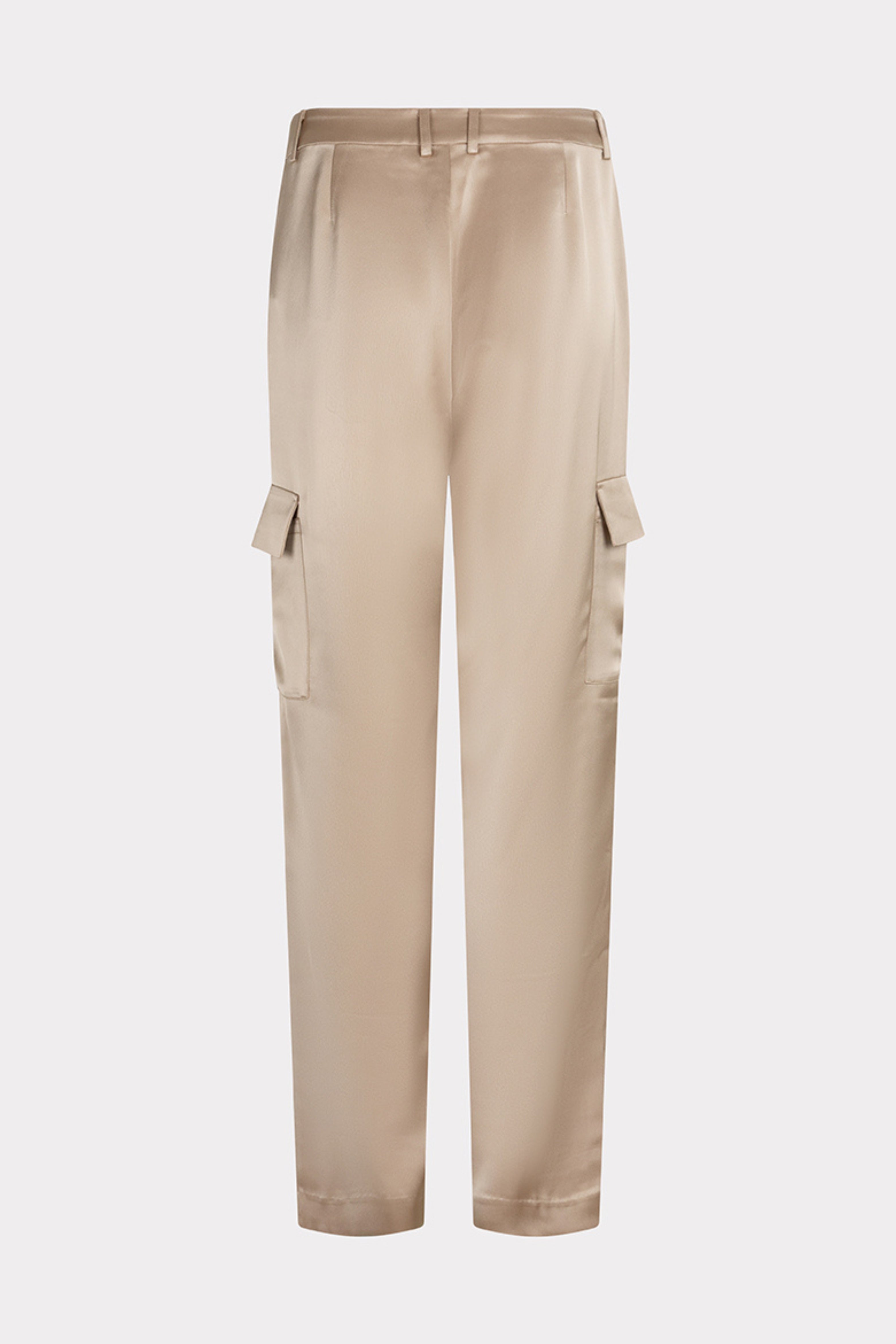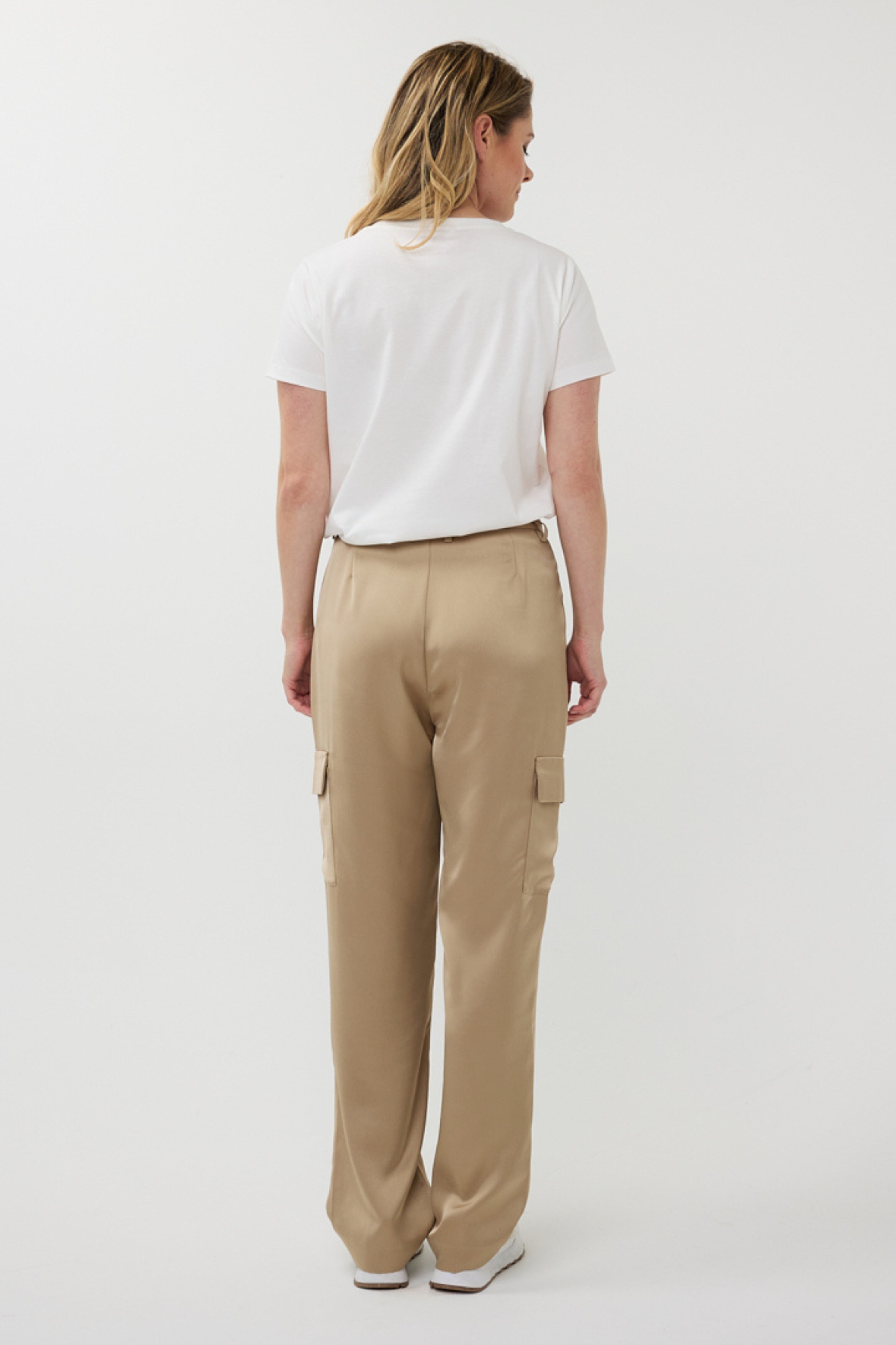 De Broek Cargo Satin Gold van Esqualo combineert een moderne cargo-stijl met een luxe satijnen uitstraling. Met praktische zakken en een comfortabele pasvorm is deze broek ideaal voor zowel casual als stijlvolle outfits.