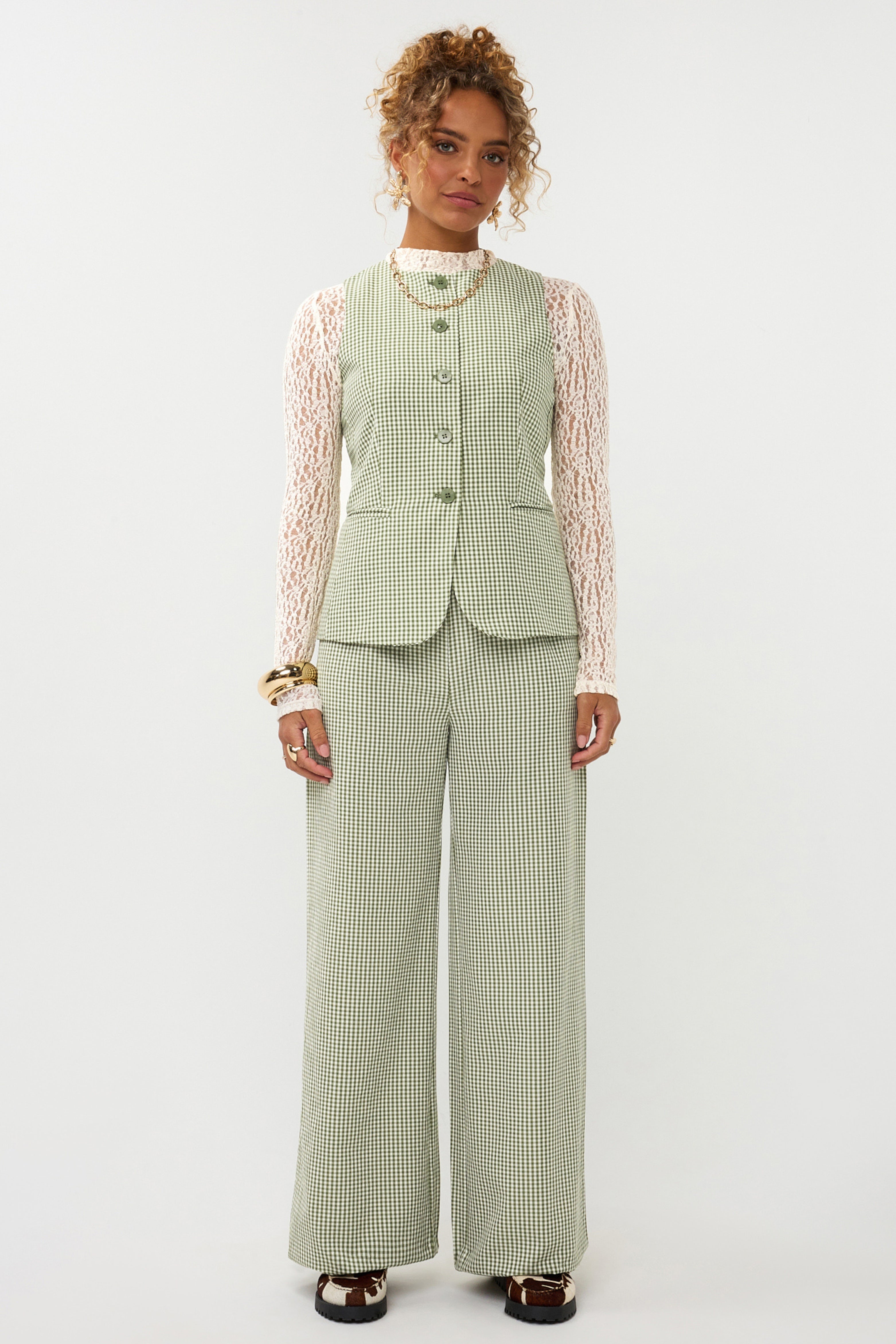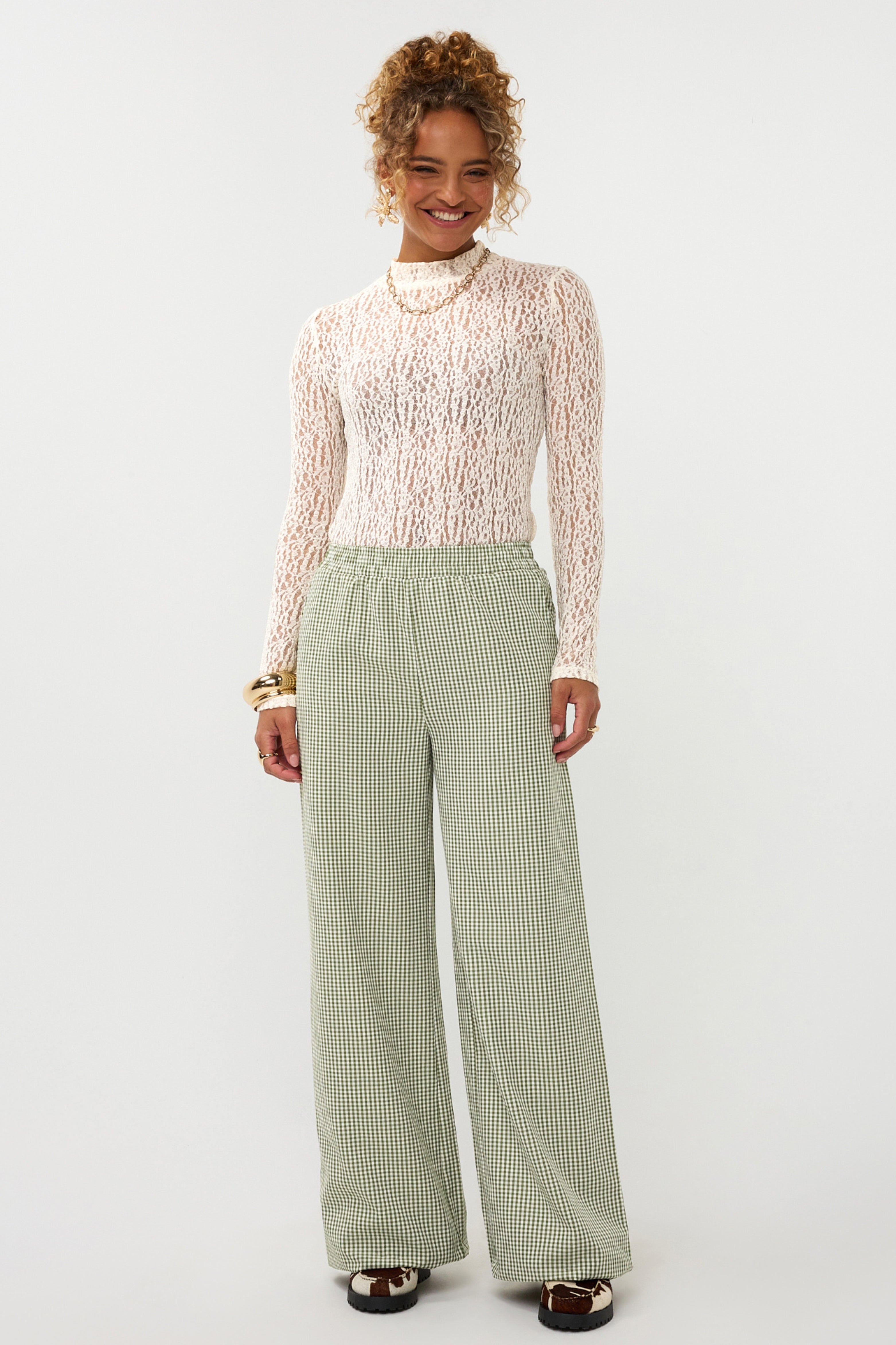 De Broek Celeste Green Check Tall van Ydence heeft een all-over ruitprint en een comfortabele elastische tailleband. De wijde pijpen zorgen voor een luchtige fit. De broek is perfect als co-ord set of los te dragen.