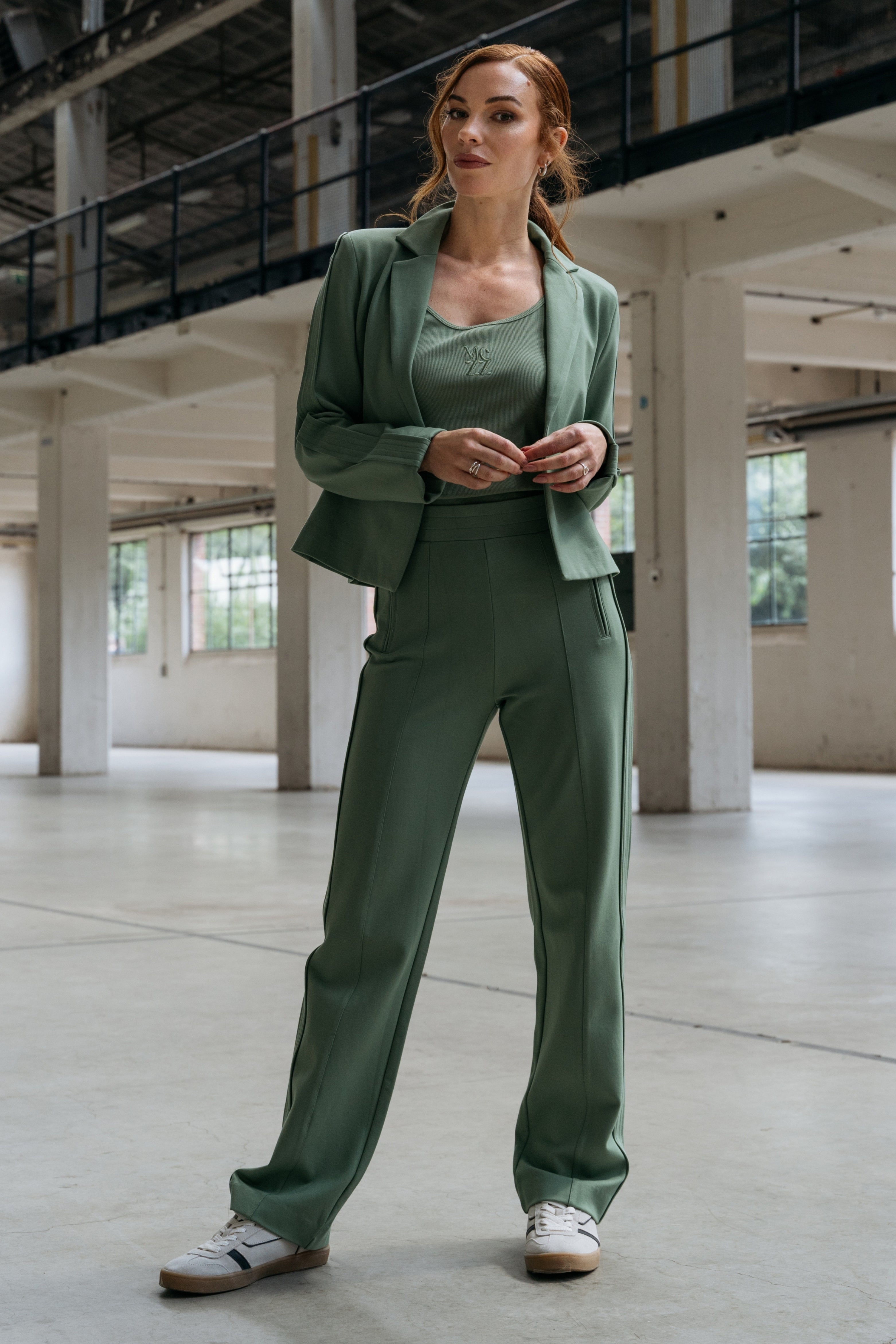 De Broek Cizzy Aquatic van Maicazz combineert comfort en stijl. De trendy groene tint, rechte pijpen en subtiele deelnaden zorgen voor een moderne look. Perfect voor een casual-chique outfit!