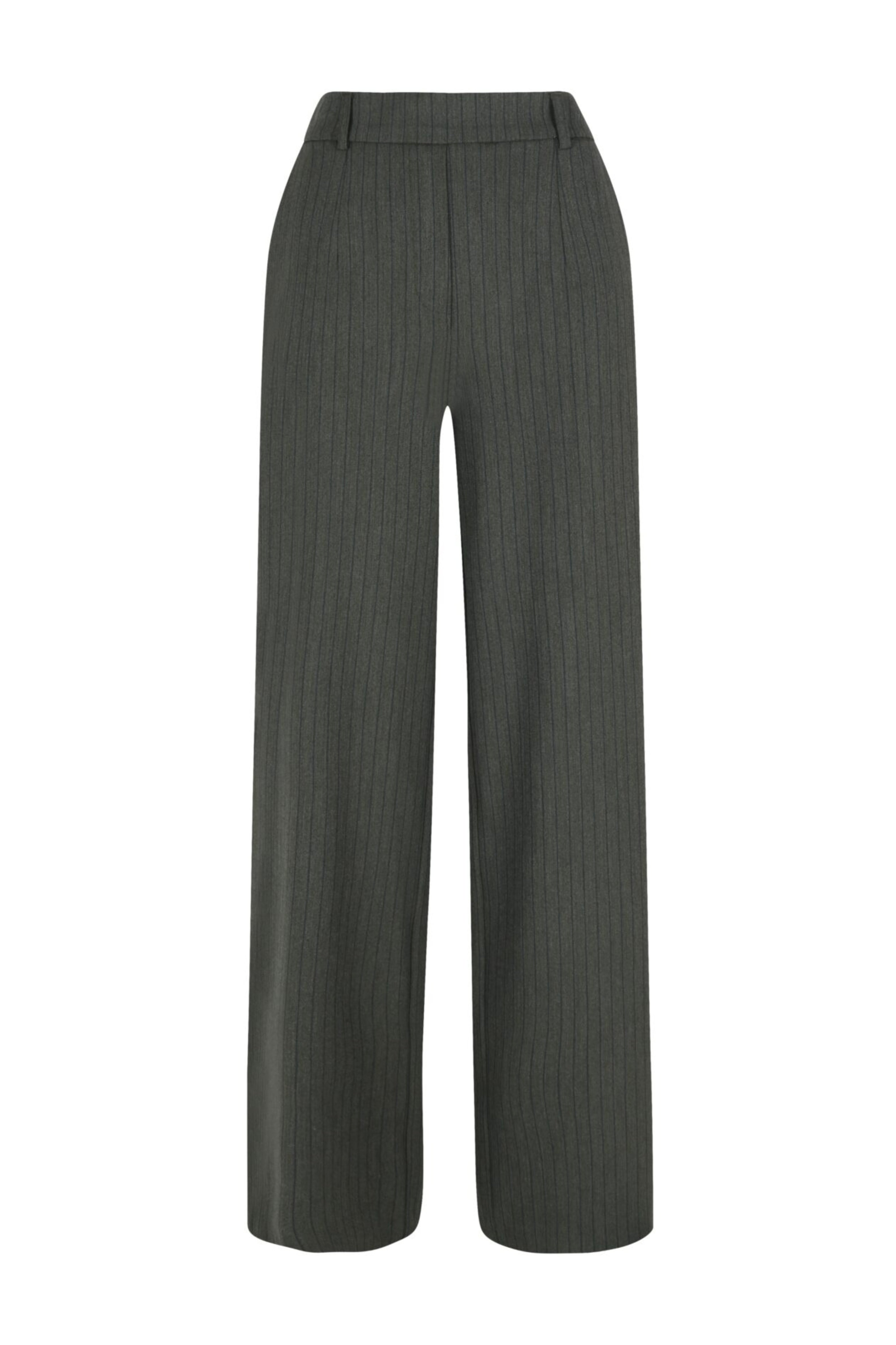 De Claire Green Stripe Broek van Elvira is een stijlvolle en comfortabele broek met een moderne pasvorm. Het subtiele krijtstreeppatroon geeft de broek een elegante uitstraling, terwijl de wijde pijpen zorgen voor een trendy en comfortabele fit.