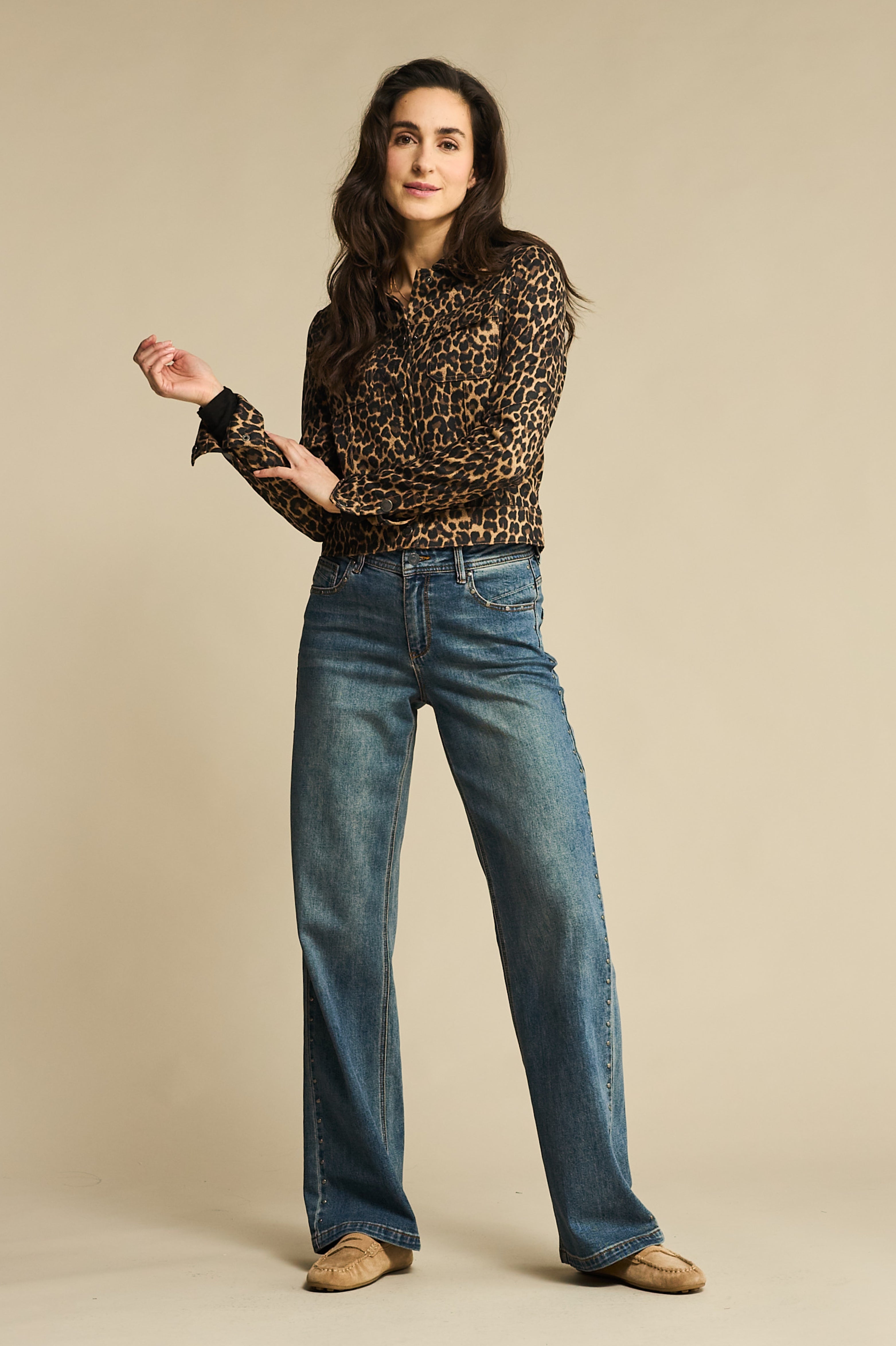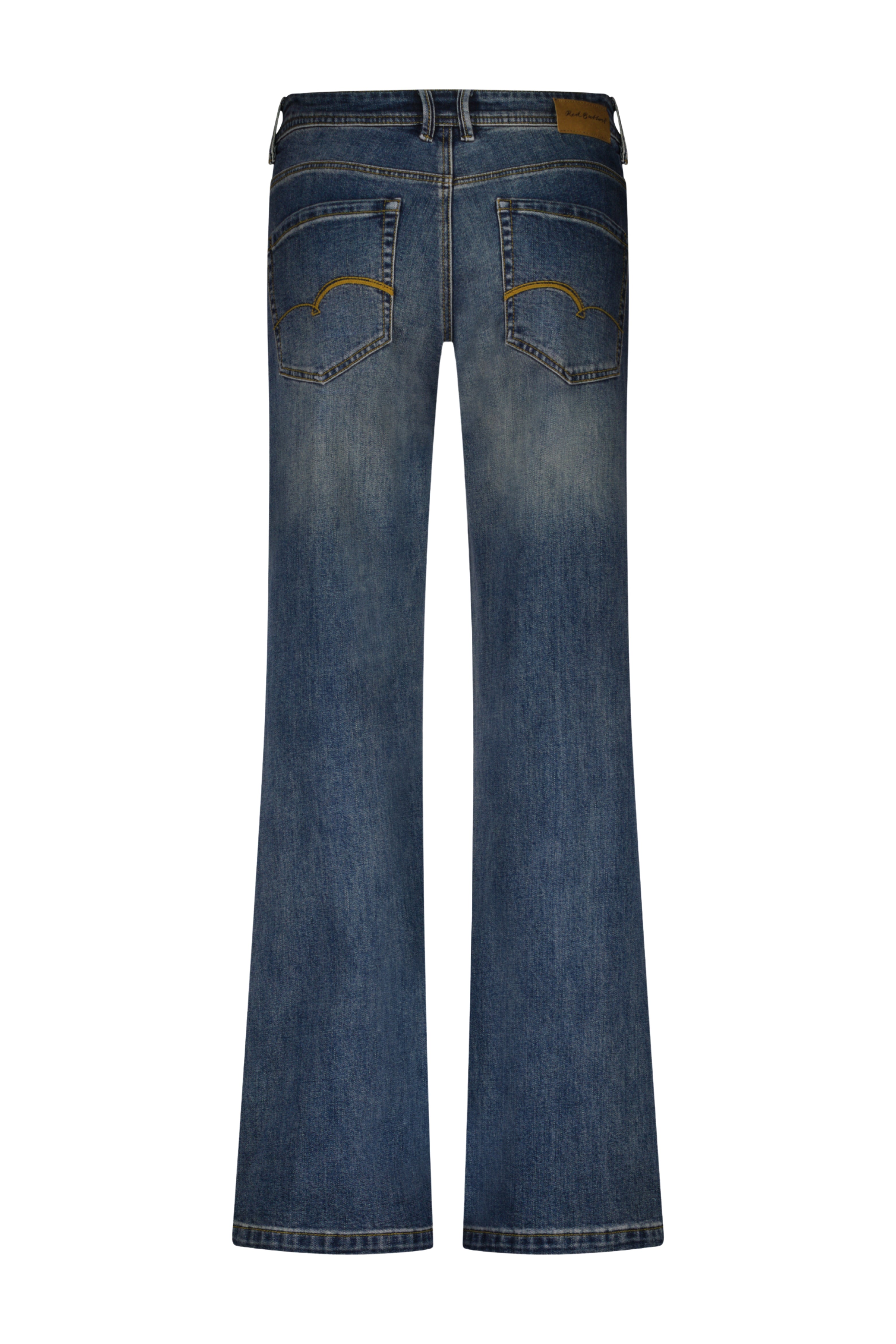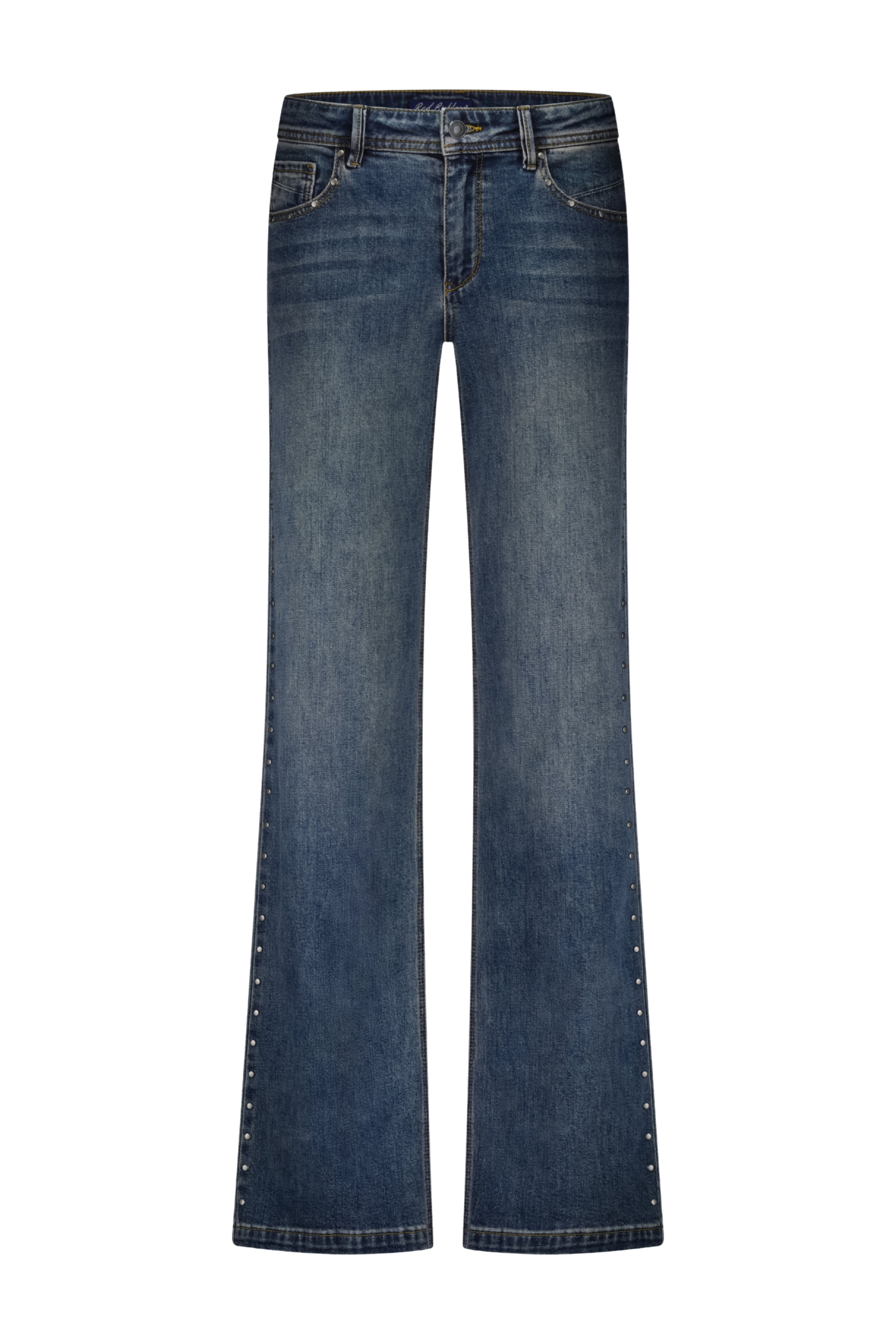Broek Colette Vintage Denim van Red Button is een eyecatcher met subtiele rivets langs de zijnaden. De flared fit geeft een vrouwelijke look, terwijl de denim stijl zorgt voor een stoere touch. Perfect met blouse, knit of T-shirt.