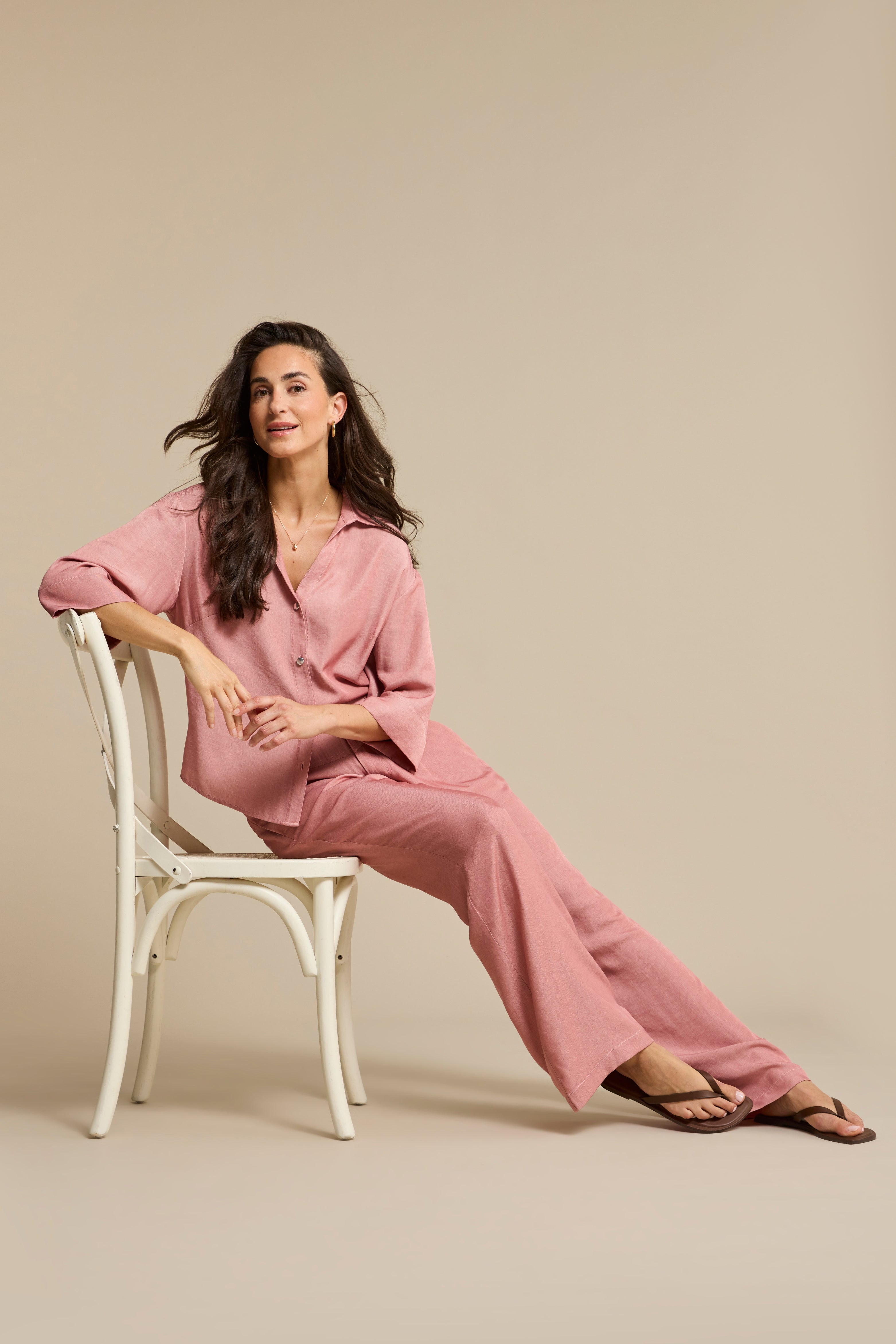 De Broek Colette Yoke Shine Rosewood van Red Button combineert een elegante uitstraling met ultiem draagcomfort. De subtiele glans en het yoke-detail zorgen voor een verfijnde look, terwijl de rechte pijp en comfortabele taille de broek perfect maken voor elke dag.