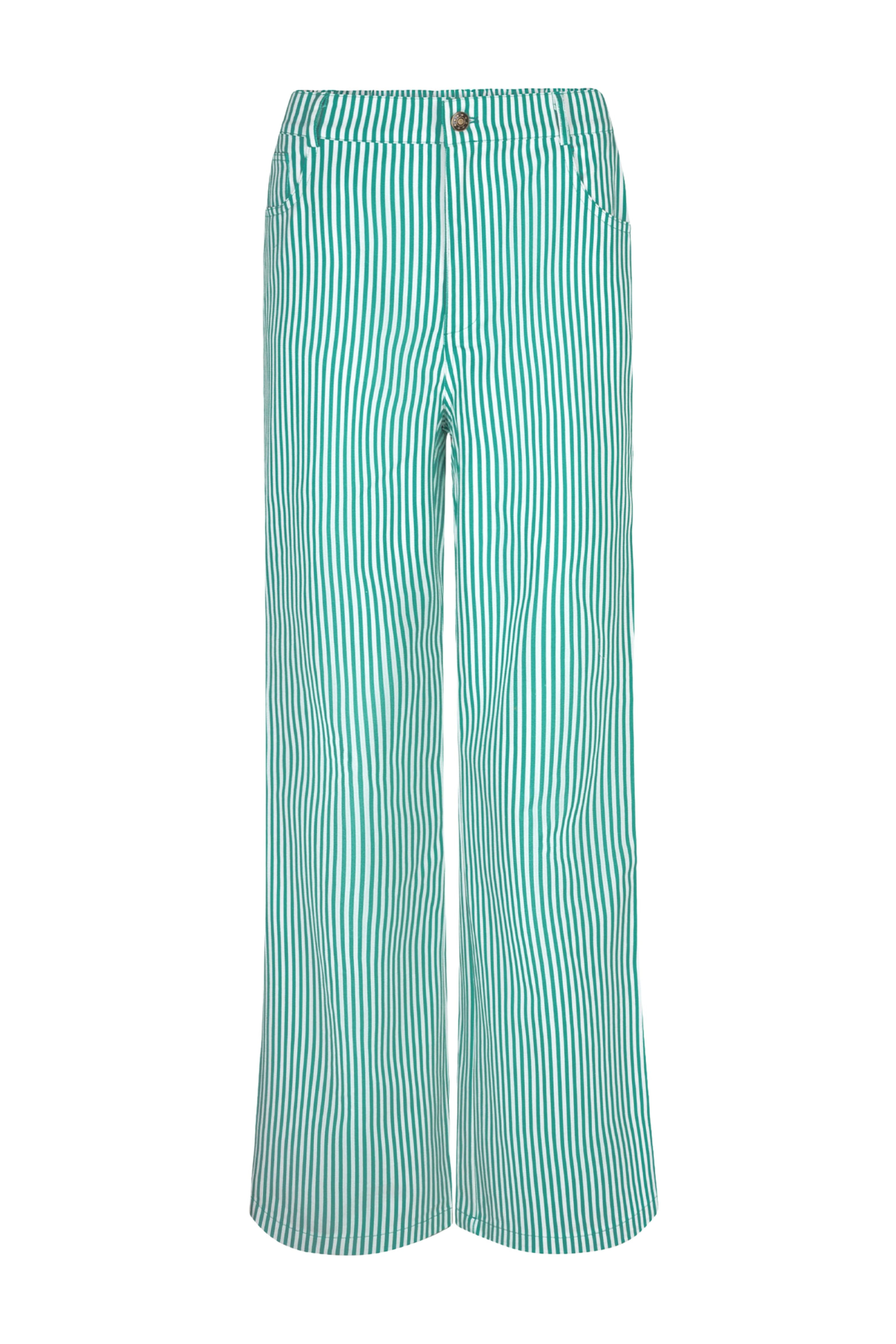 De Broek Djamilla Sea Green van Ydence is een echte eyecatcher voor het najaar. De verticale strepen en wijde pijpen zorgen voor een flatterende look, terwijl de luchtige stof comfortabel draagt en elegant valt.