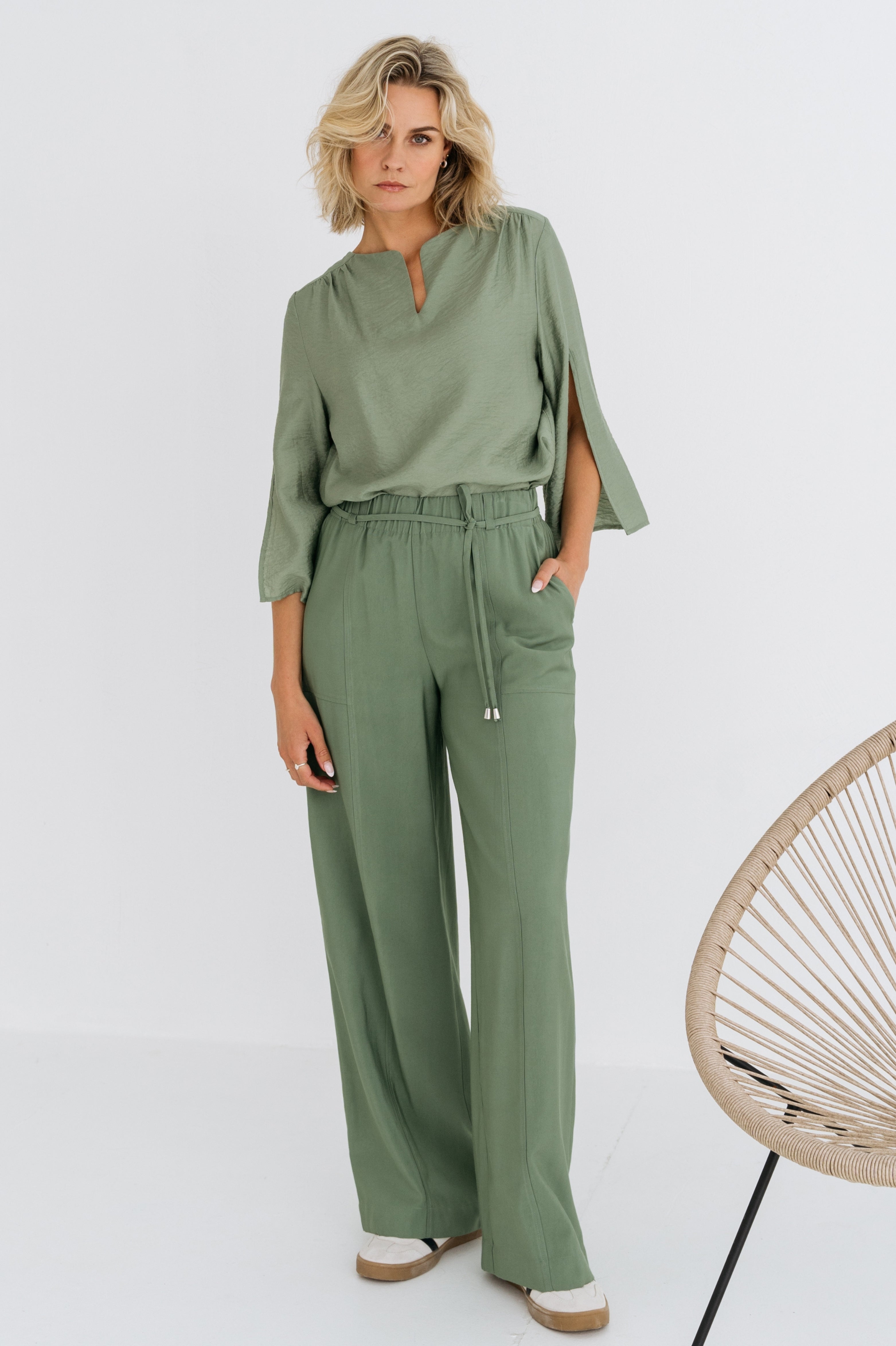 De Broek Doore Aquatic van Maicazz is dé perfecte mix van stijl en comfort. Met een losvallende pasvorm, elastische taille en trendy wijde pijpen creëer je moeiteloos een chique, casual look.