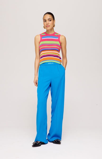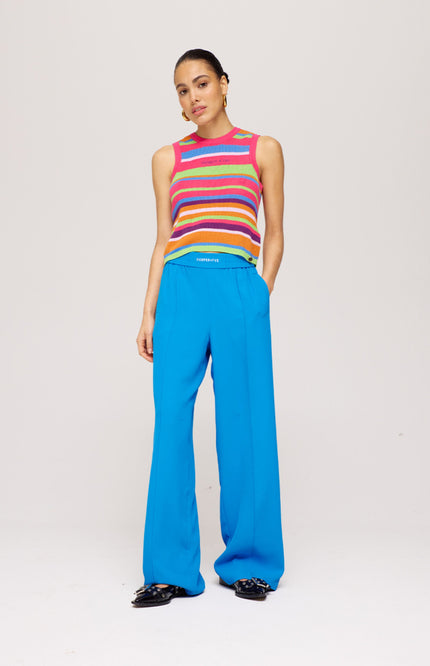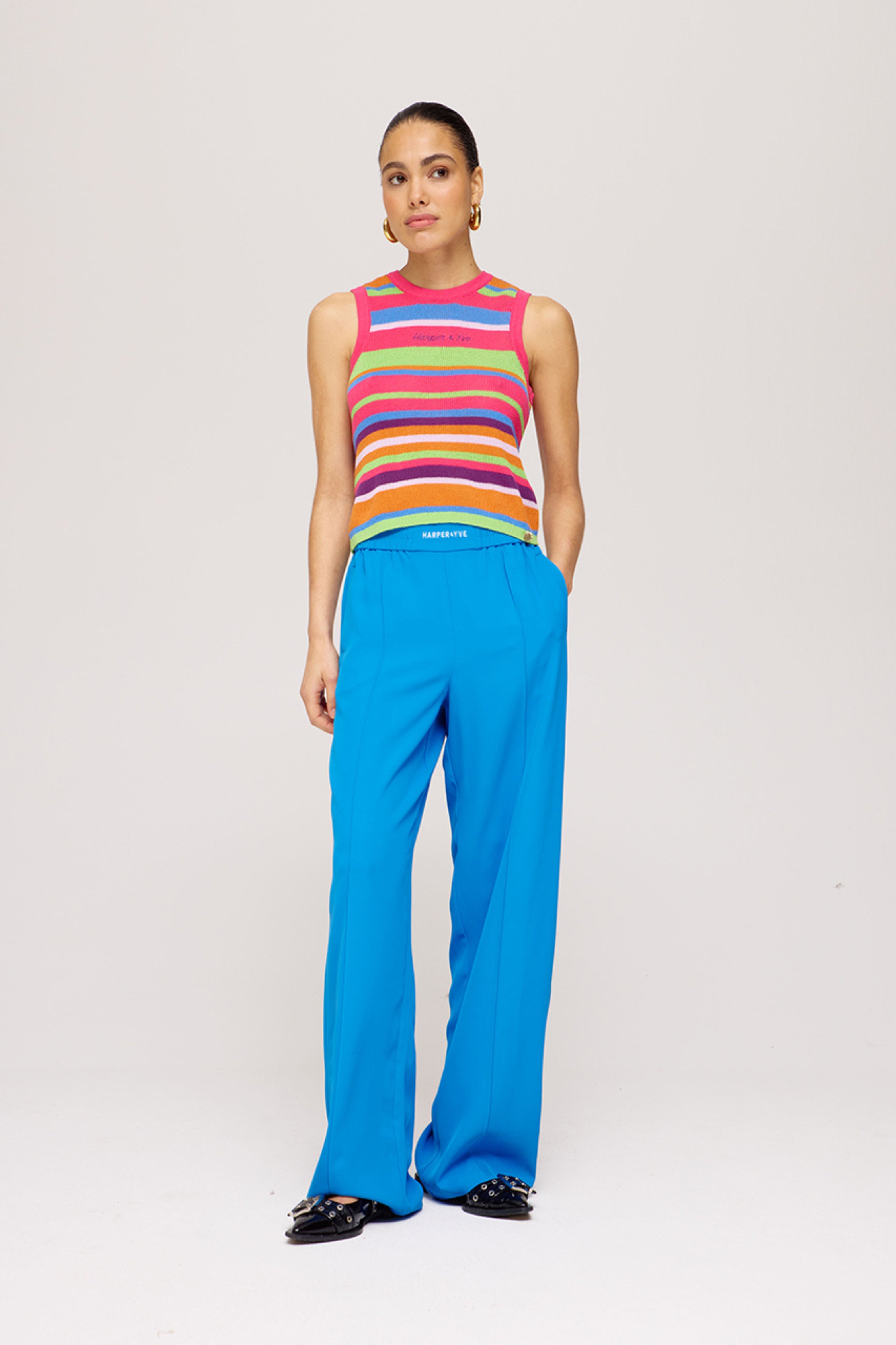 De Broek Dora Bold Blue van Harper & Yve is een stijlvolle, wijde broek met een elastische tailleband voor optimaal comfort. De felle blauwe kleur maakt het een opvallende must-have voor elke modebewuste look.