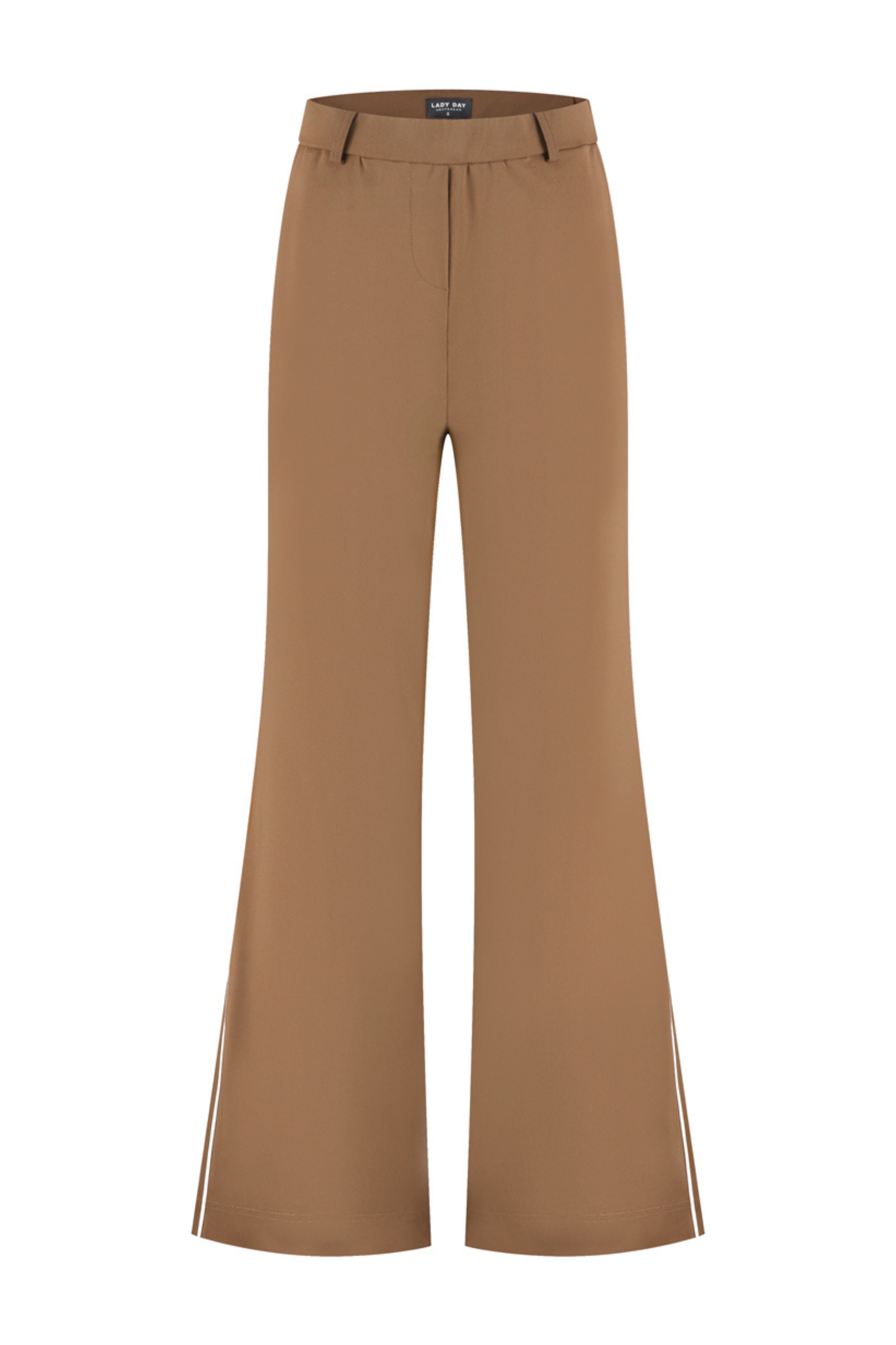 De Broek Eleyn Mocha van Lady Day is een elegante, wijde pantalon in comfortabele travelkwaliteit. Subtiele persvouwen en steekzakken. Perfect voor werk en smart casual.