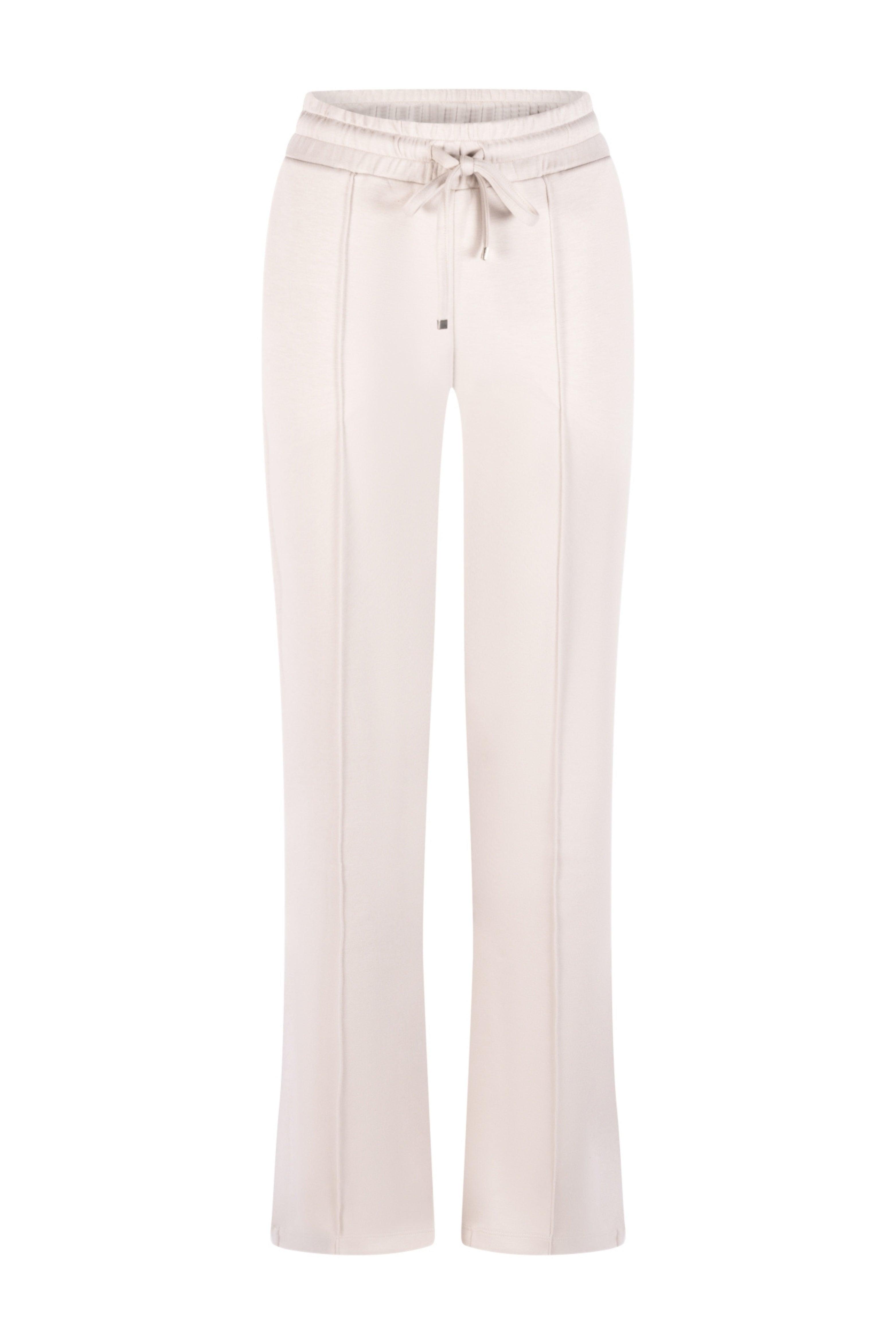 Broek Esmee Sand: Comfortabele broek in zandkleur met elastische tailleband, trekkoord en rechte pijpen. Perfect voor een casual en stijlvolle look!