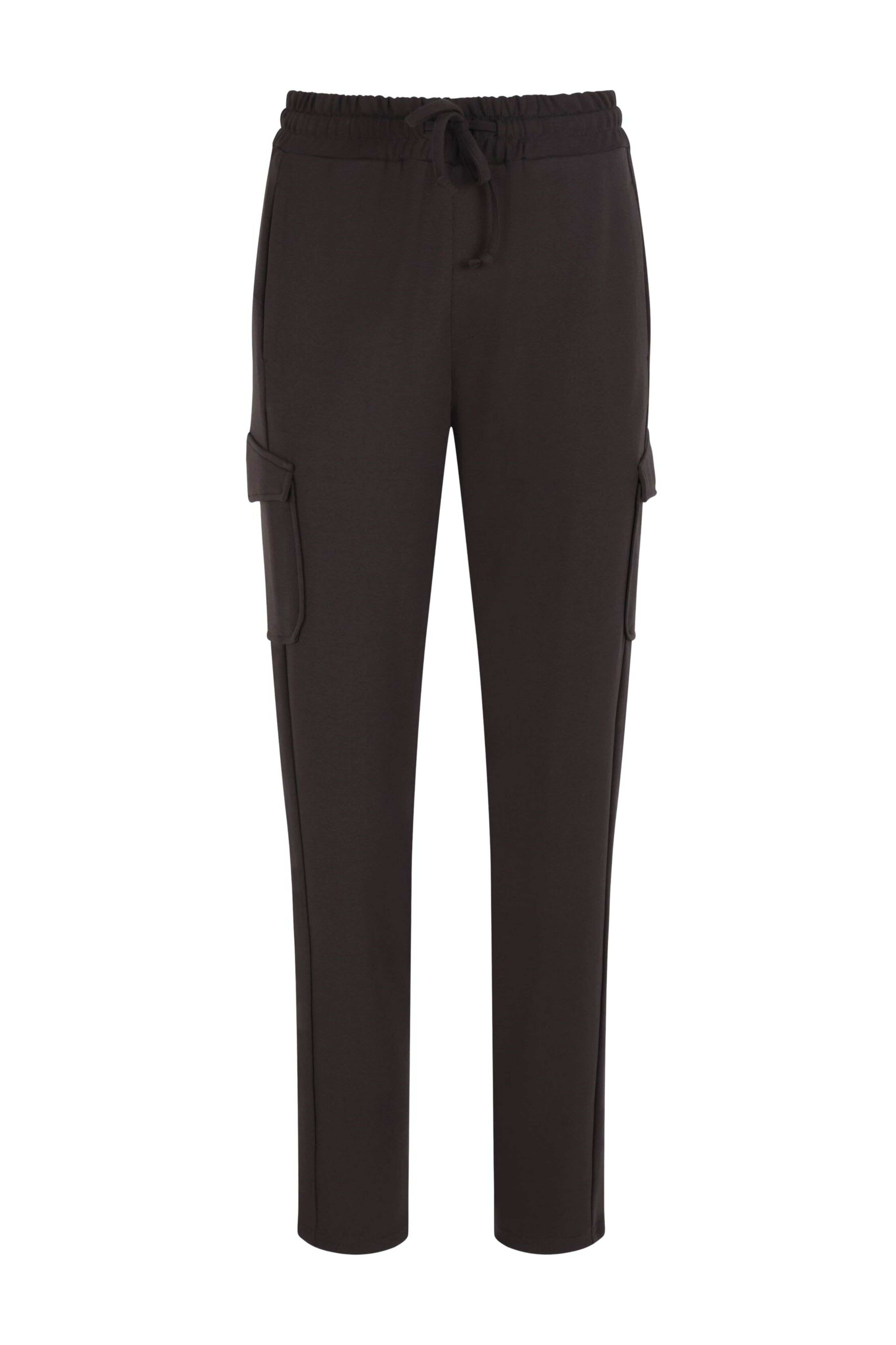 De Fenna Dark Brown broek van Elvira is een moderne en comfortabele cargo-stijl broek met een sportieve twist. De broek is uitgevoerd in een diepe donkerbruine kleur en voorzien van stoere opgestikte zakken aan de zijkanten.