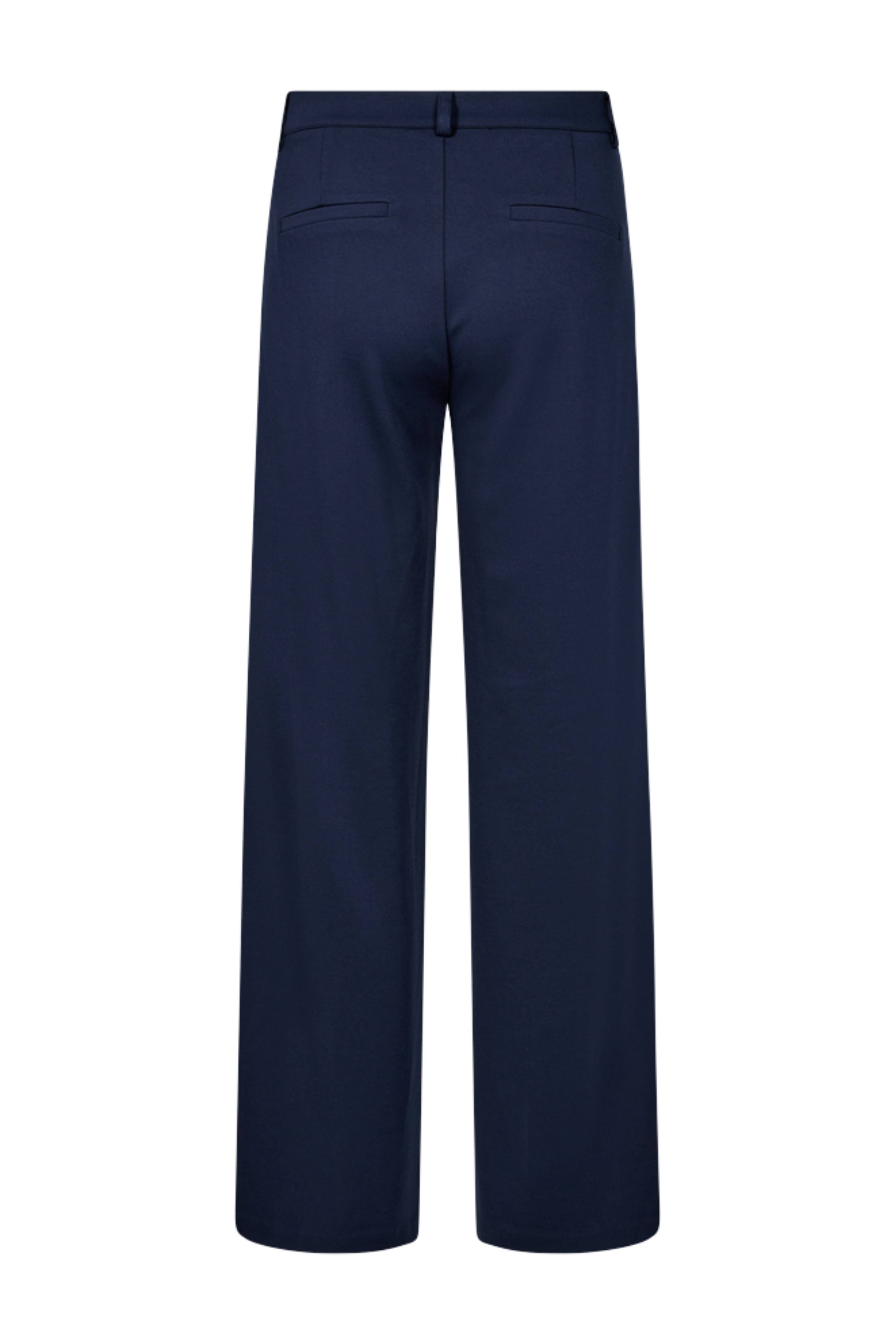 De Broek Fqnanni Navy Blazer van Freequent is een moderne broek met rechte, wijde pijpen. De soepele stretchstof en nette persvouw geven comfort รฉn een geklede look. Perfect voor werk en weekend.