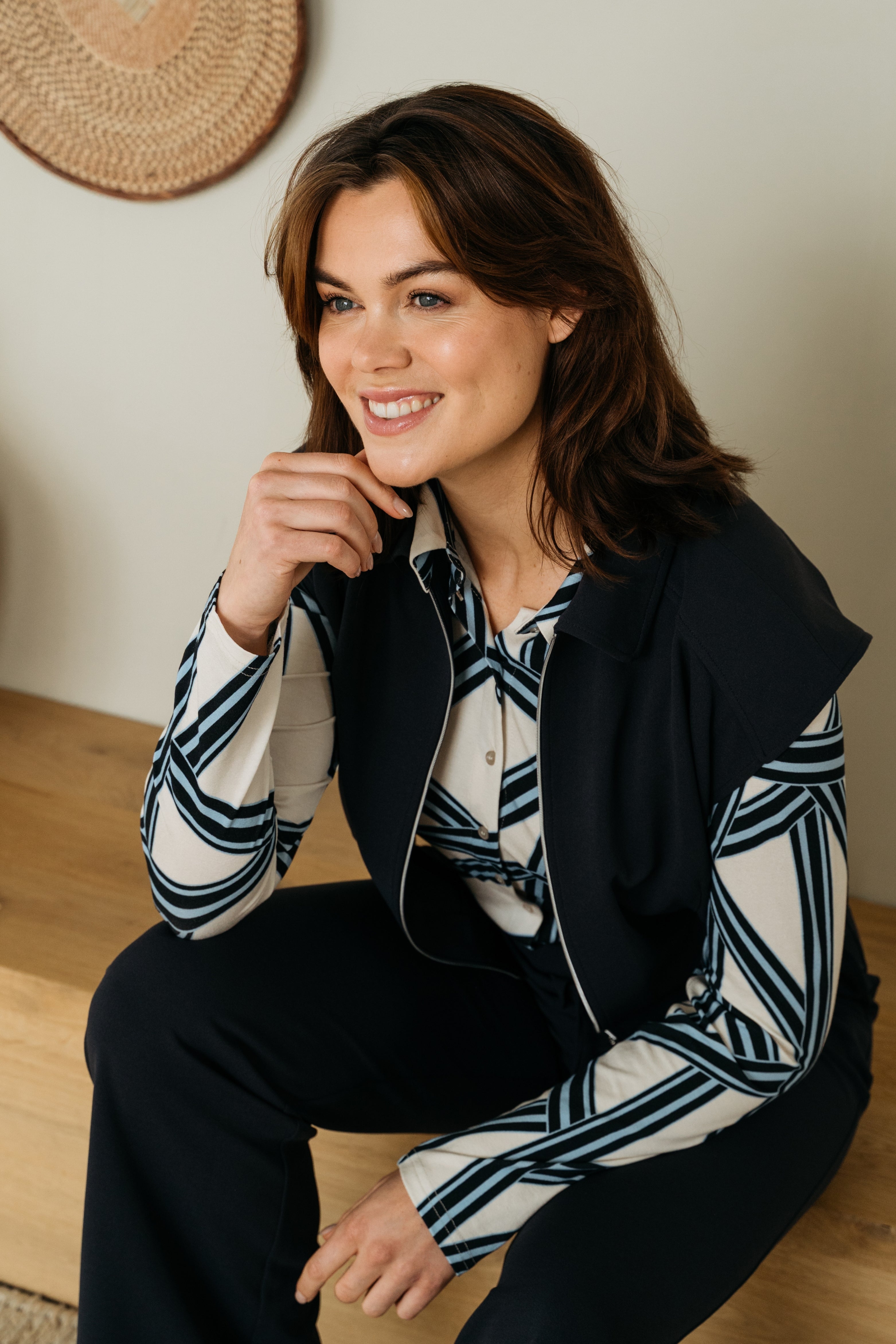 • Het ecom model is 177 cm en draagt maat M, de campagne modellen zijn 172 cm en 179 cm en dragen maat S en M