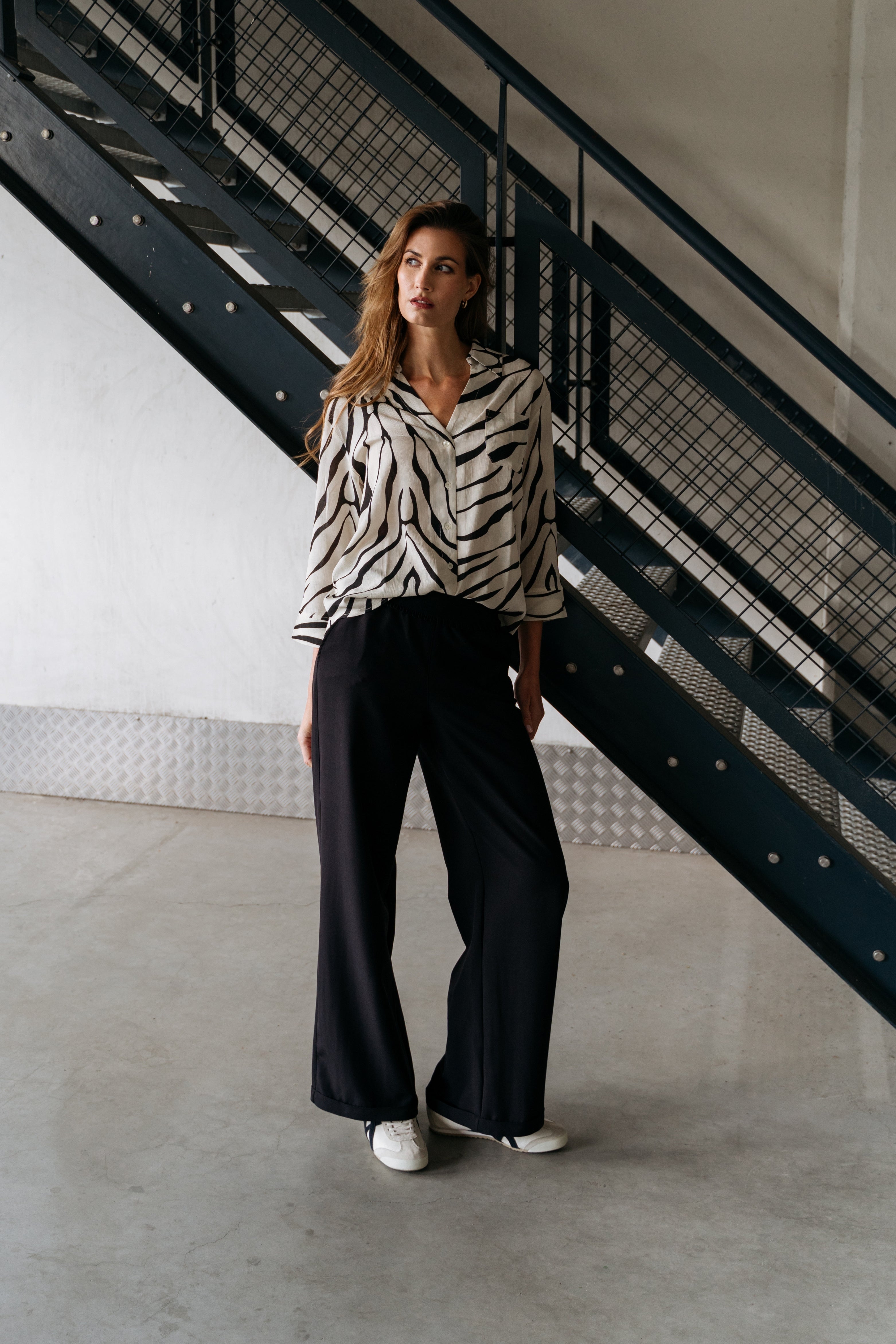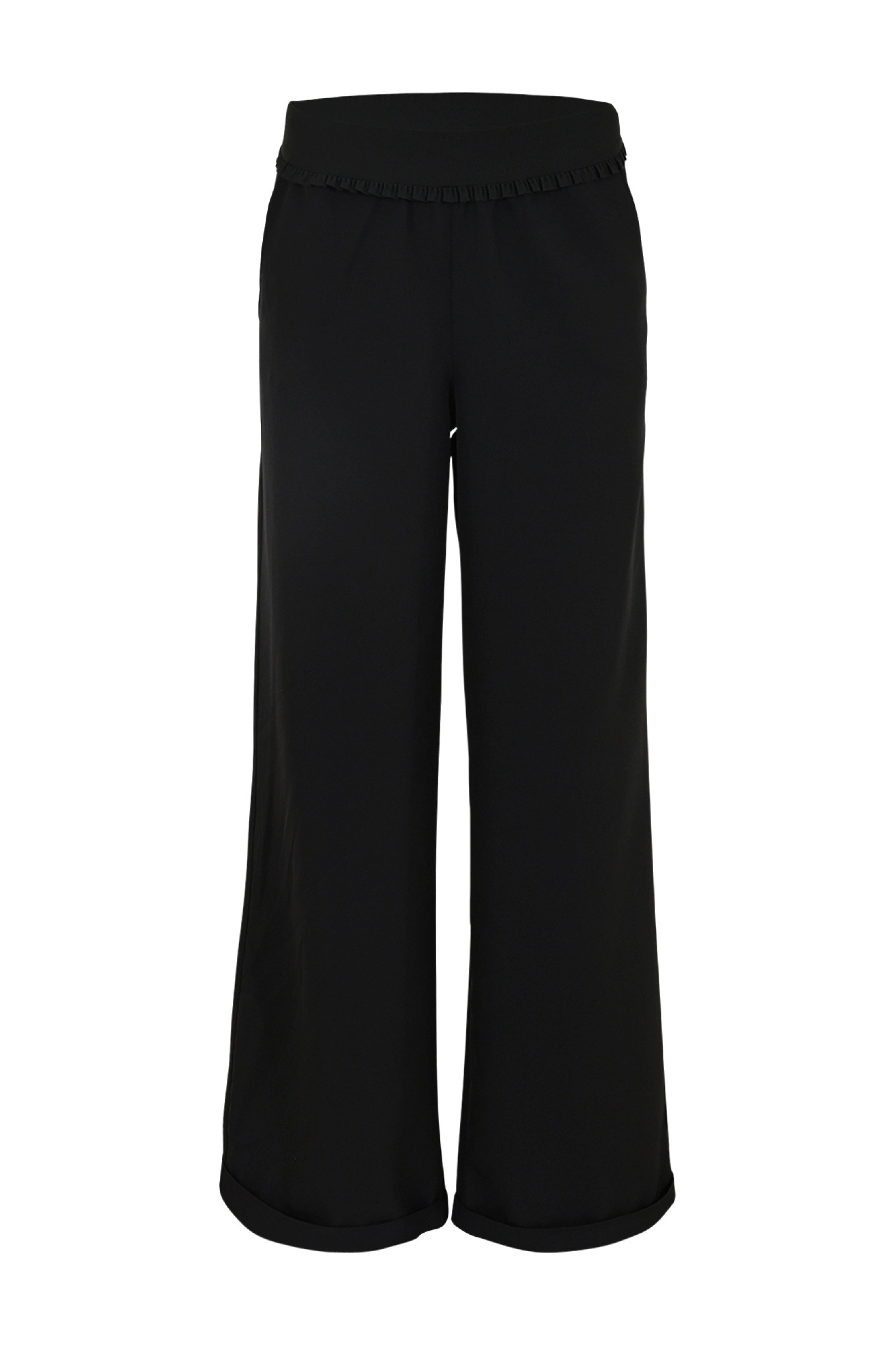 De Harper broek van Zizo in tijdloos zwart biedt ultiem comfort met een stijlvolle uitstraling. De soepele stof en wijde pijpen geven je outfit een elegante touch, terwijl het elastische boord met plooidetail zorgt voor een perfecte fit.