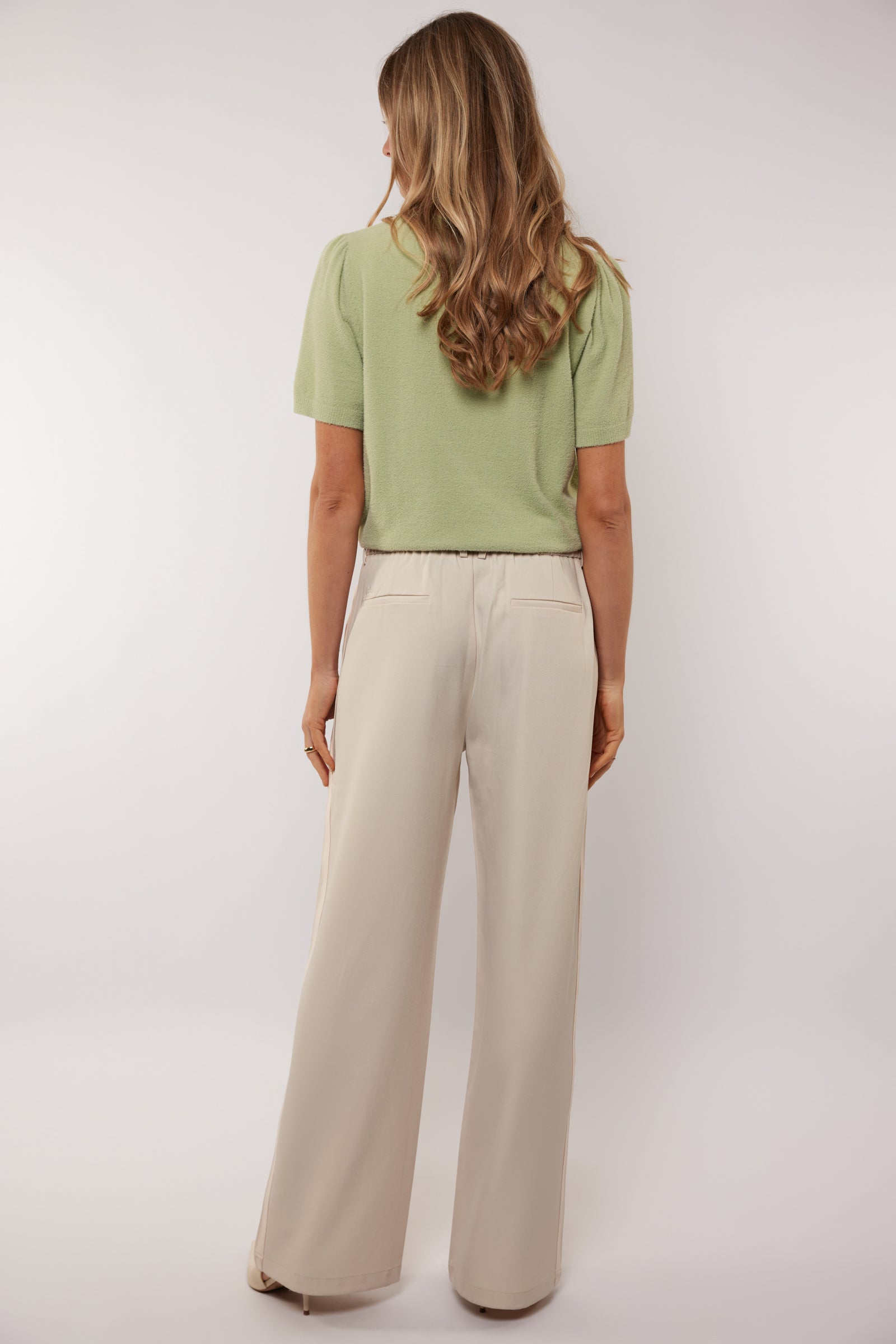 De Broek Izabella Sand van G-Maxx is een elegante, losvallende pantalon met hoge taille en persvouwen. Voorzien van riemlussen en nette steekzakken. Perfect voor kantoor of een chique diner.