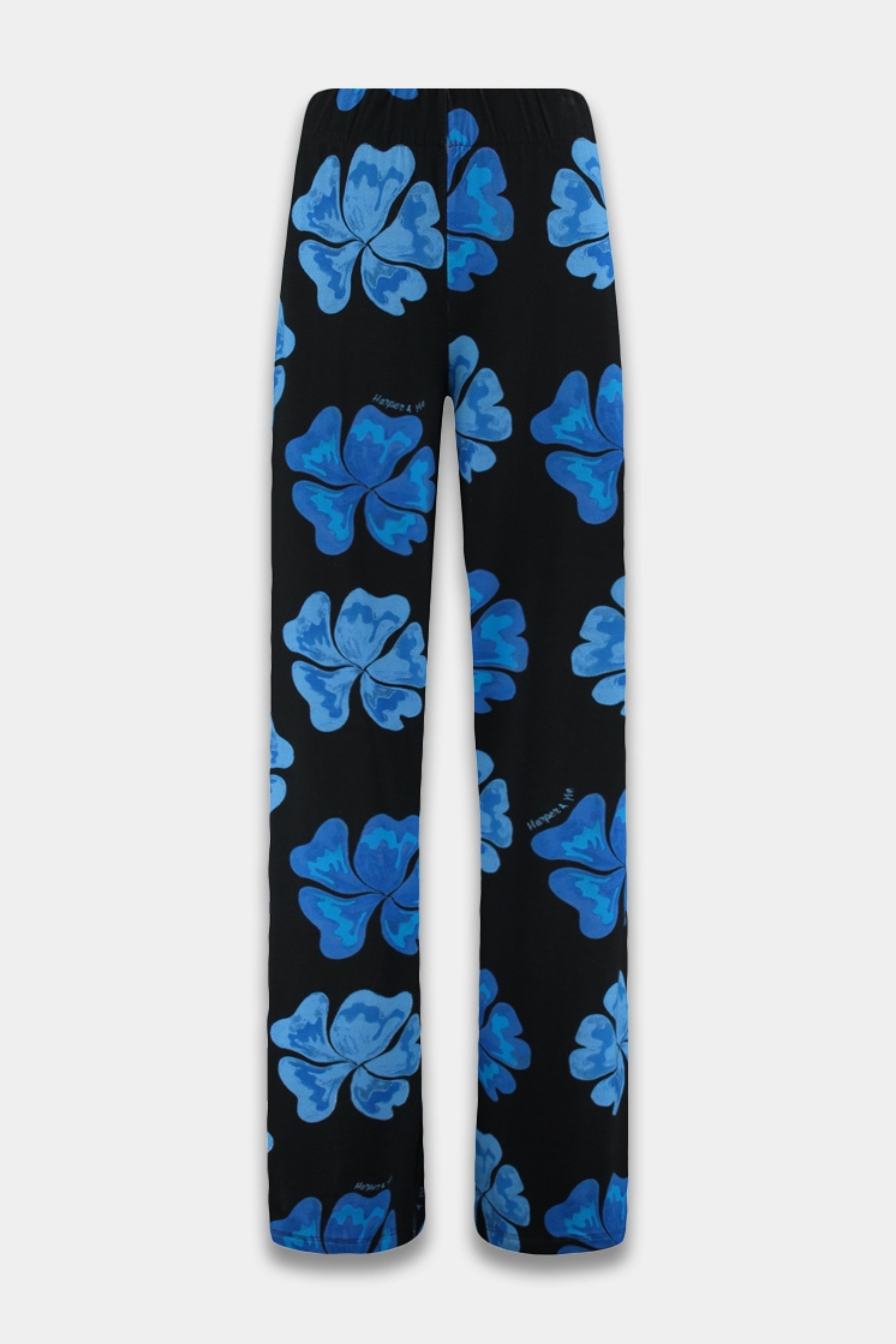 Broek Jane Blue Bloom van Harper & Yve is een opvallende wide leg broek met grote blauwe bloemenprint. De soepele stof en elastische taille zorgen voor een comfortabele, modieuze fit.