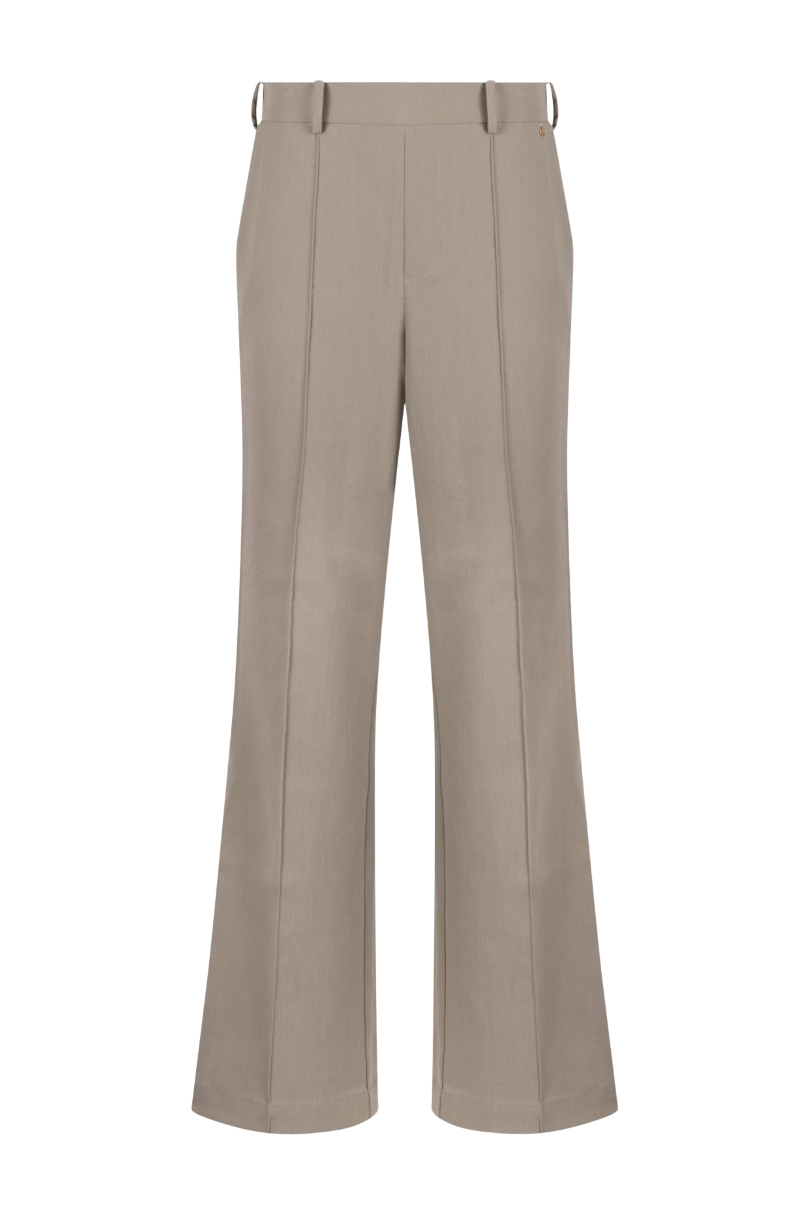 De Broek Jill Army van Nukus is een elegante broek met hoge taille en gladde persvouwen. De soepele stof valt mooi langs het been en de elastische achterzijde draagt comfortabel. Perfect voor kantoor en etentjes.