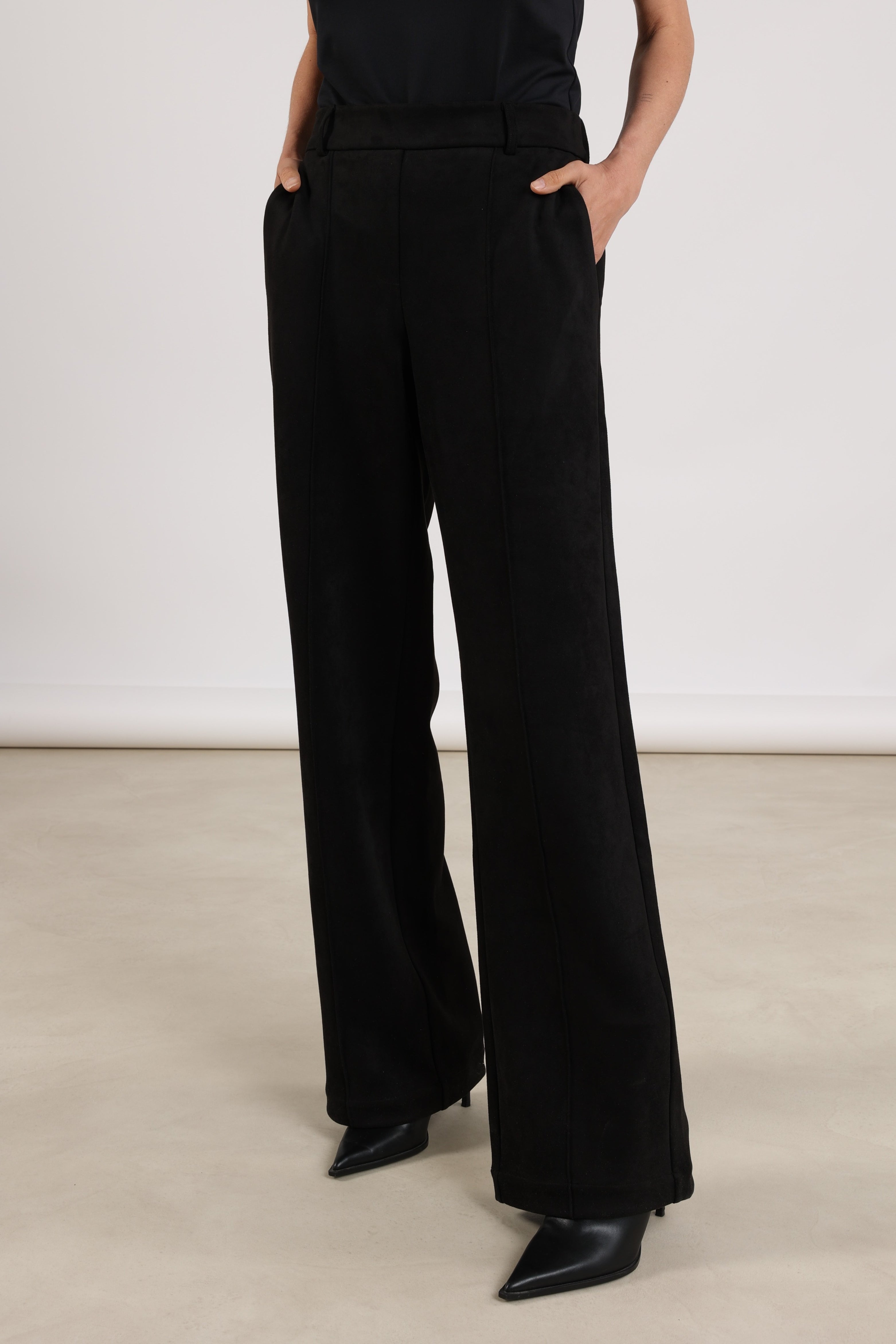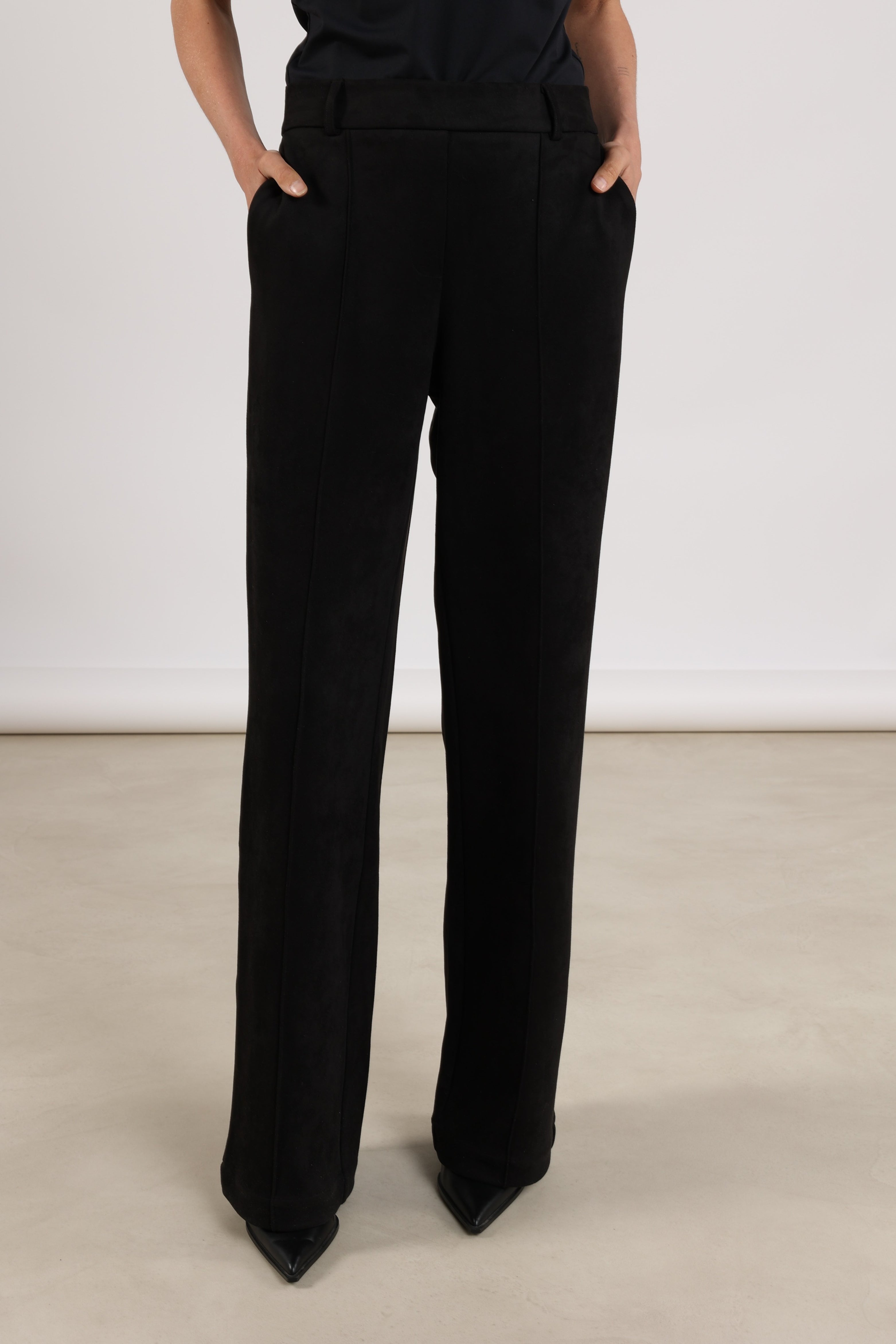 De Jill Scuba Broek van Nukus in Black heeft een elegante wide leg fit met geperste plooien. Dankzij de elastische taille en comfortabele pasvorm is deze broek zowel stijlvol als draagbaar voor elke gelegenheid.