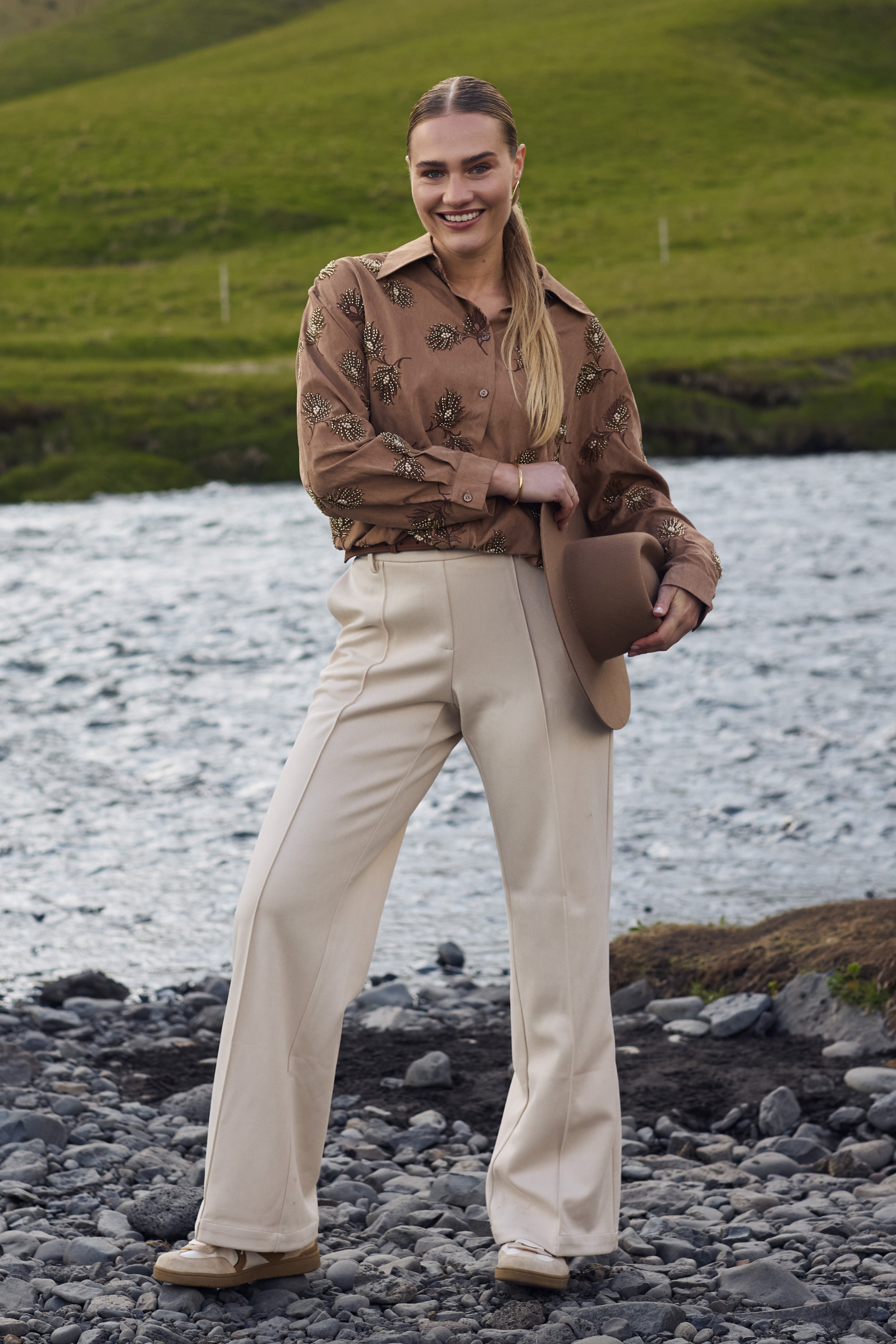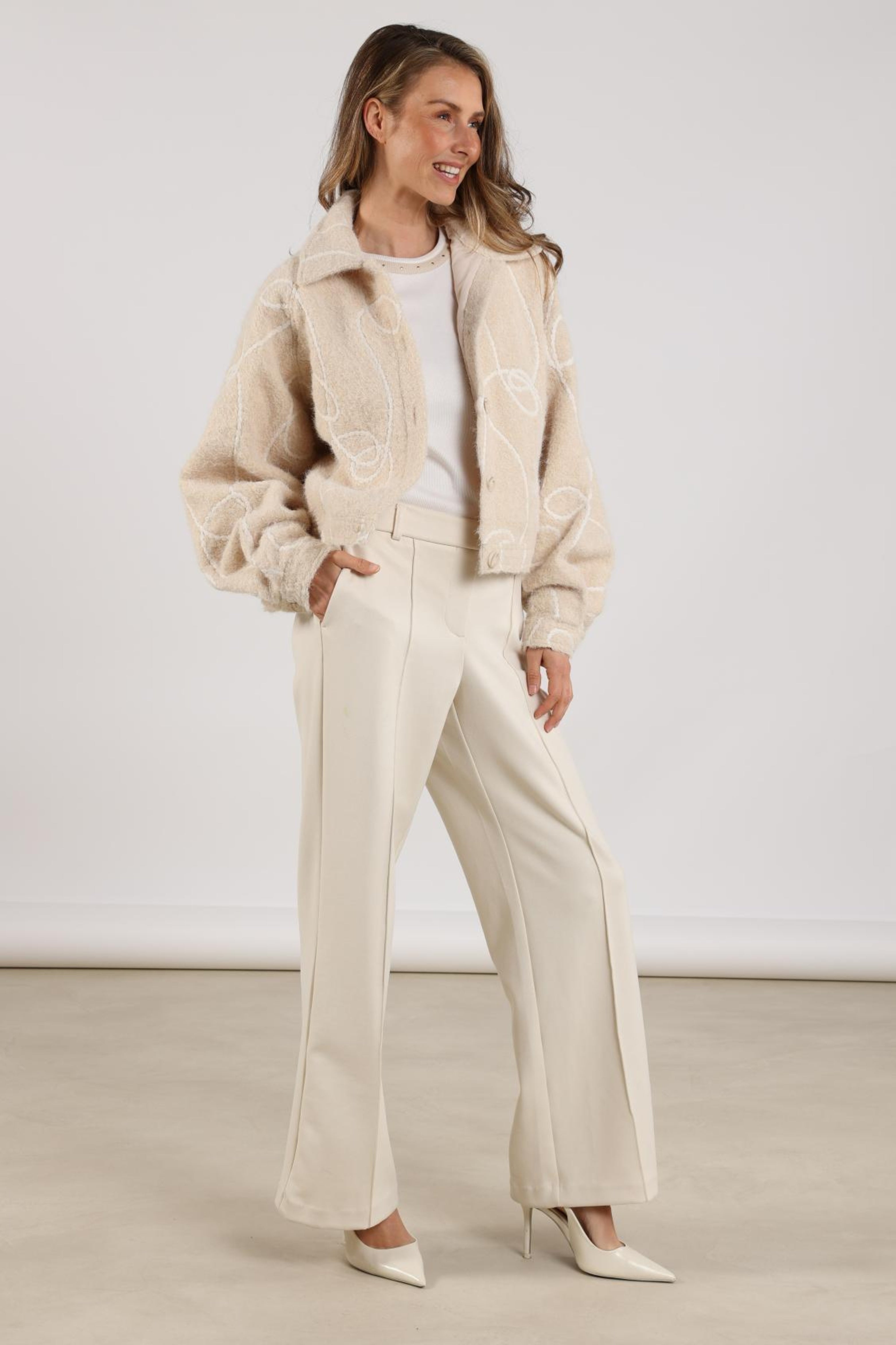 De Jill Scuba Offwhite broek van Nukus combineert een elegante flair met een moderne snit. Gemaakt van stevige, stretchy scuba-stof voor een flatterende pasvorm en ultiem draagcomfort. Ideaal voor kantoor én casual days!