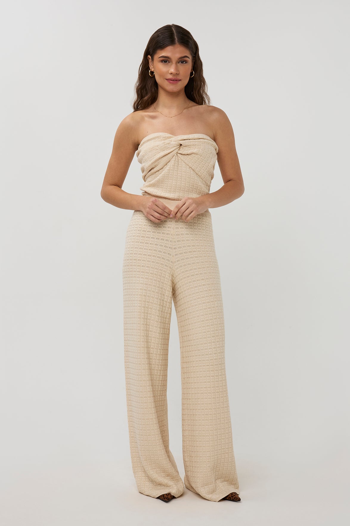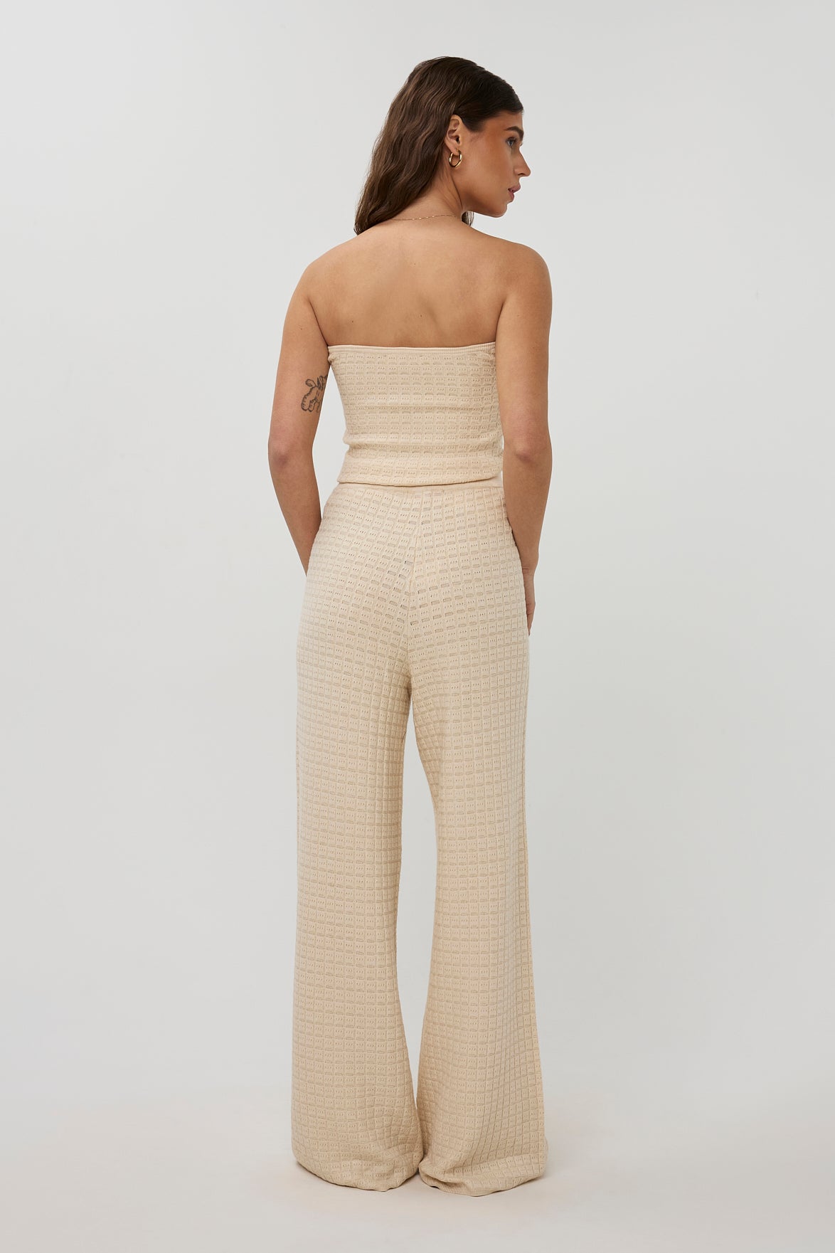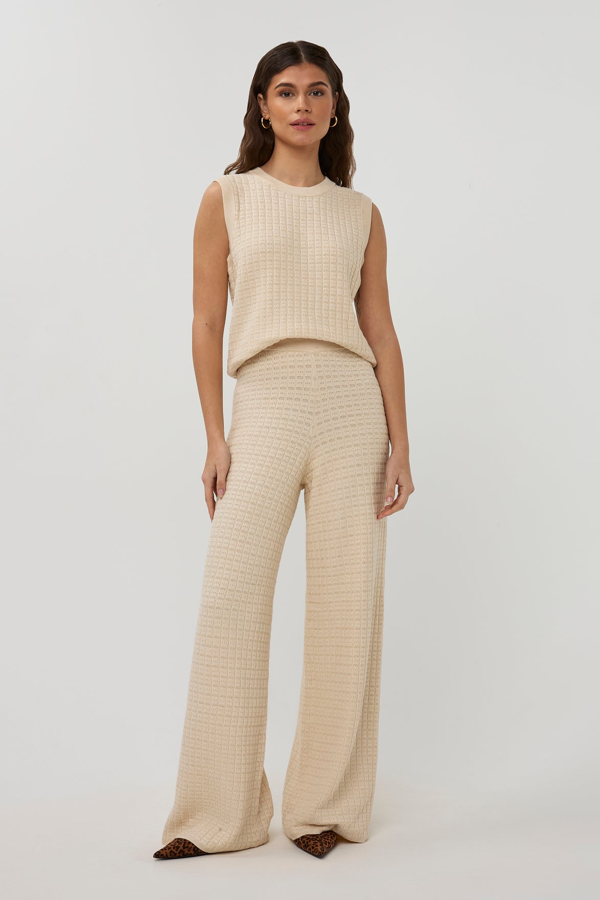 De Broek Kensie Beige van Studio Amaya is een stijlvolle, losvallende broek met een zachte wafelstructuur. De broek zit comfortabel en geeft een luxe loungegevoel. Perfect voor zomerse dagen en vakanties.