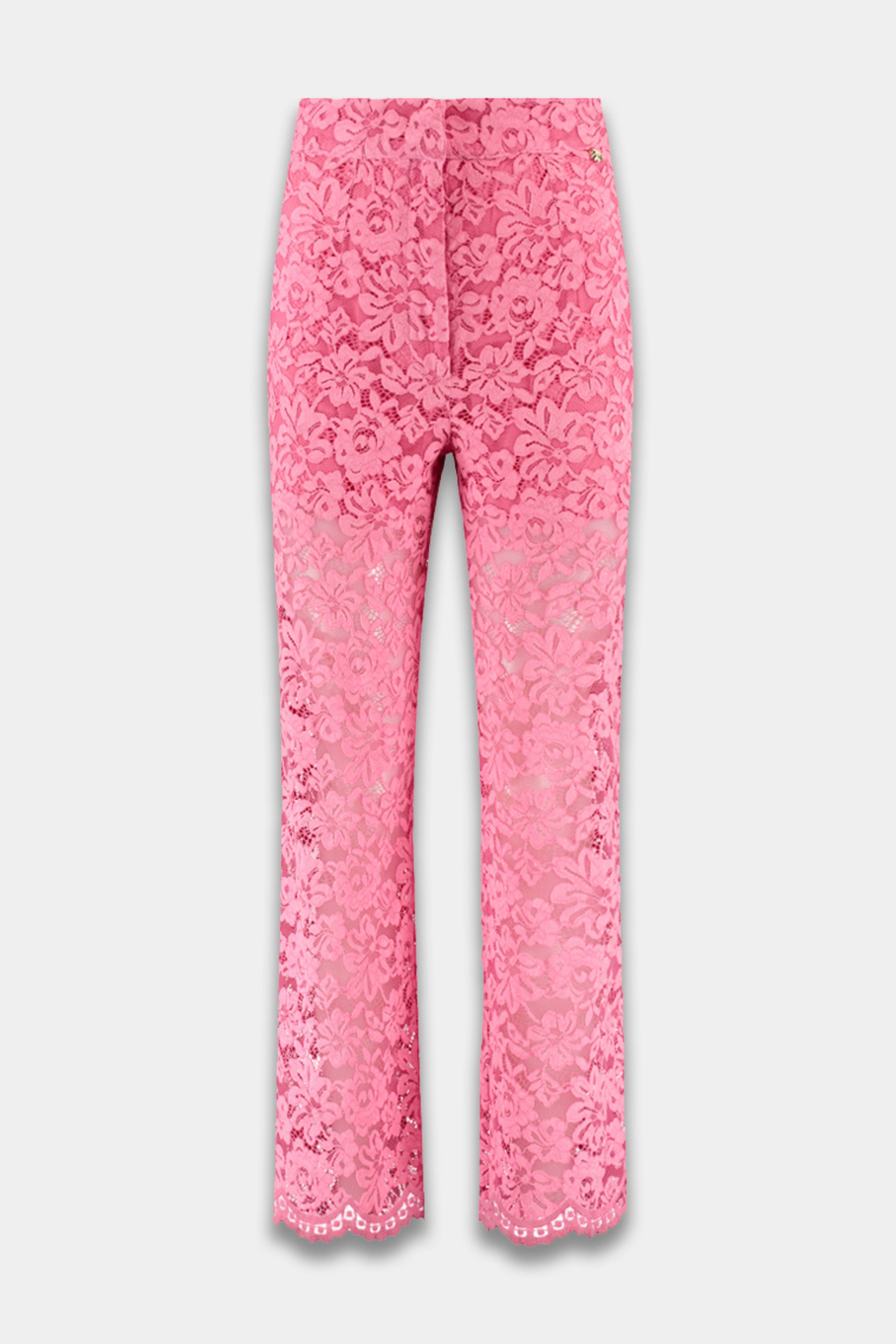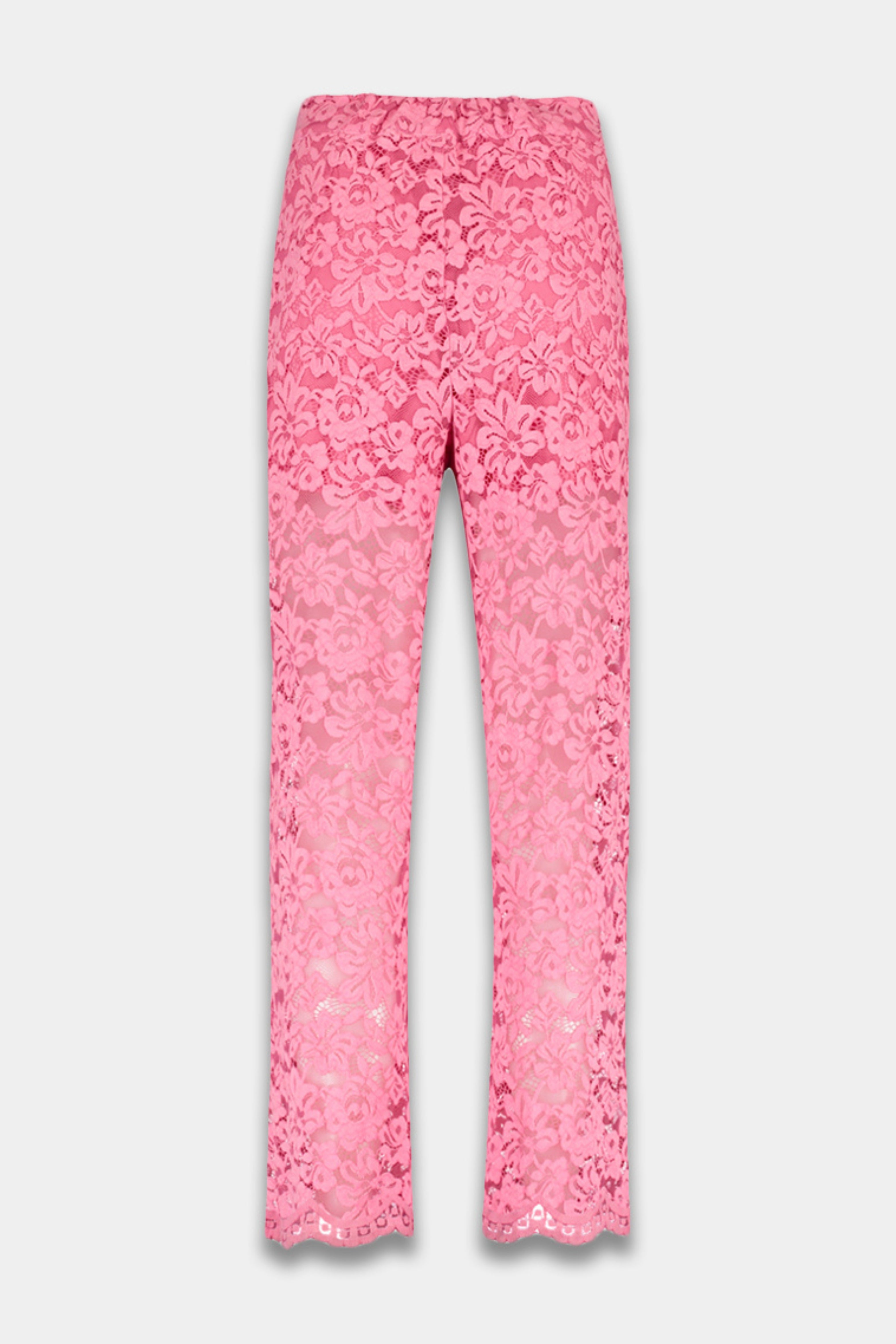 De Broek Lola Bittersweet Pink van Harper & Yve is een stijlvolle kanten broek met een hoge taille en rechte pijpen. De transparante stof zorgt voor een elegante en speelse uitstraling, perfect voor trendy looks.
