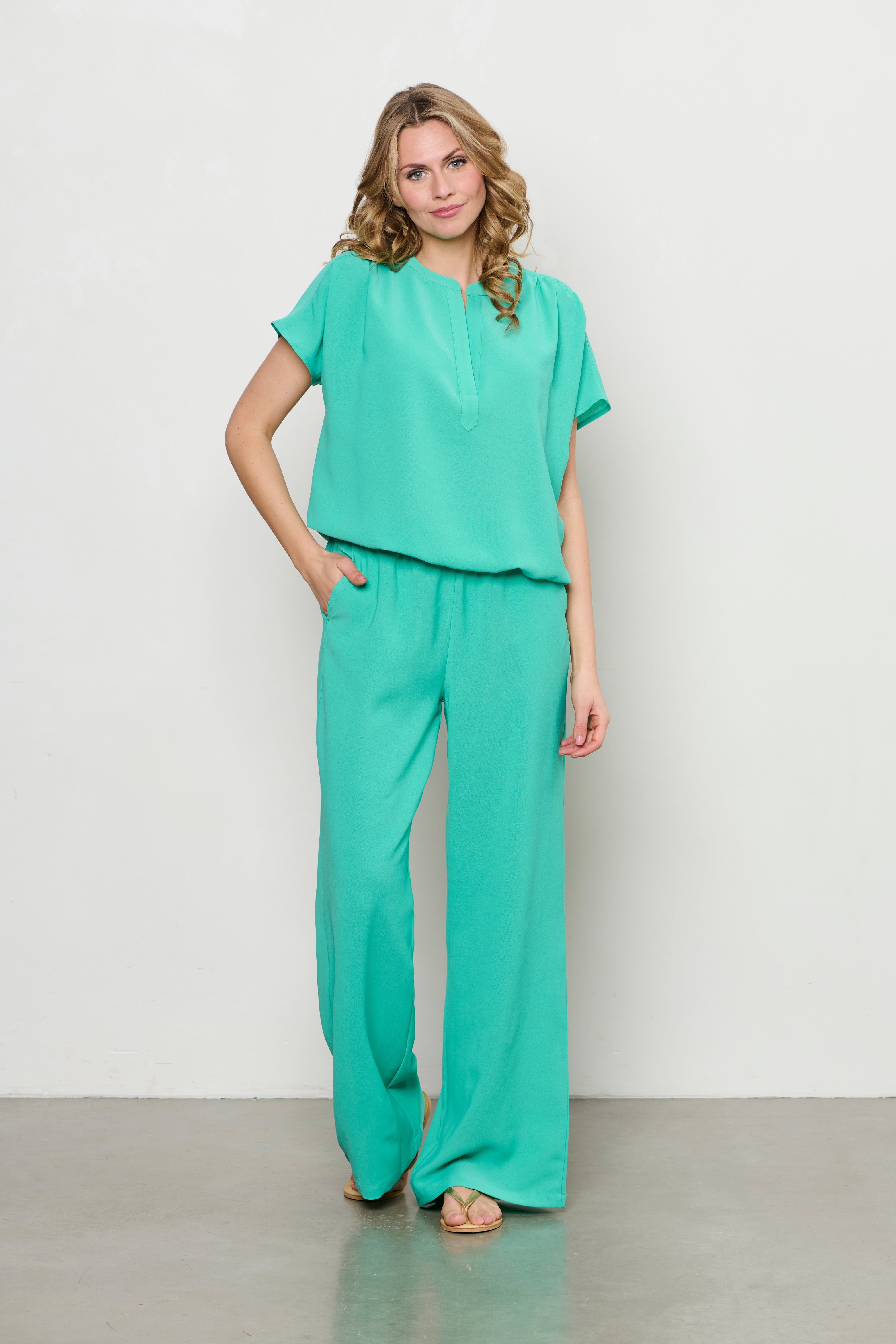 De Nelly Broek van &Co Woman in Aqua Green is de perfecte mix van comfort en stijl. De soepele stof en wide-leg pasvorm zorgen voor een luchtige, elegante look. Dankzij de elastische taille zit deze broek altijd goed. Ideaal voor werk of vrije tijd!