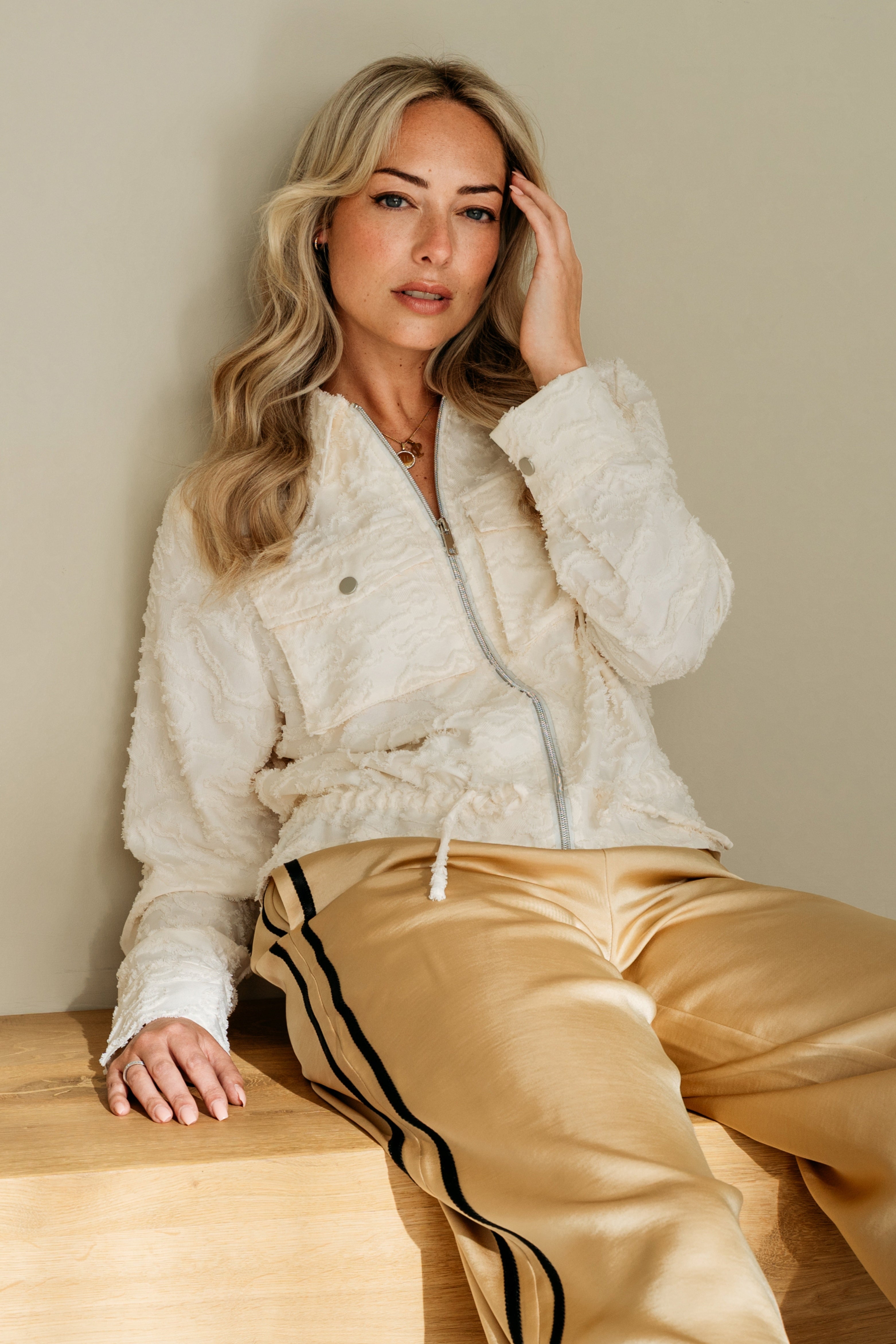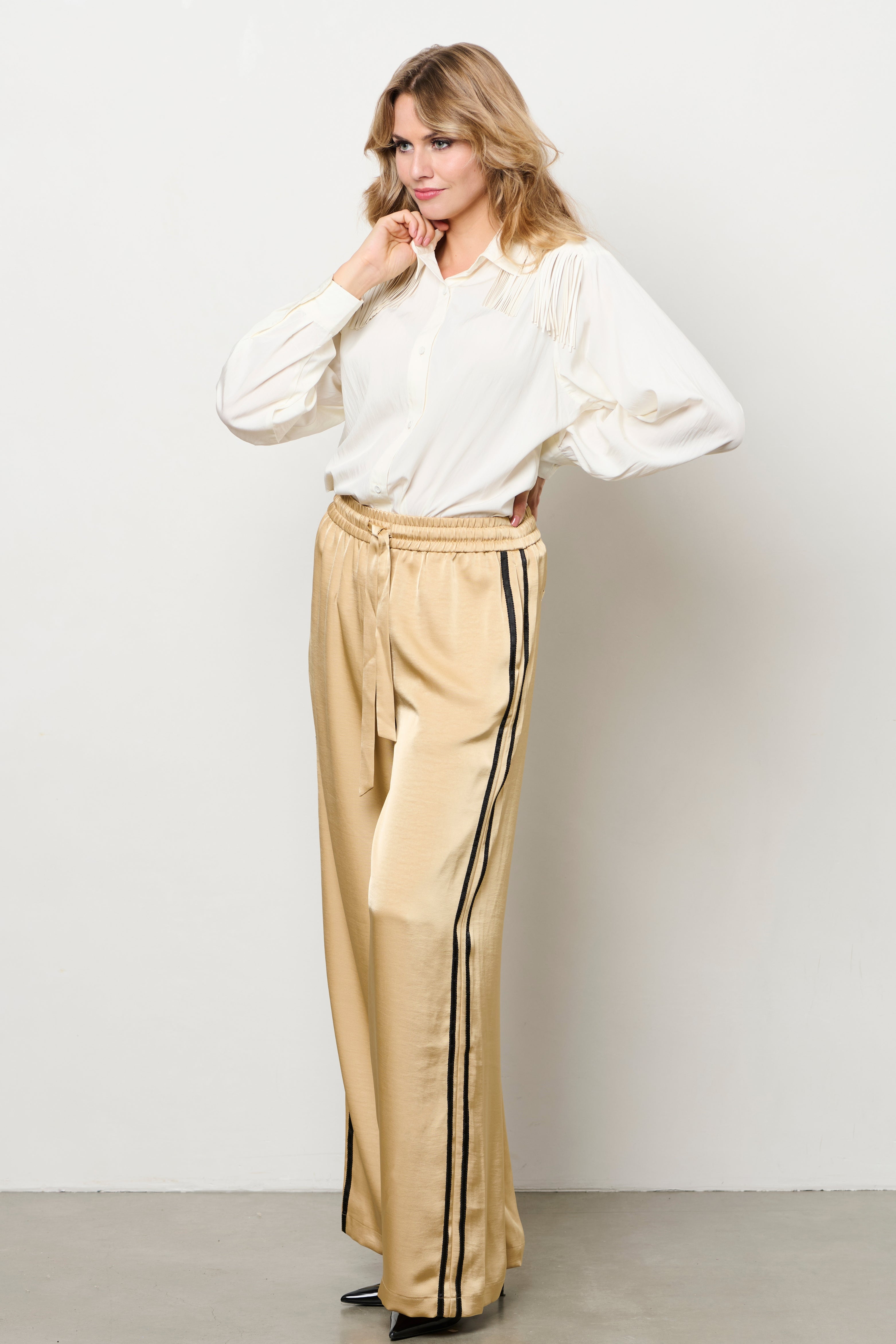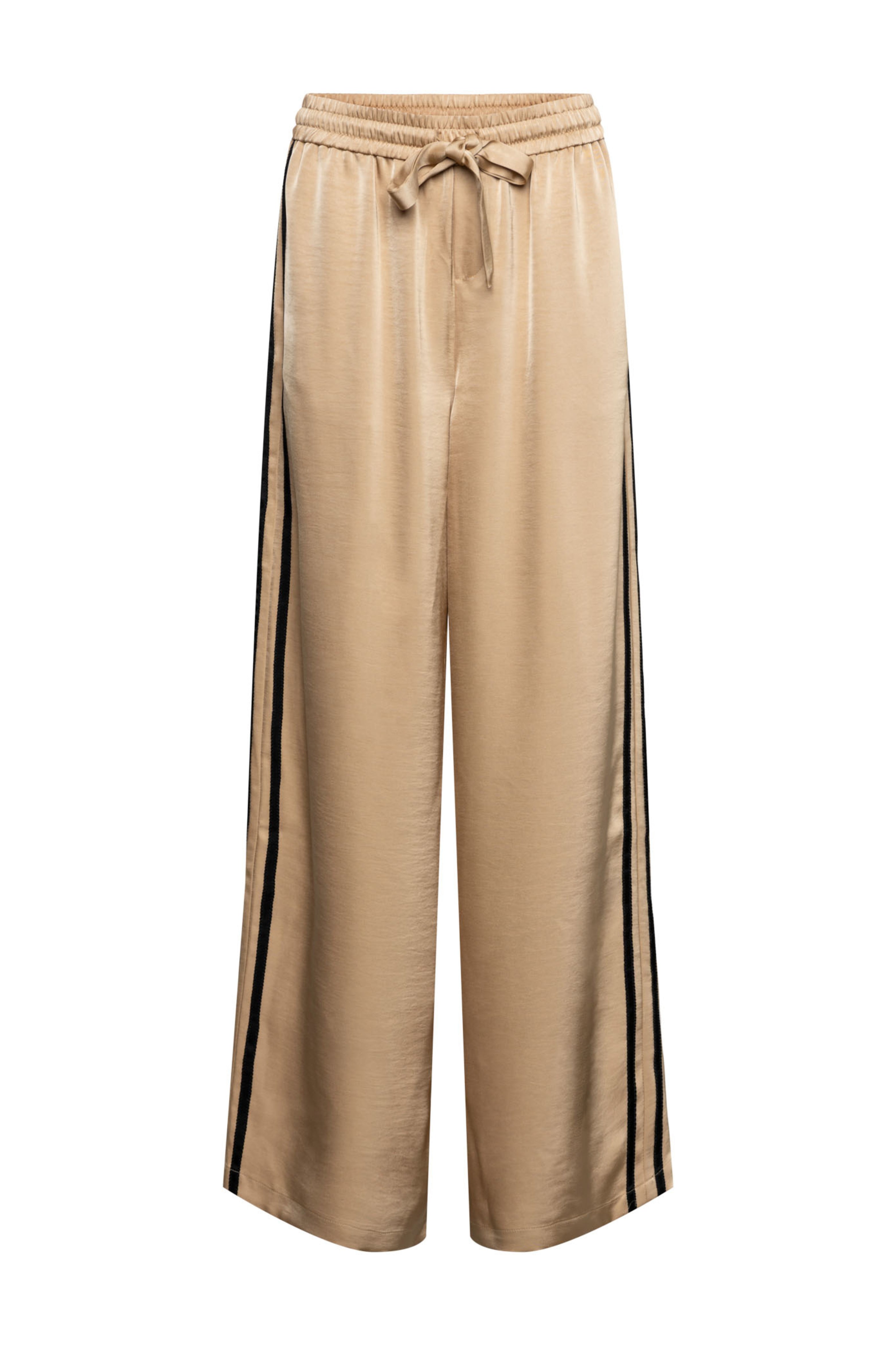 De Broek Neomi Sunset van &Co Woman is een stijlvolle wide leg broek met contrasterende zijstreep en strikkoord. Comfortabel, modern en perfect voor een everyday look met een sport-chique touch.