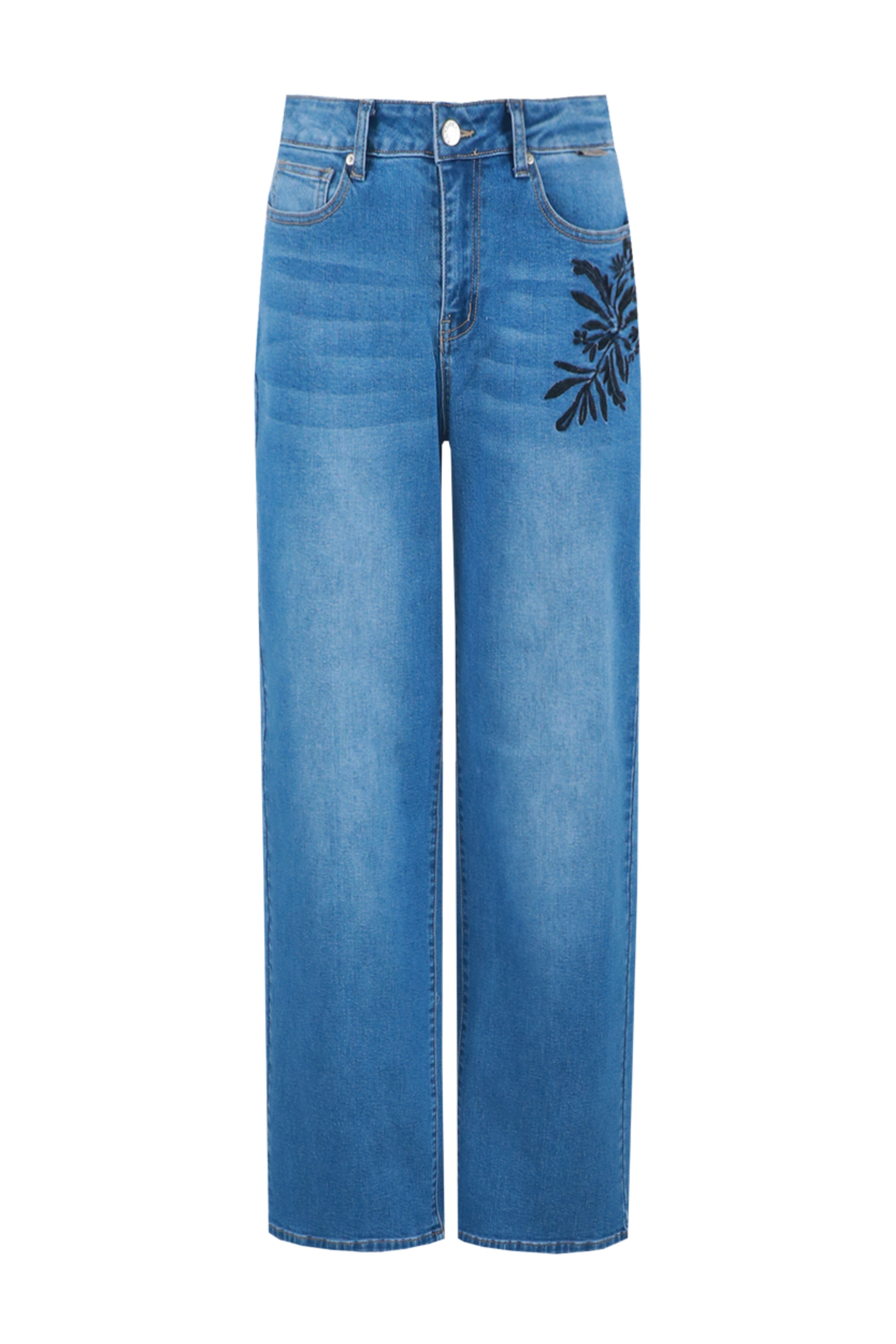 De broek Neona Denim Mid Blue van G-maxx geeft jouw look een stoere twist met de rechte pijpen en opvallende geborduurde details. Draag ‘m casual met sneakers of stijlvol met een blazer en hak.