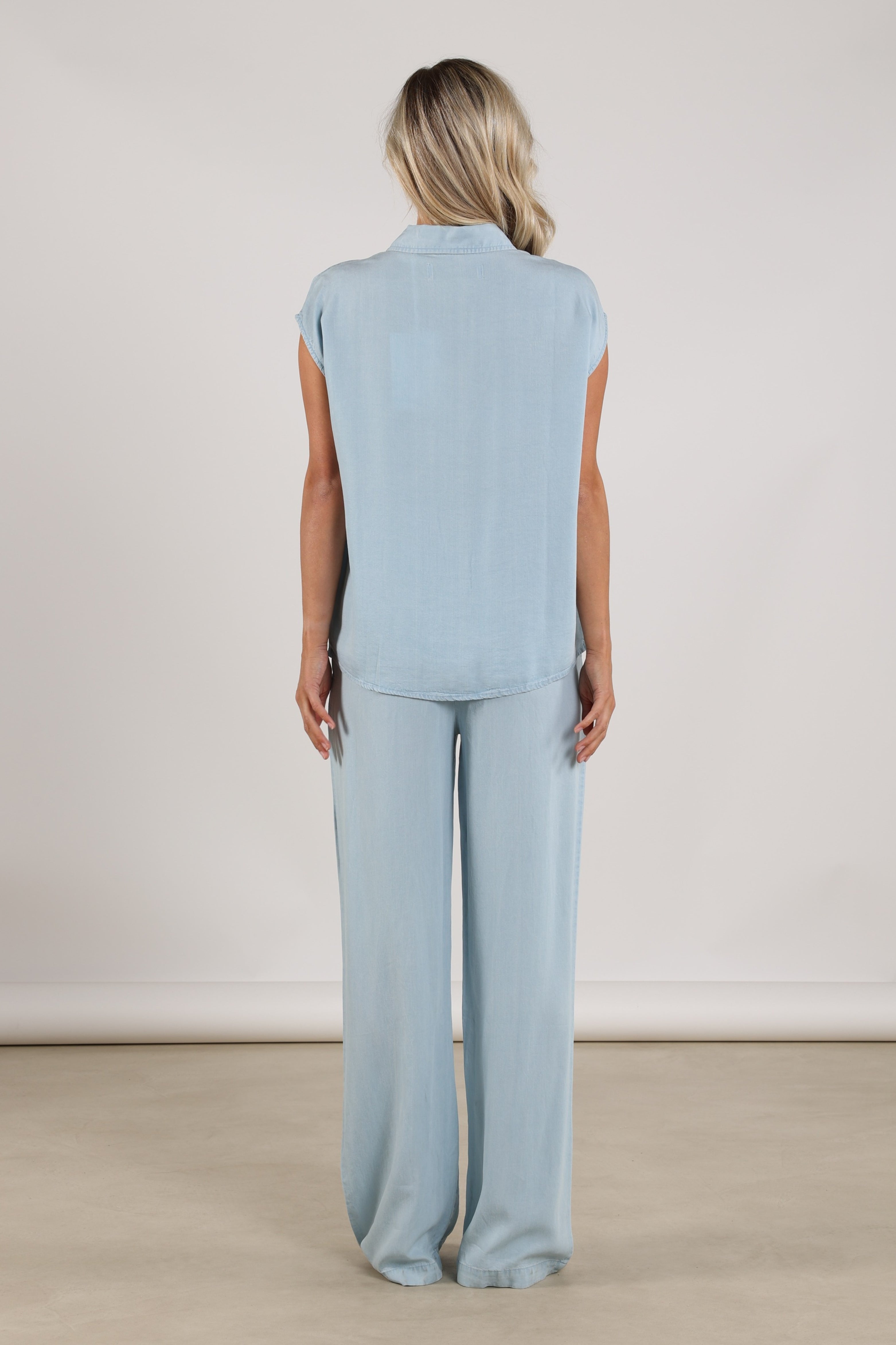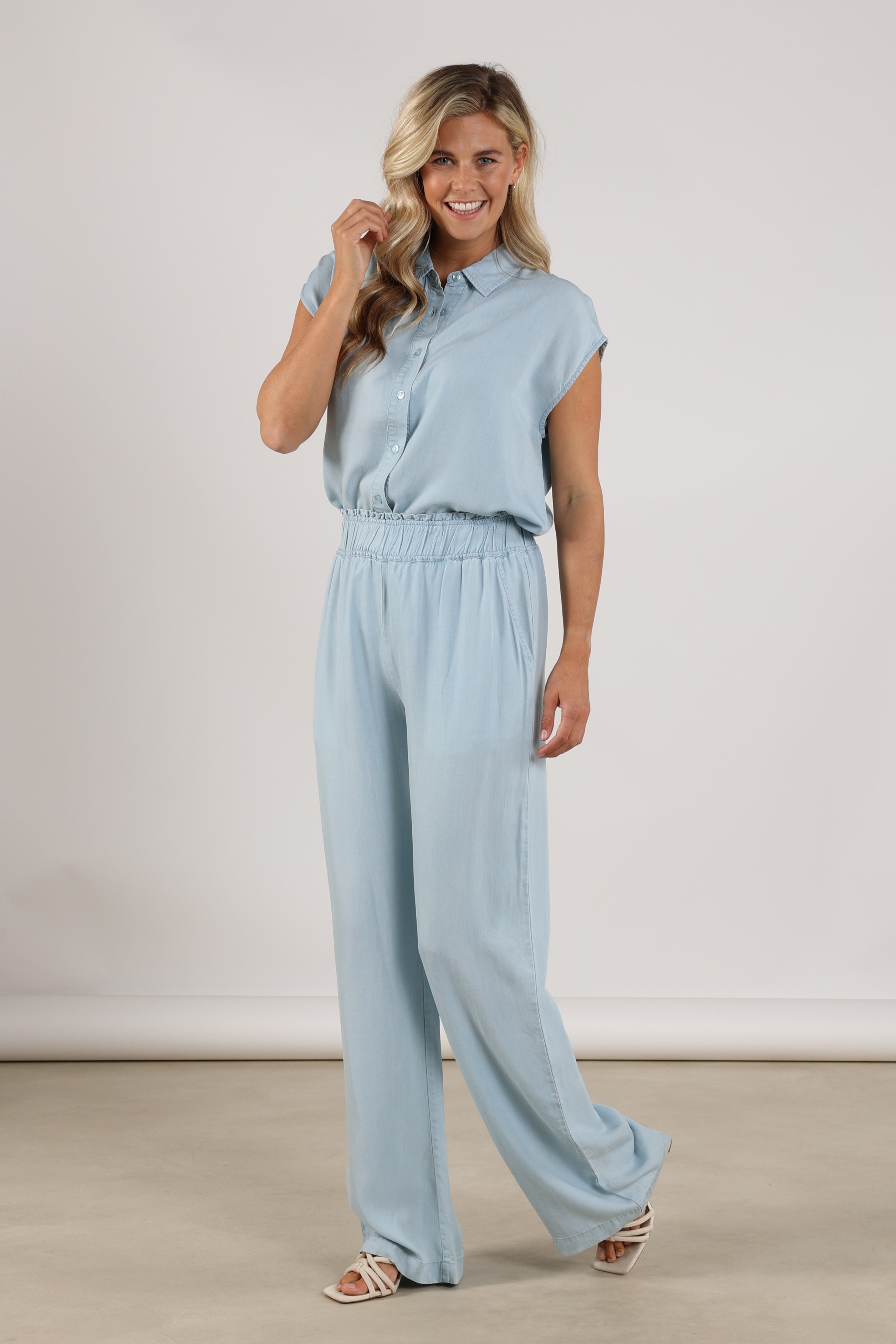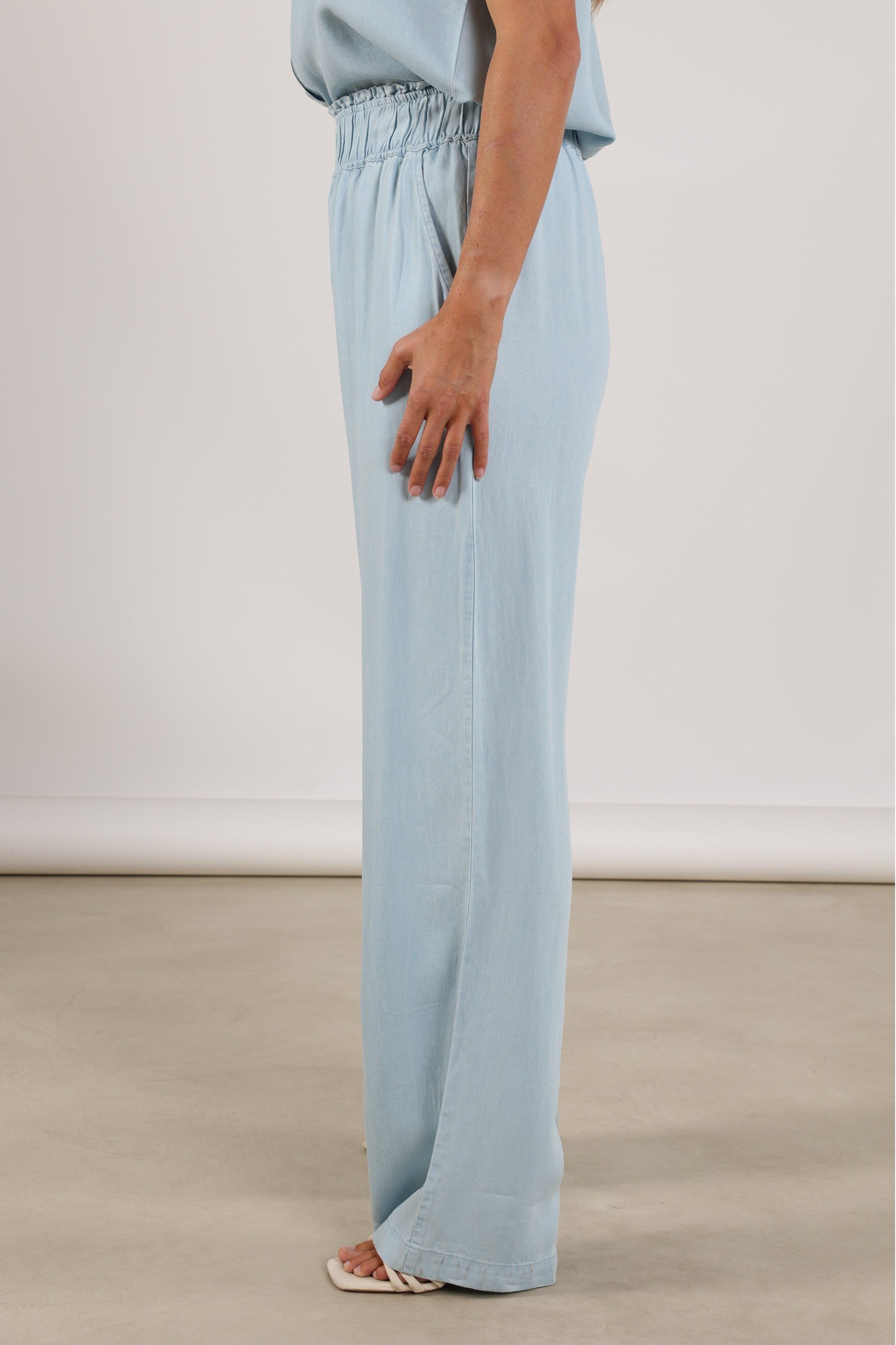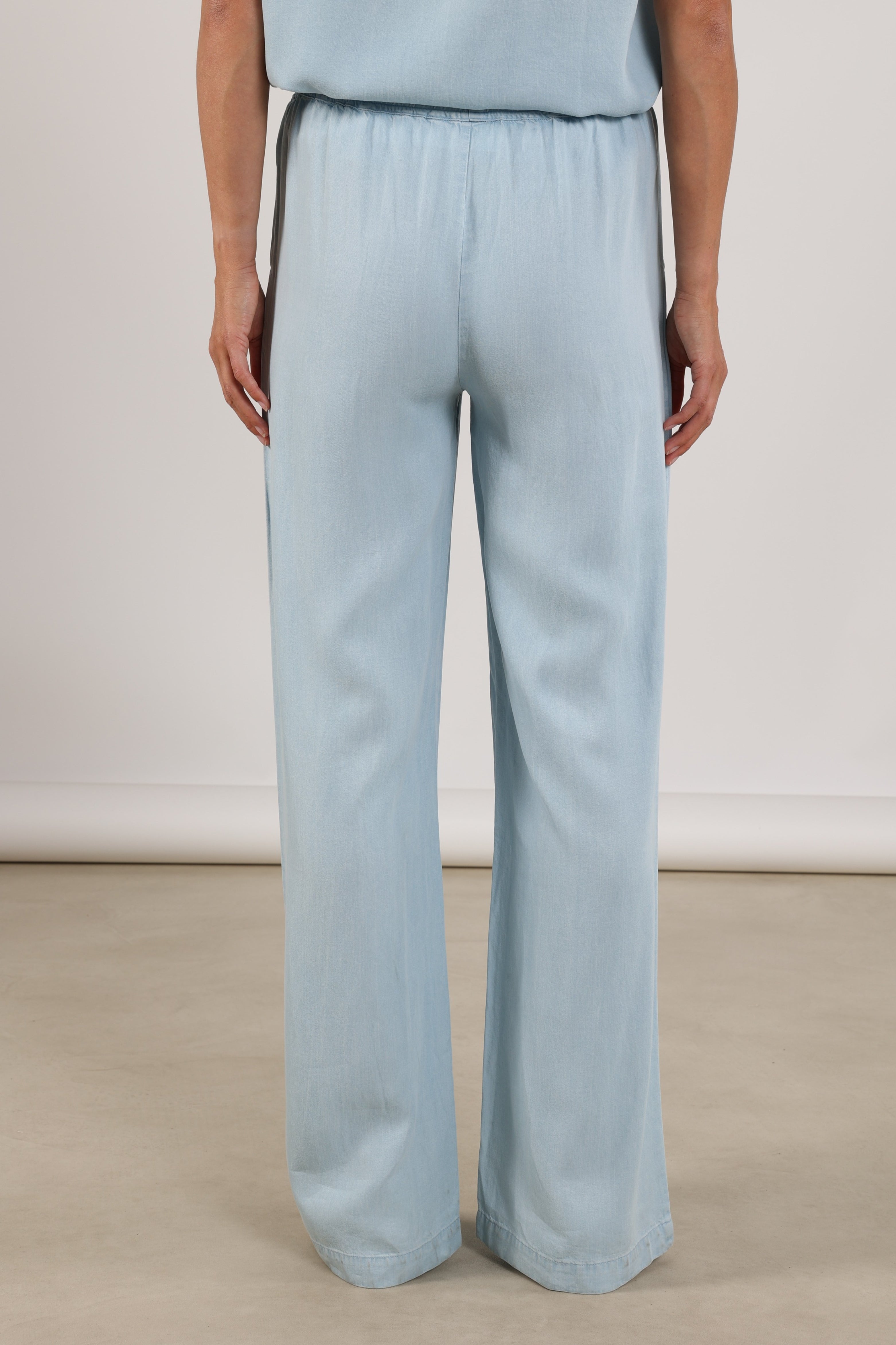 De Broek Novi Cloudy is een luchtige, soepelvallende broek met wijde pijpen en elastische tailleband. Comfortabel en stijlvol voor elke dag. Te combineren als set met de bijpassen blouse.