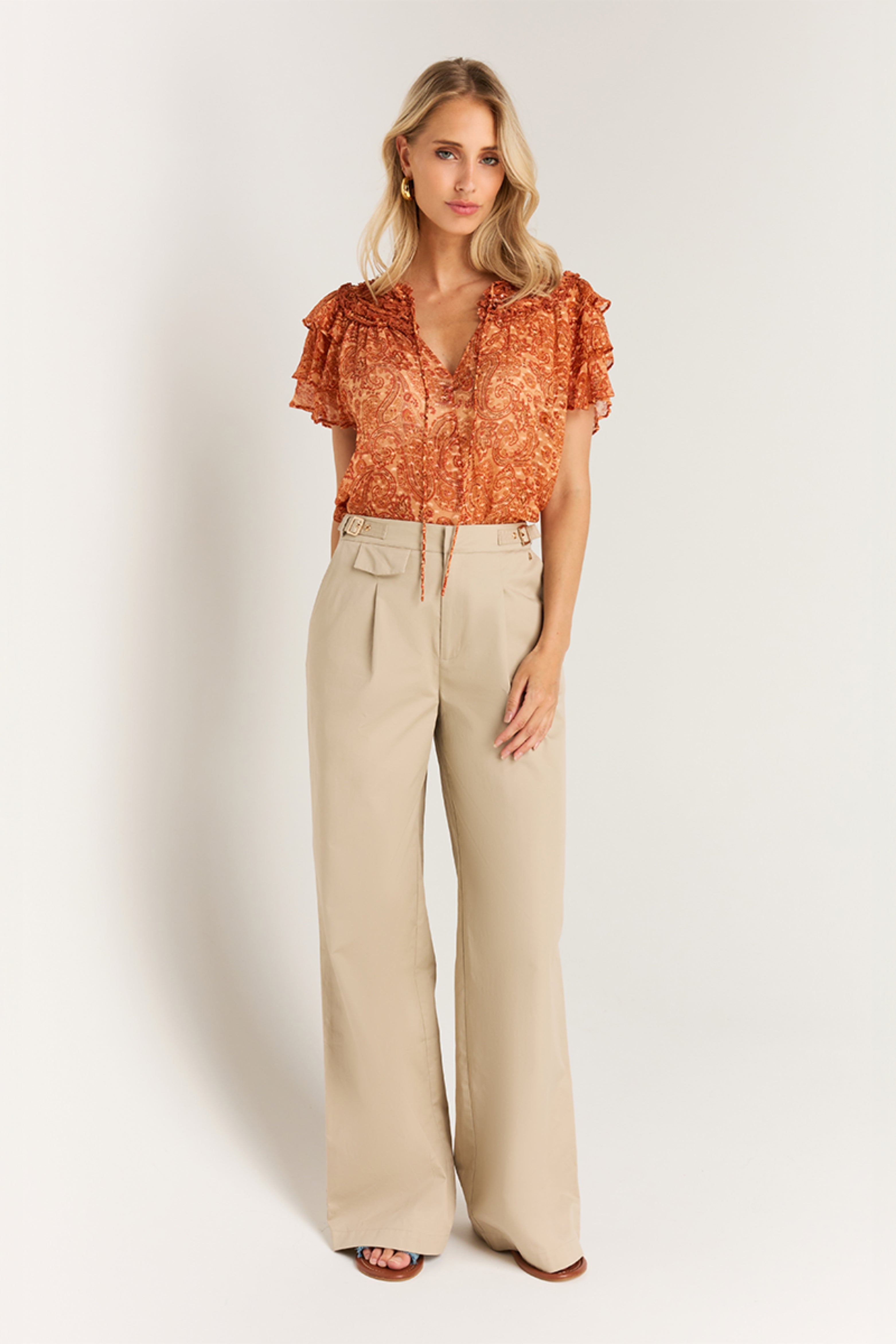De Broek Penia Ostra Beige van Ibana is een stijlvolle broek met hoge taille. Soepele, lichte stof met plooien en wijde pijpen dat elegant valt. Perfect voor kantoor of een citytrip.