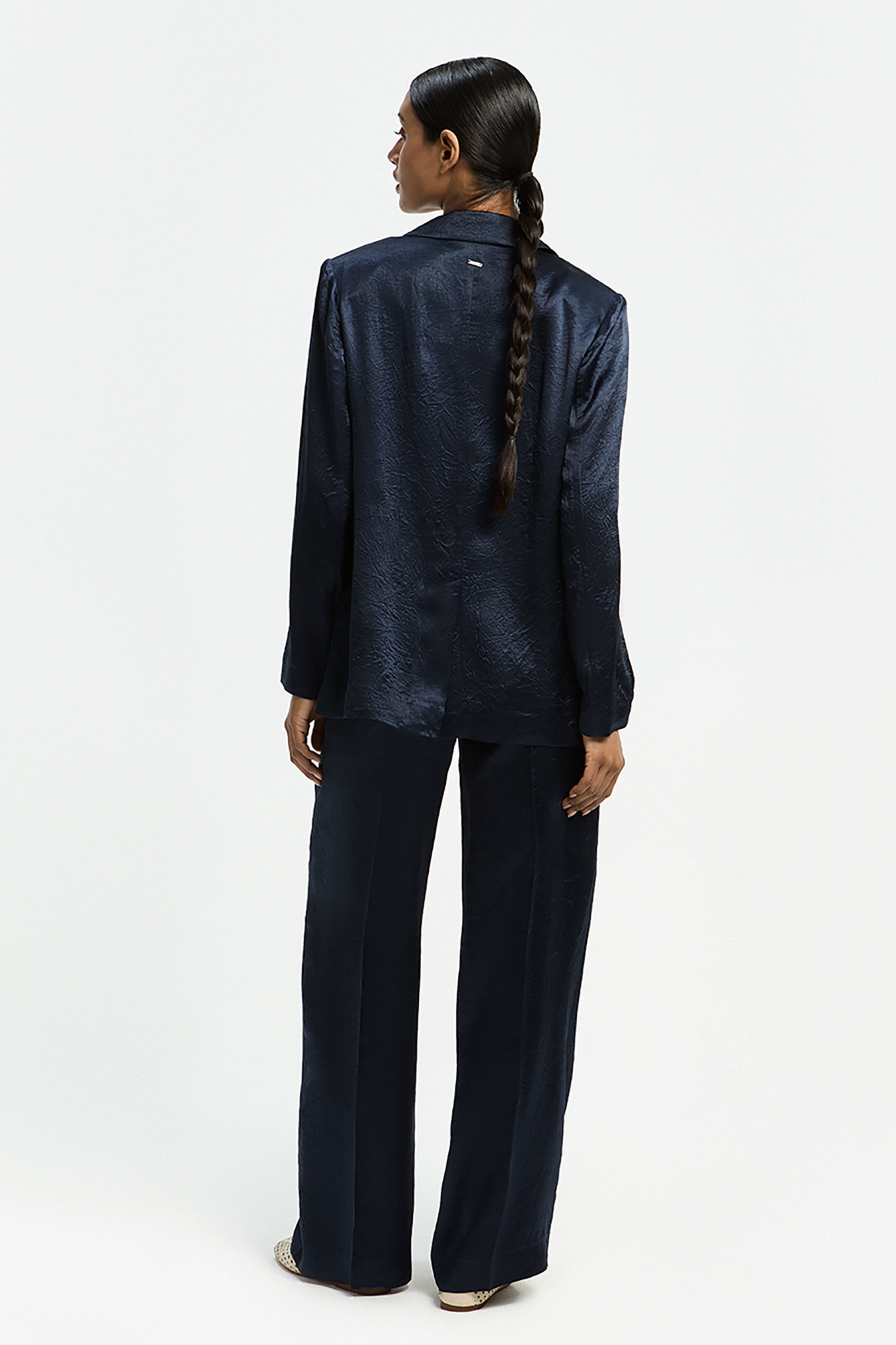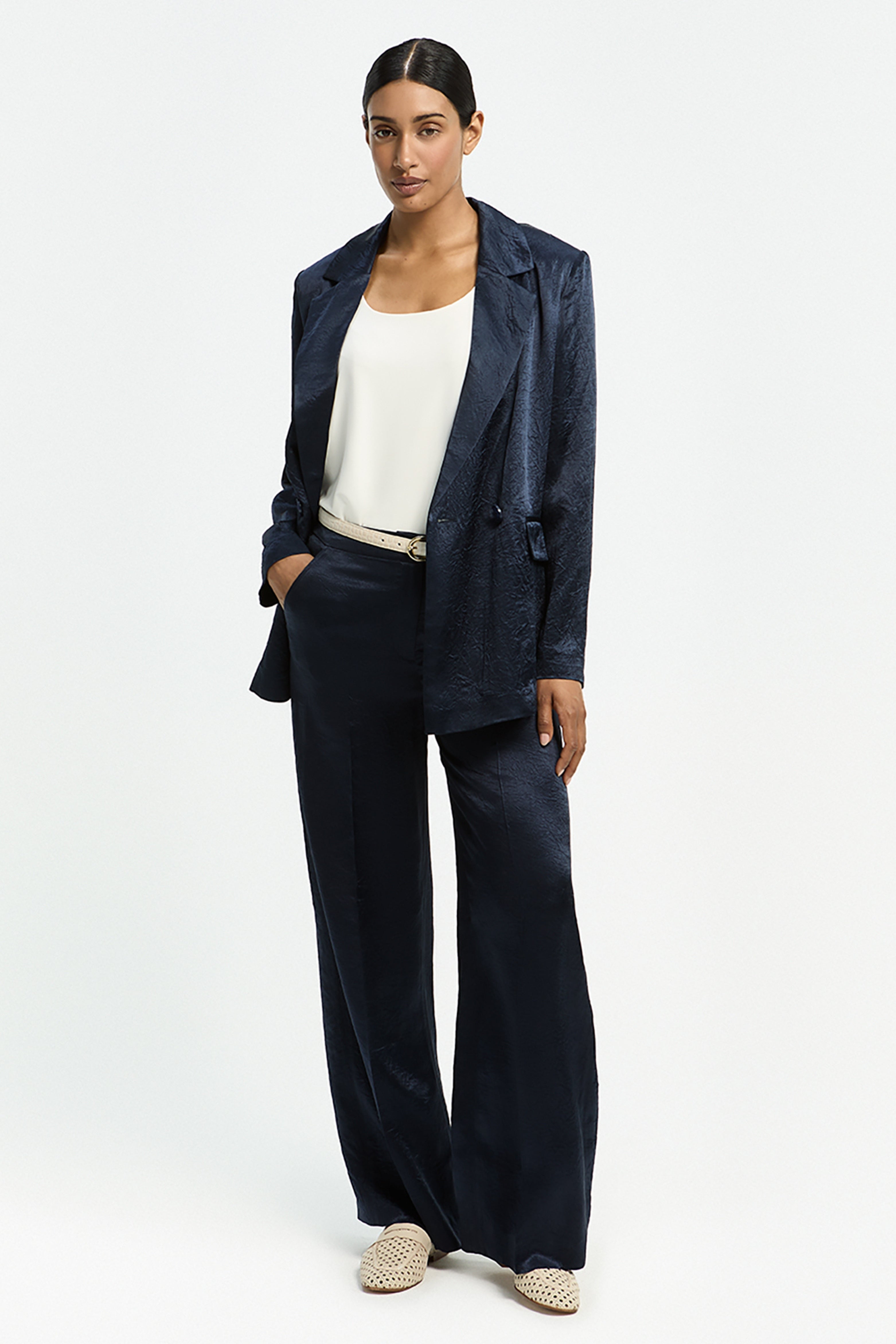 De Broek Phocos Dark Oyster van Xandres is een elegante broek met comfortabele tailleband. De glanzende crinkle-stof en rechte, wijde pijpen geven een luxe look. Perfect voor een feestje of diner.