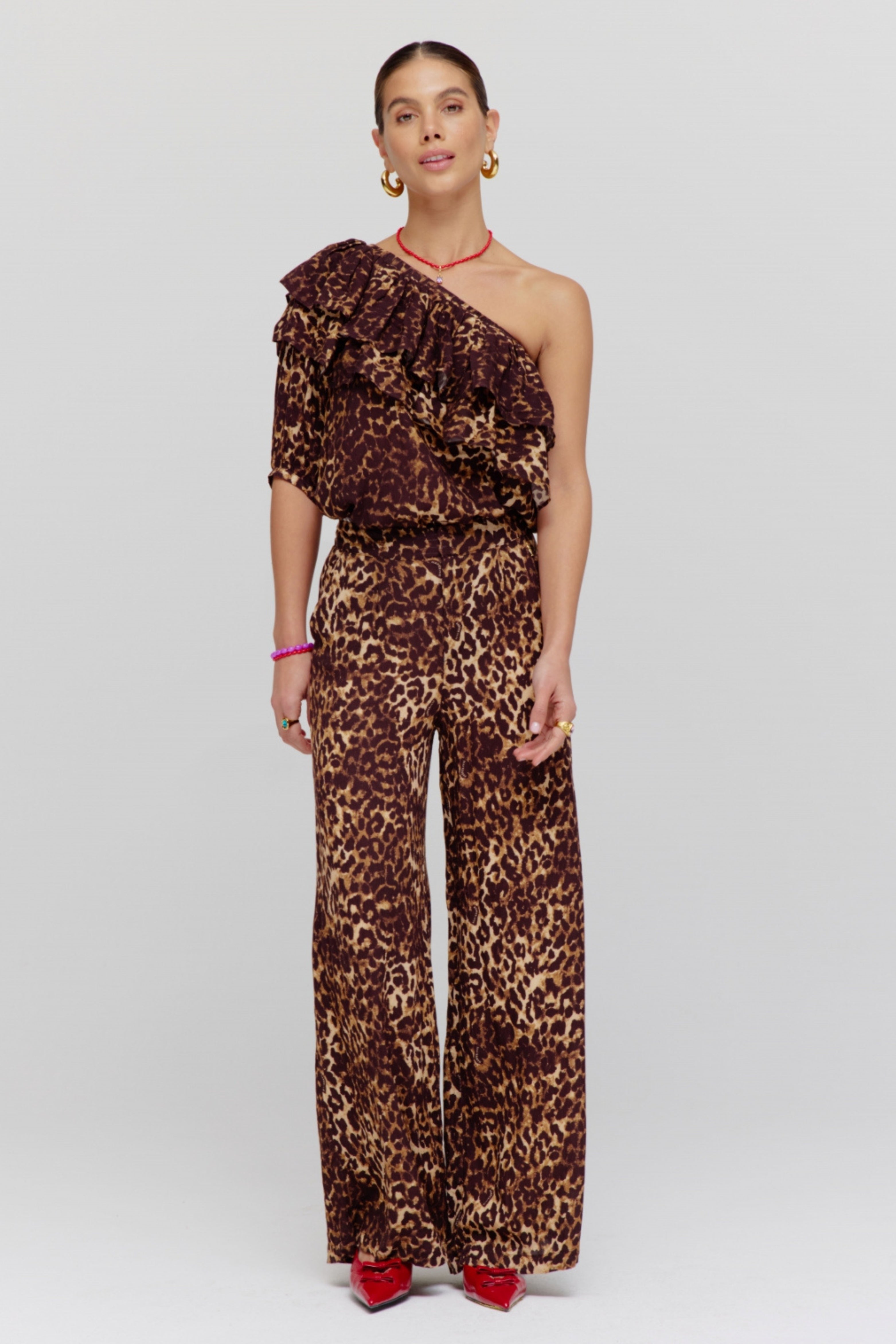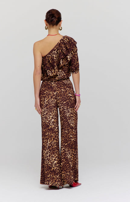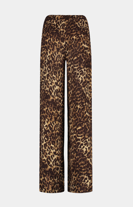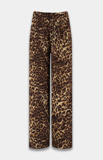 Broek Rosie Lexie Leopard van Harper & Yve is een opvallende statement broek met wijde pijpen en all-over leopardprint. Gemaakt van een luchtige stof met comfortabele tailleband en chique plooien.