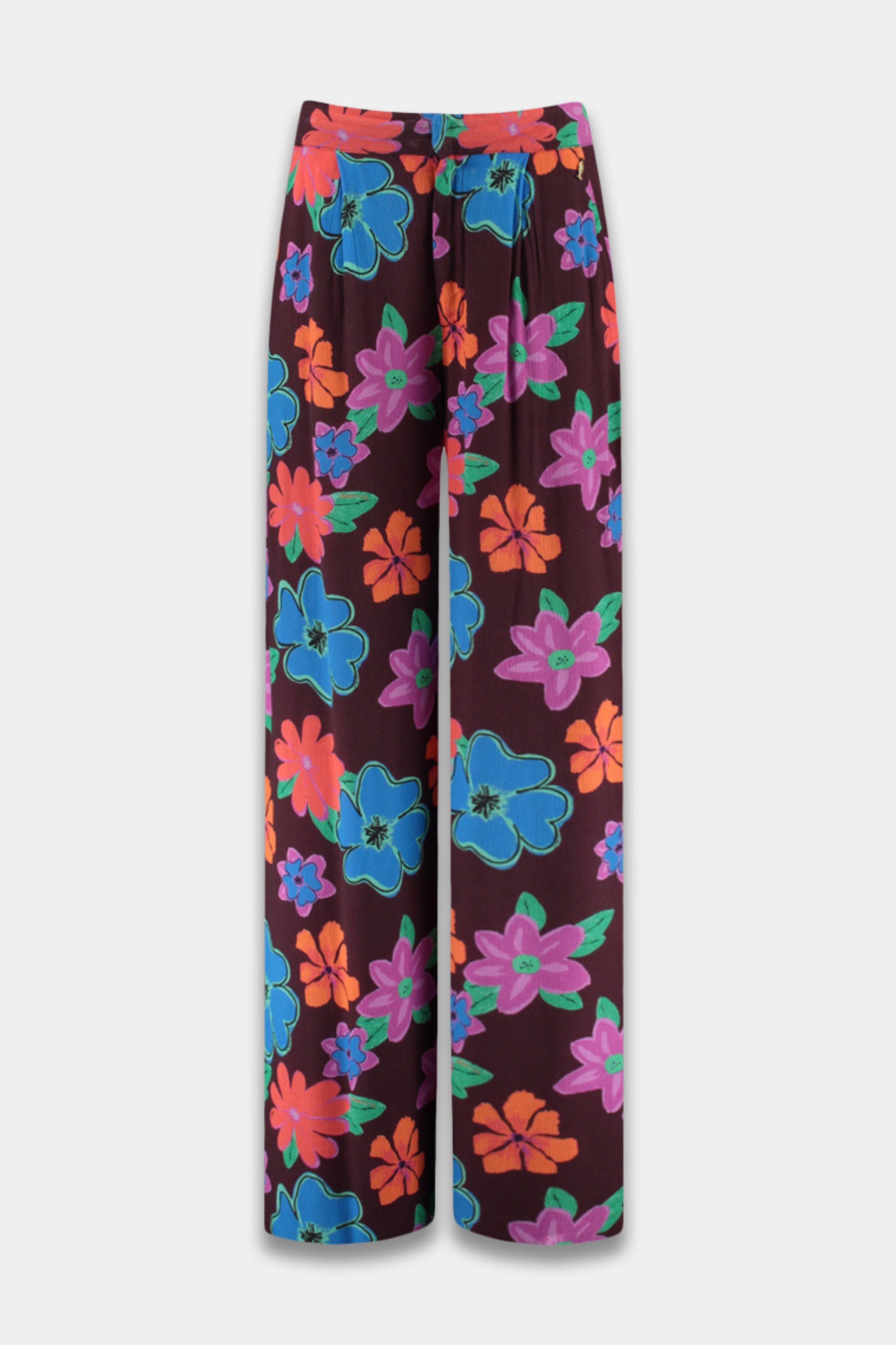 Val op met de Harper & Yve Broek Rosie Mystic Flower! Deze wijde broek met kleurrijke bloemenprint in paars, oranje en rood geeft elke outfit een expressieve, stijlvolle flair – perfect voor modebewuste dagen.