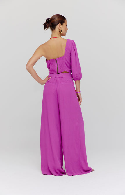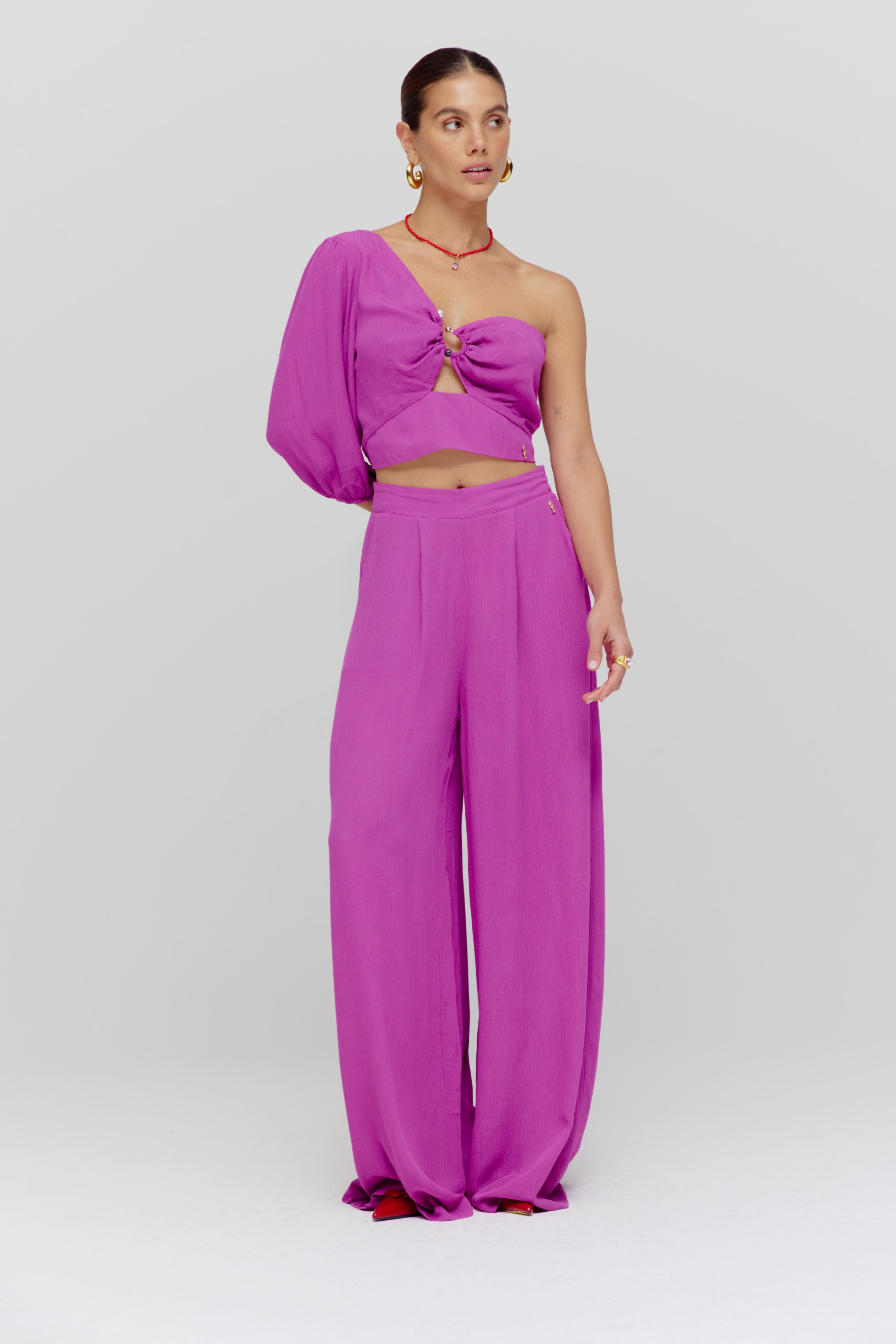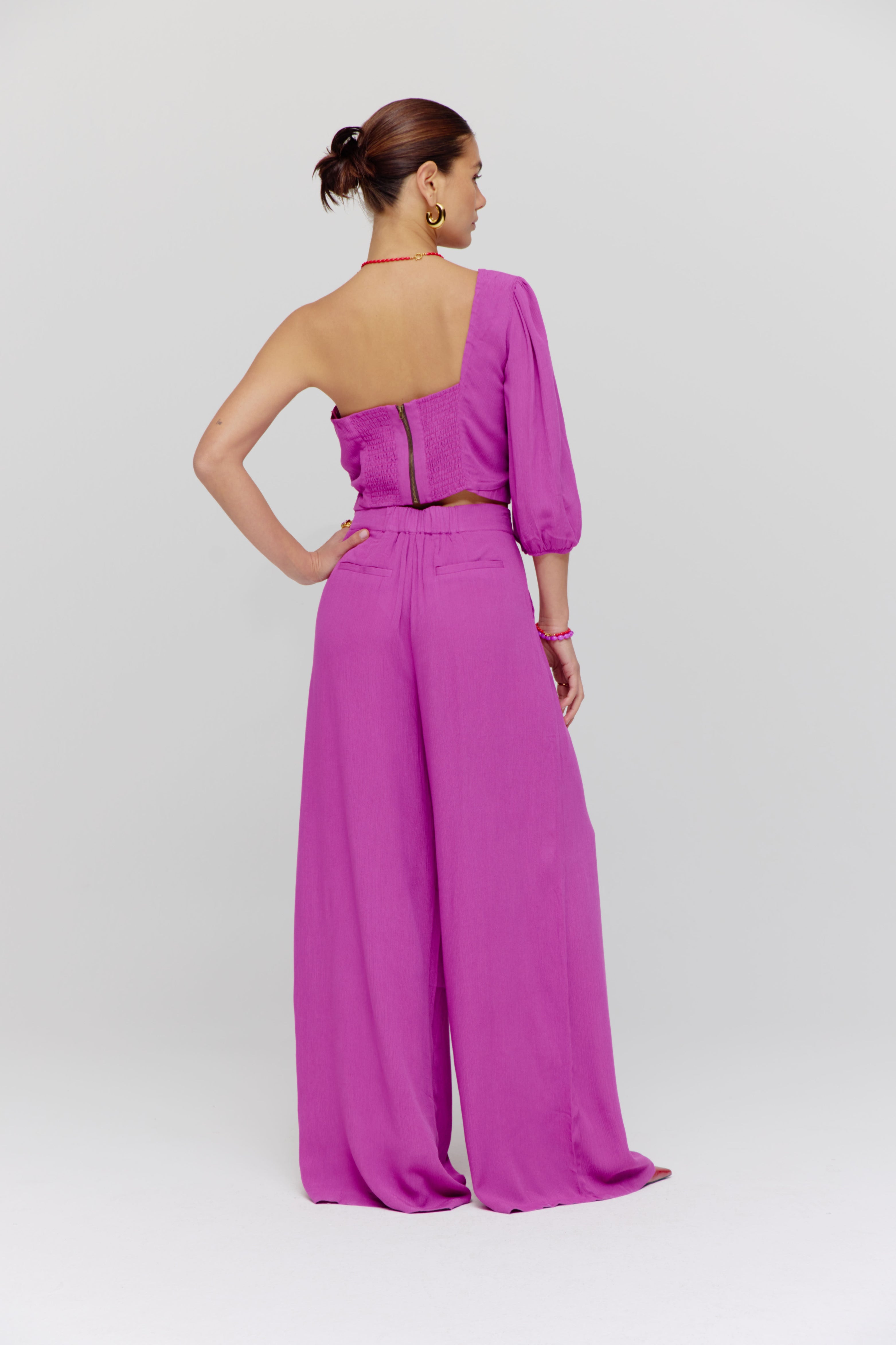 Ga voor kleur met de Harper & Yve Broek Rosie Vivid Viola! Deze elegante paarse wide leg broek combineert comfort en stijl moeiteloos. Perfect voor een opvallende, maar classy look – of je nu casual of chic gaat.