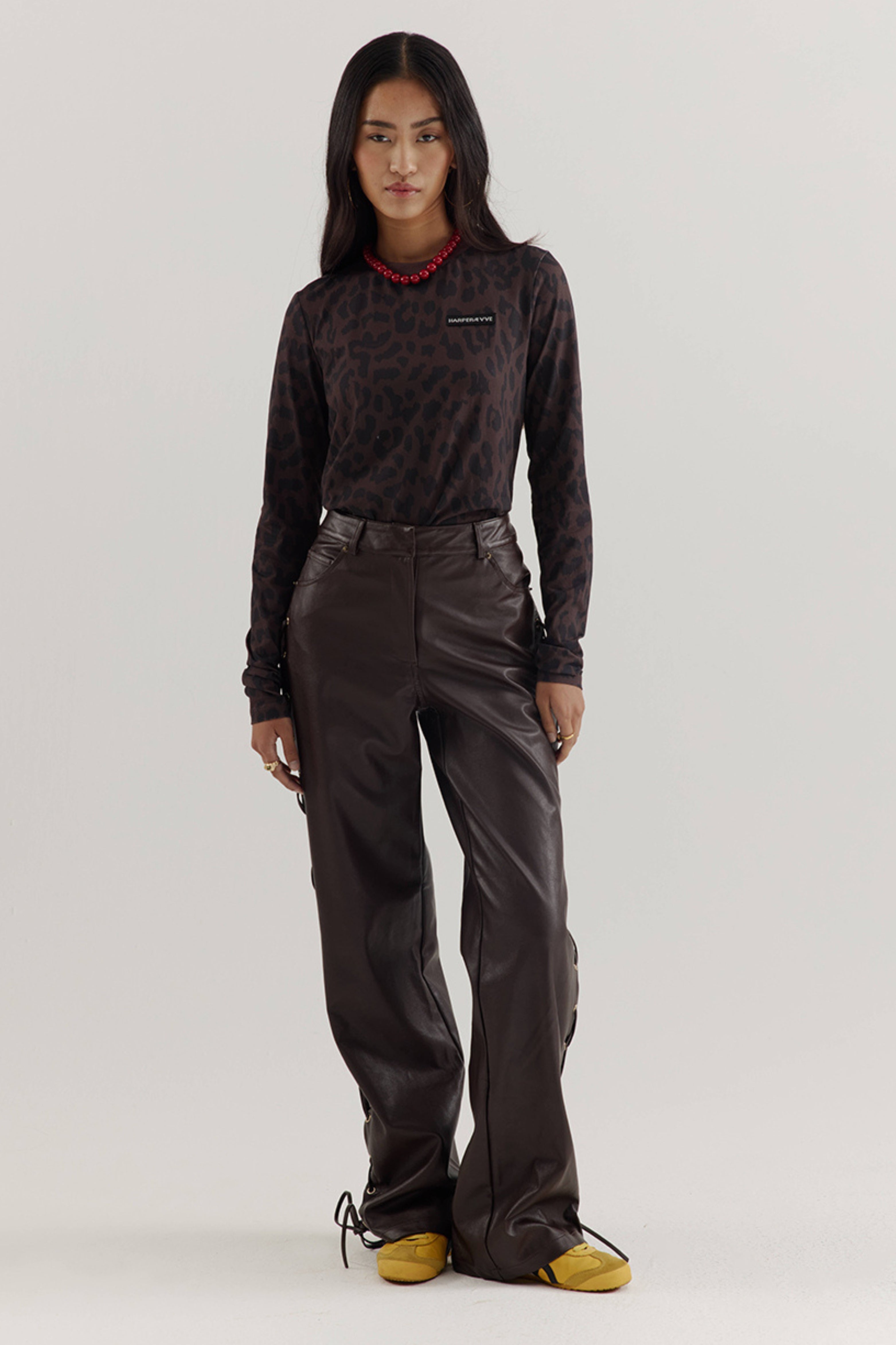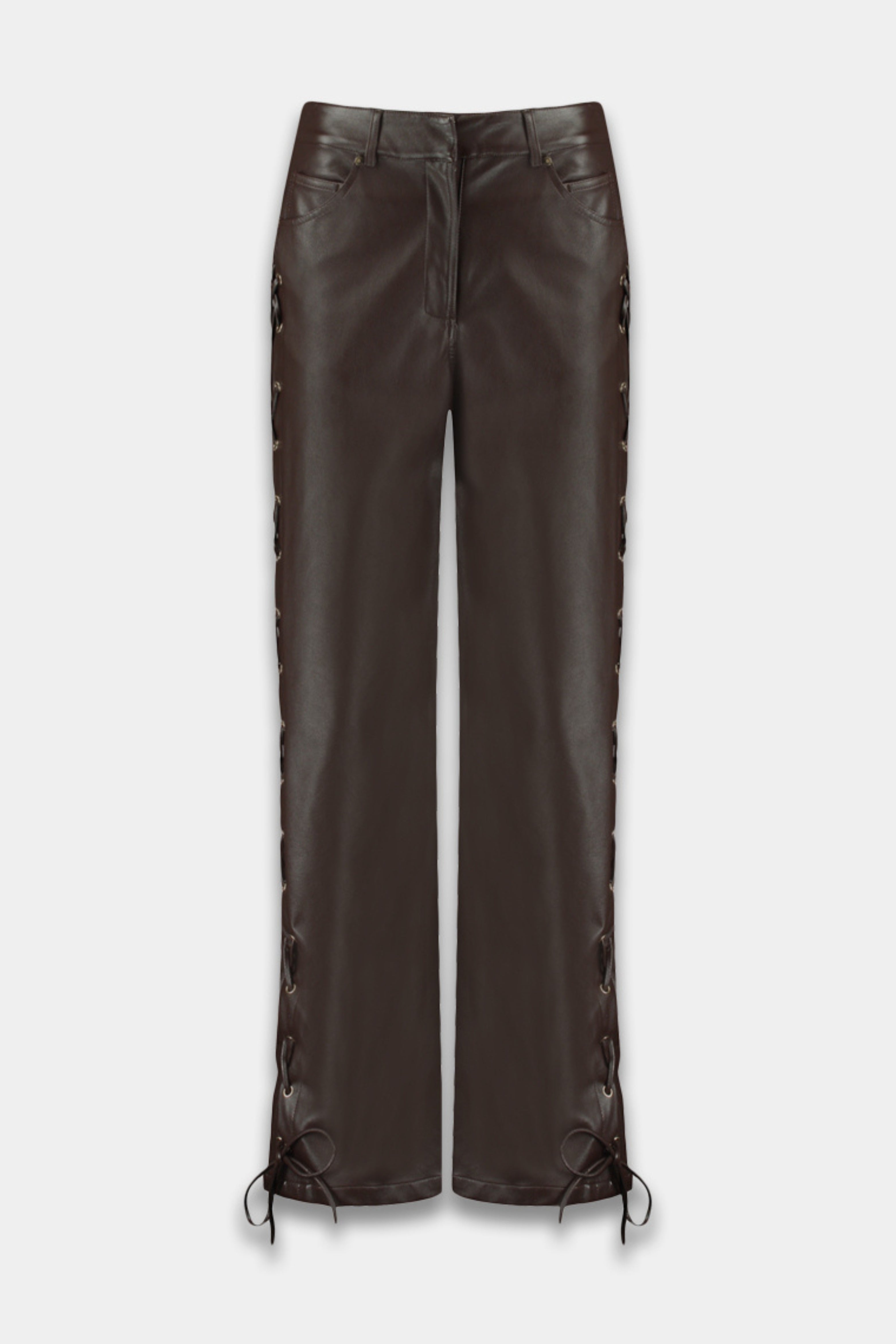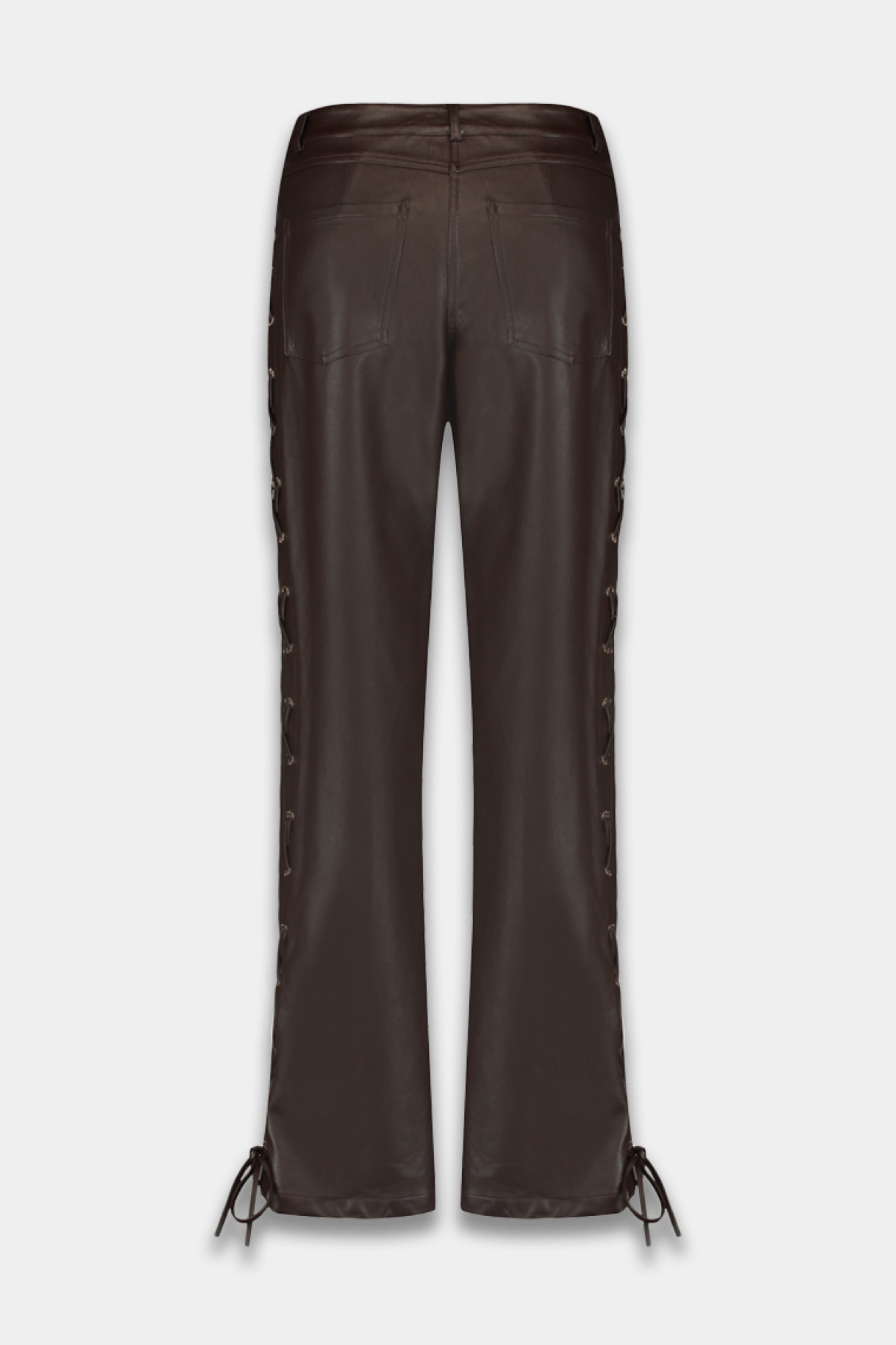 Broek Sally Chocolate van Harper & Yve is een eyecatcher in diepe bruintint met strikken langs de zijkanten. De hoge taille en wide leg fit geven een flatterend silhouet. Combineer met blouse of blazer voor een sportief-chique look.
