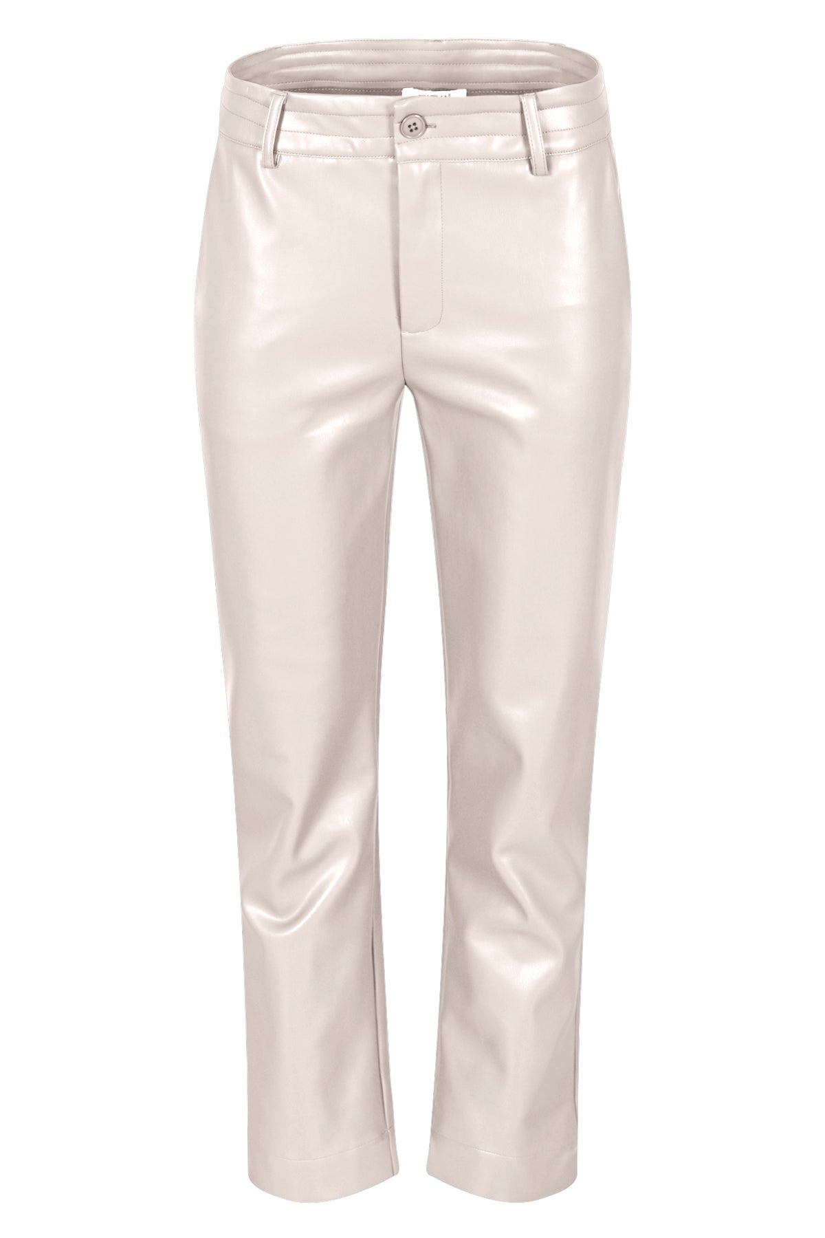 Elegante en modieuze broek in de kleur sand, gemaakt van een leerachtige stof voor een luxe uitstraling. De Sinoh broek heeft een flatterende pasvorm met rechte pijpen en een knoopsluiting. Deze broek is perfect voor een moderne en chique look, geschikt voor elke gelegenheid!