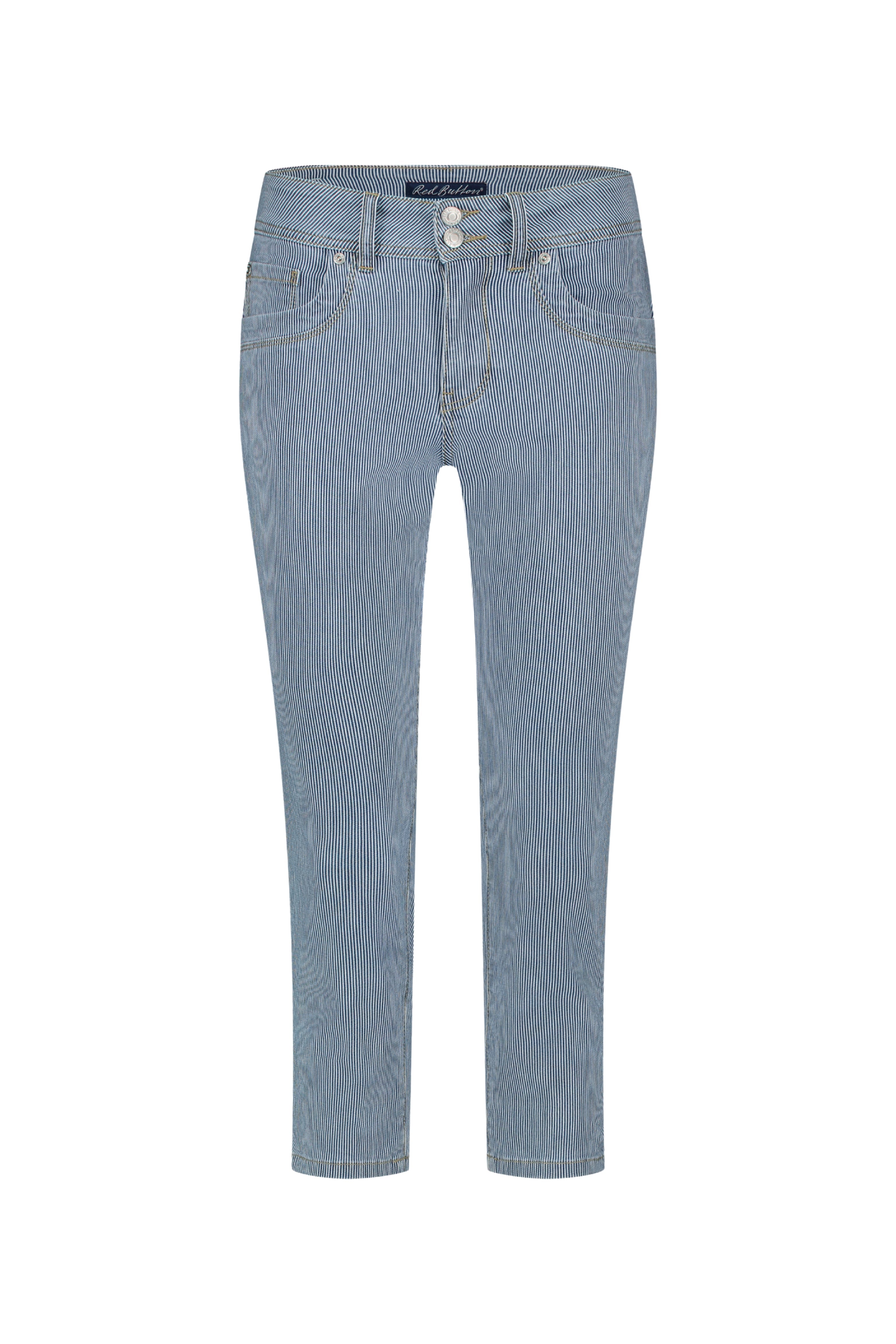 Broek Suze Denim Stripe Indigo Dye van Red Button heeft een trendy streeppatroon en een comfortabele slim fit. De middenhoge taille en dubbele knoopsluiting zorgen voor een flatterende pasvorm. De stretchdenim biedt bewegingsvrijheid en een perfecte fit.