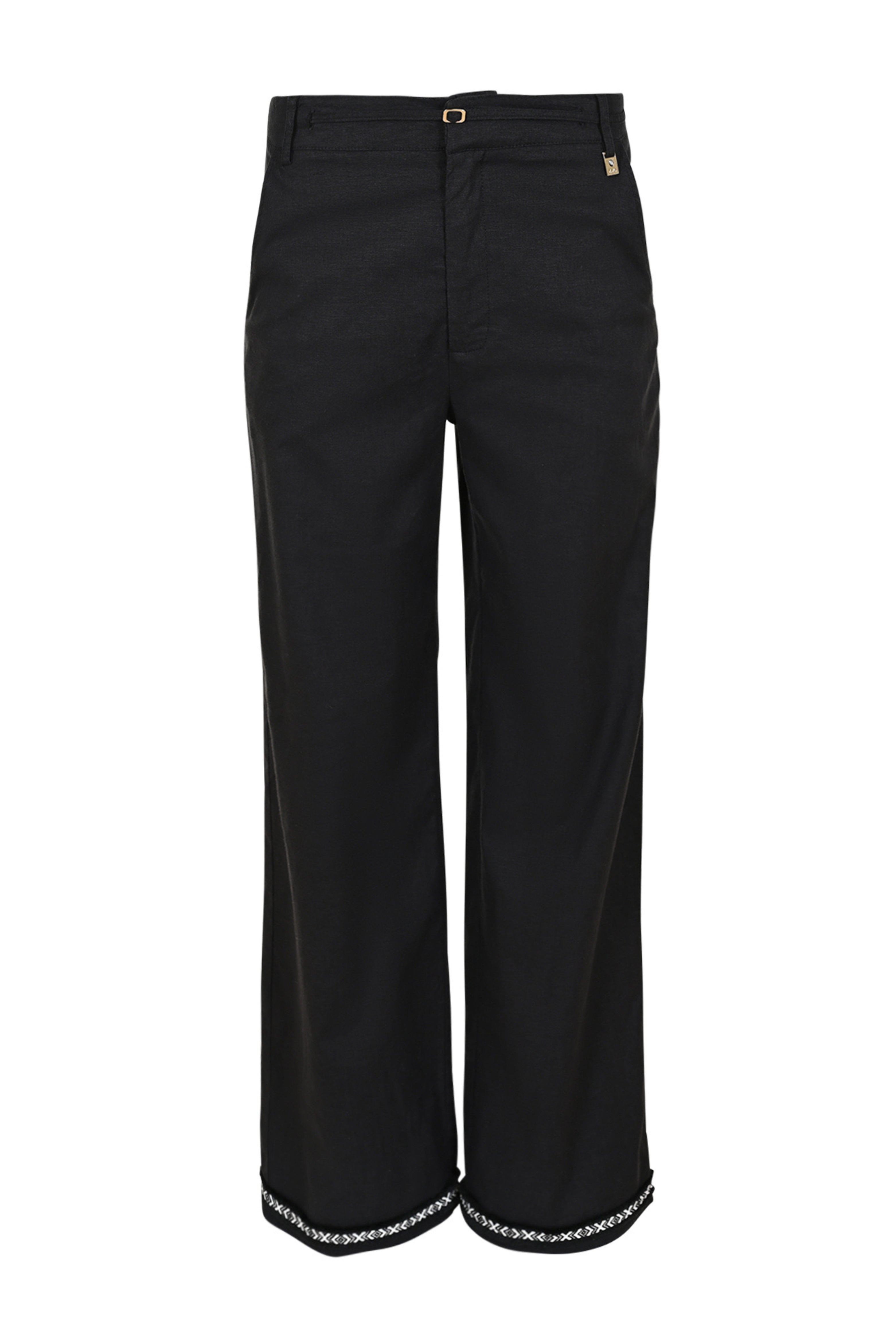 De Broek Taylan Black Offwhite van Zizo is een stijlvolle broek met rechte pijpen en geborduurde details aan de zoom. De combinatie van klassiek zwart en subtiel wit borduursel maakt dit een verfijnd item voor elke gelegenheid.